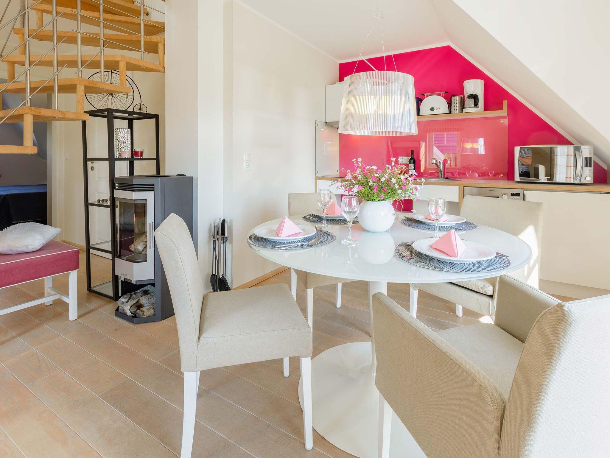 Modernes 4-Zimmer-Apartment auf der Halbinsel Mönchgut, nur 100 m vom Strand entfernt, mit Kamin und Balkon in Südwestlage.