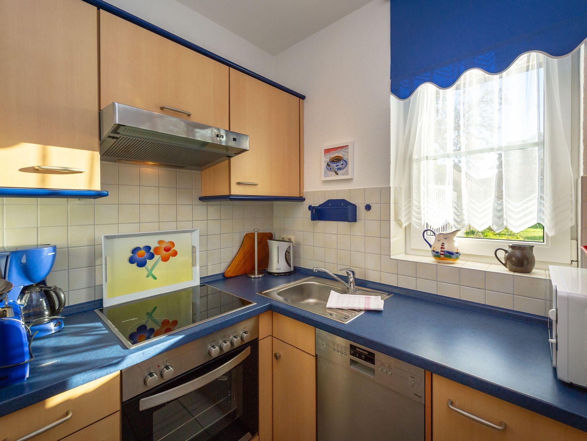 Die Küche ist u.a. mit einem 4-Zonen-Ceranherd inkl. Backofen und Abzugshaube, einer Mikrowelle, einem Kühlschrank, einer Spülmaschine sowie einer Filter-Kaffeemaschine, einem Wasserkocher und einem Toaster ausgestattet. Selbstverständlich sind auch das nötige Koch- und Essgeschirr in ausreichender Stückzahl sowie viele nützliche Kleinteile vorhanden.