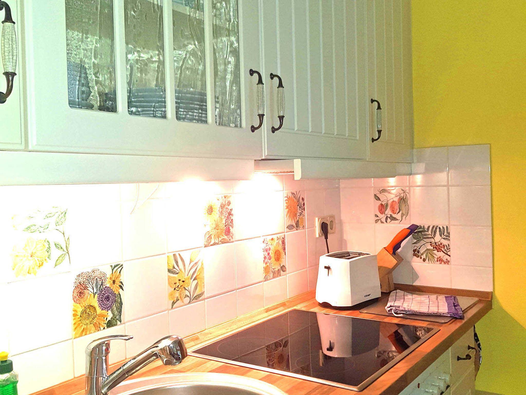 Die Wohnung misst über zwei Etagen großzügige 68 qm. Der stilvoll und individuell eingerichtete Wohn-Essbereich hat WLAN, Radio einen großen Flatscreen-TV mit DVD/Blueray-Player. Die Küche ist umfangreich ausgestattet mit Spülmaschine, Waschmaschine, Backofen, 4-Zonen-Cerankochfeld und einem praktischen Tresen.