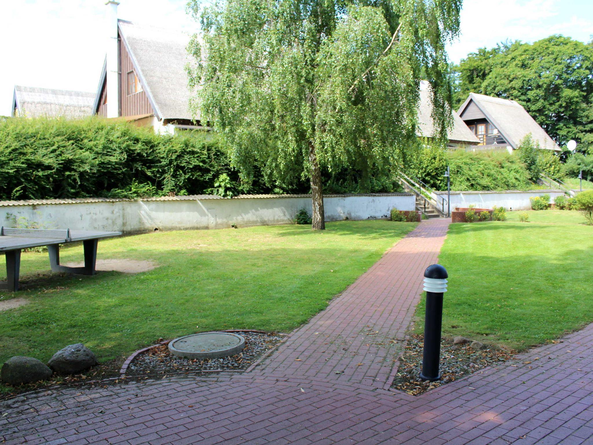 Sie liegt an der östlichen Giebelseite des Hauptgebäudes mit separatem Eingang und Zugang zum Boddenstrand auf kürzestem Weg.
