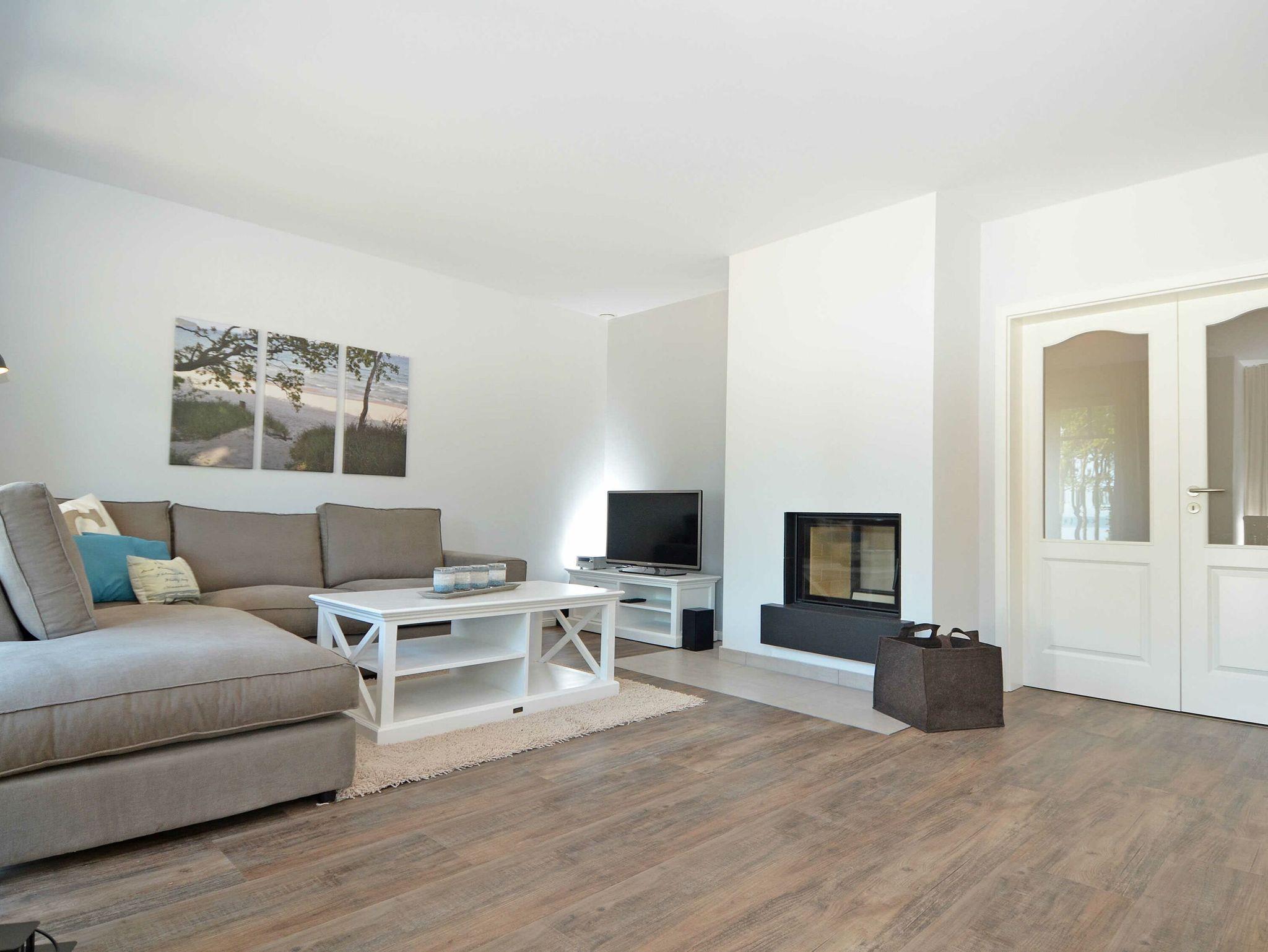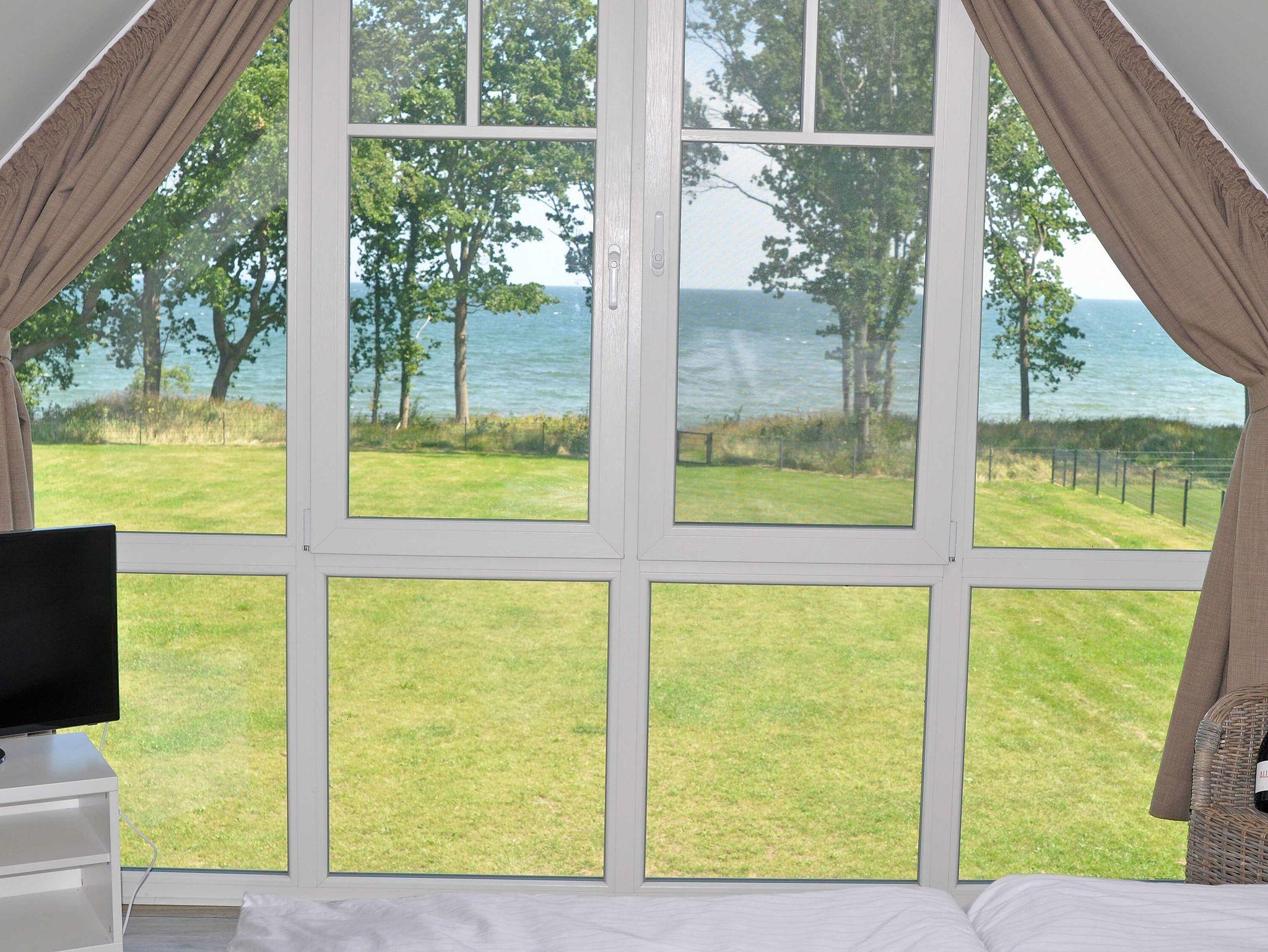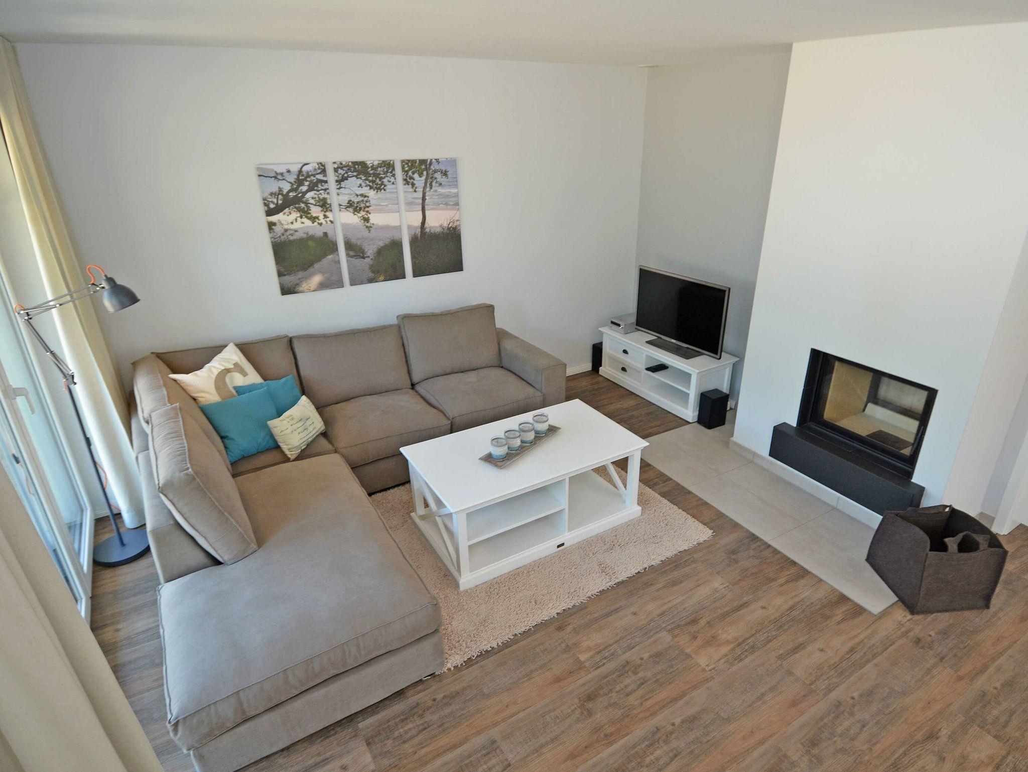 Das Wohnzimmer mit direktem Meerblick befindet sich im Erdgeschoß und ist überaus ausgestattet. Dazu zählen u.a. eine gemütliche Sitzecke, ein Flachbild-TV mit DVD-Player, eine Stereoanlage mit CD-Player/Radio/I-pod-Dockingstation sowie kostenfreies W-LAN. Der 2-seitig-verglaste Kamin verspricht kuschelige Stunden vor dem prasselnden Kaminfeuer. Die großen Glasfronten durchfluten den Raum mit Licht und eröffnen den ungehinderten Blick auf die endlose Weite der Ostsee.