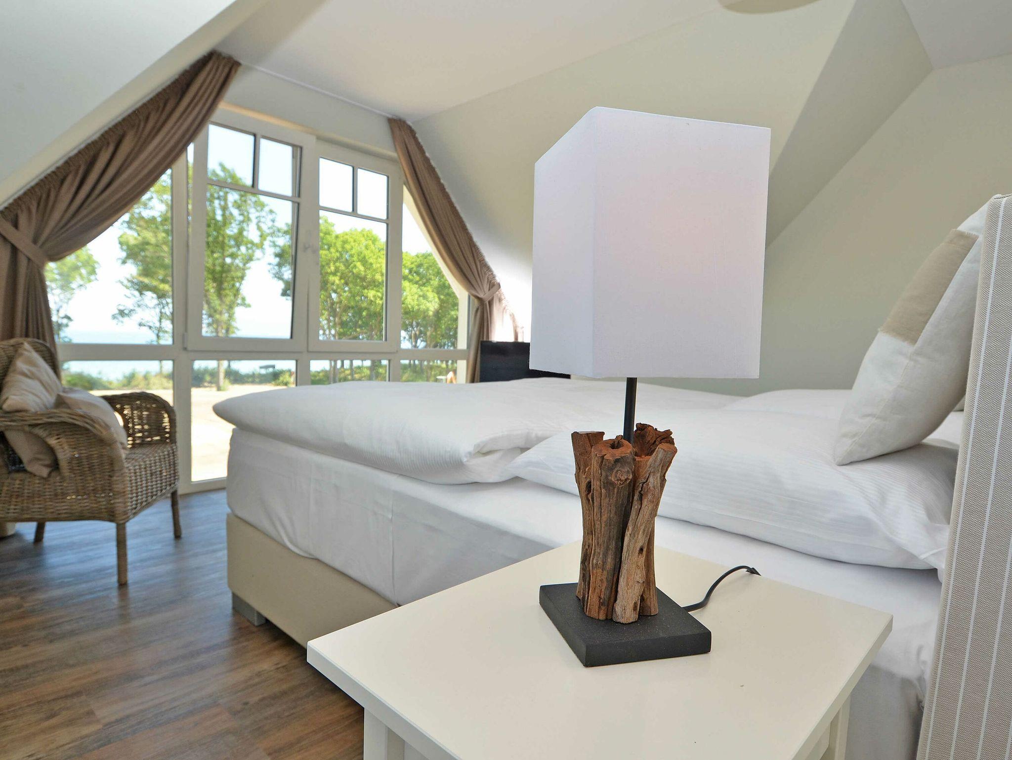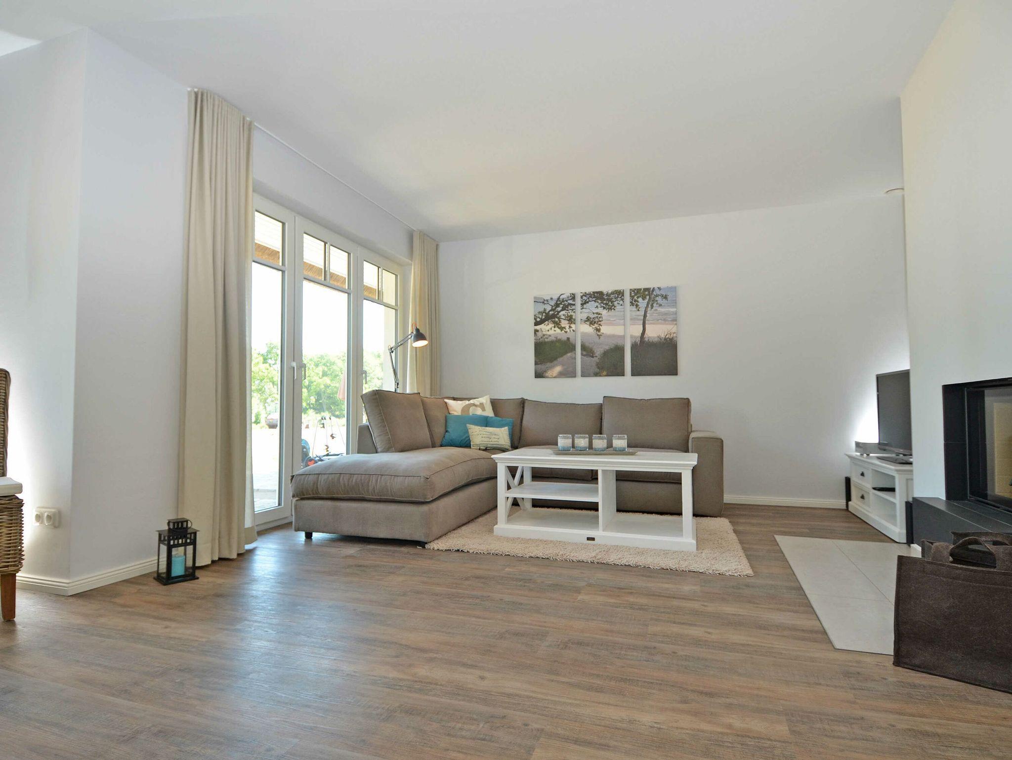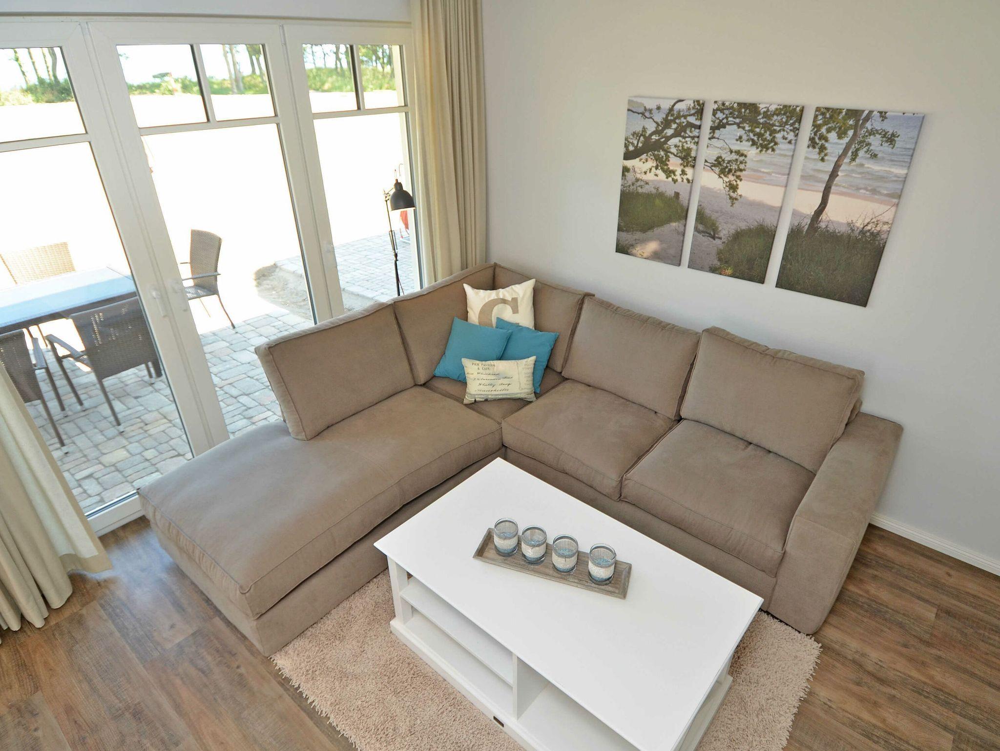 Das Wohnzimmer mit direktem Meerblick befindet sich im Erdgeschoß und ist überaus ausgestattet. Dazu zählen u.a. eine gemütliche Sitzecke, ein Flachbild-TV mit DVD-Player, eine Stereoanlage mit CD-Player/Radio/I-pod-Dockingstation sowie kostenfreies W-LAN. Der 2-seitig-verglaste Kamin verspricht kuschelige Stunden vor dem prasselnden Kaminfeuer. Die großen Glasfronten durchfluten den Raum mit Licht und eröffnen den ungehinderten Blick auf die endlose Weite der Ostsee.