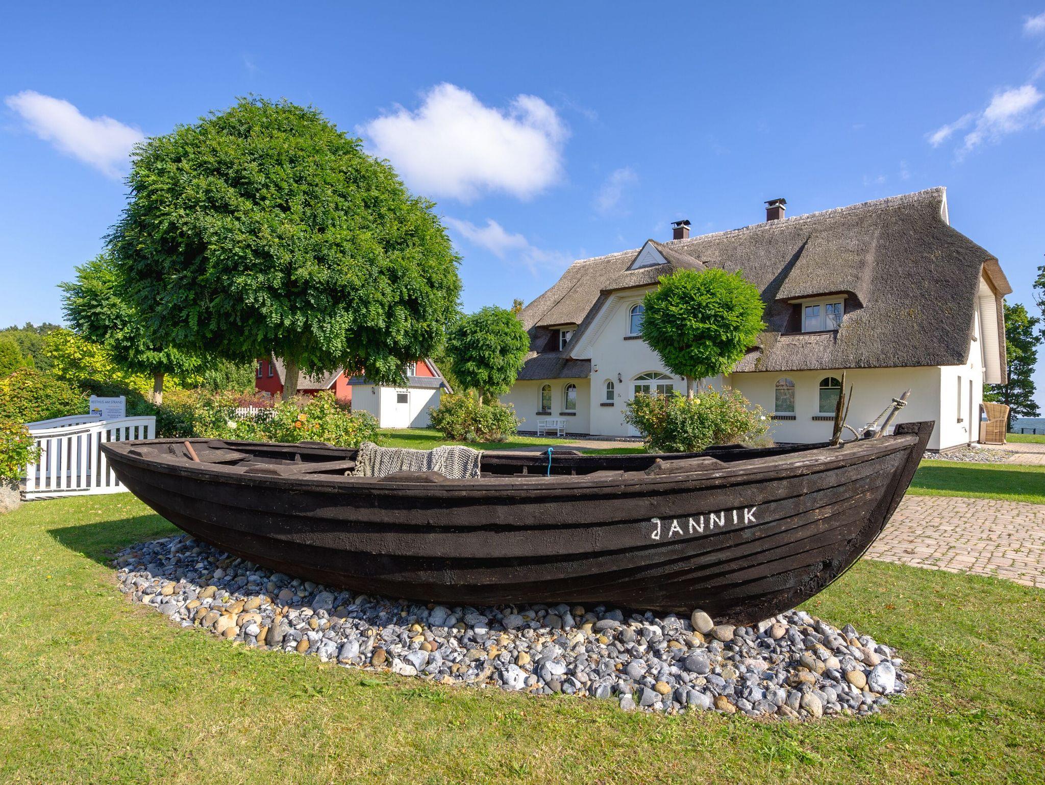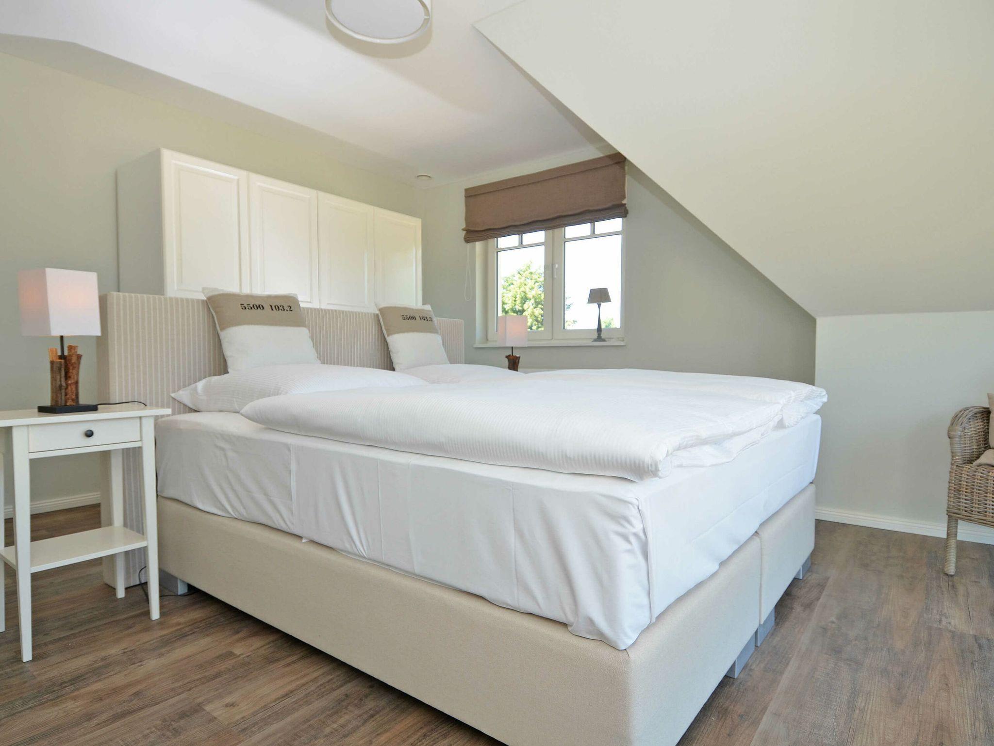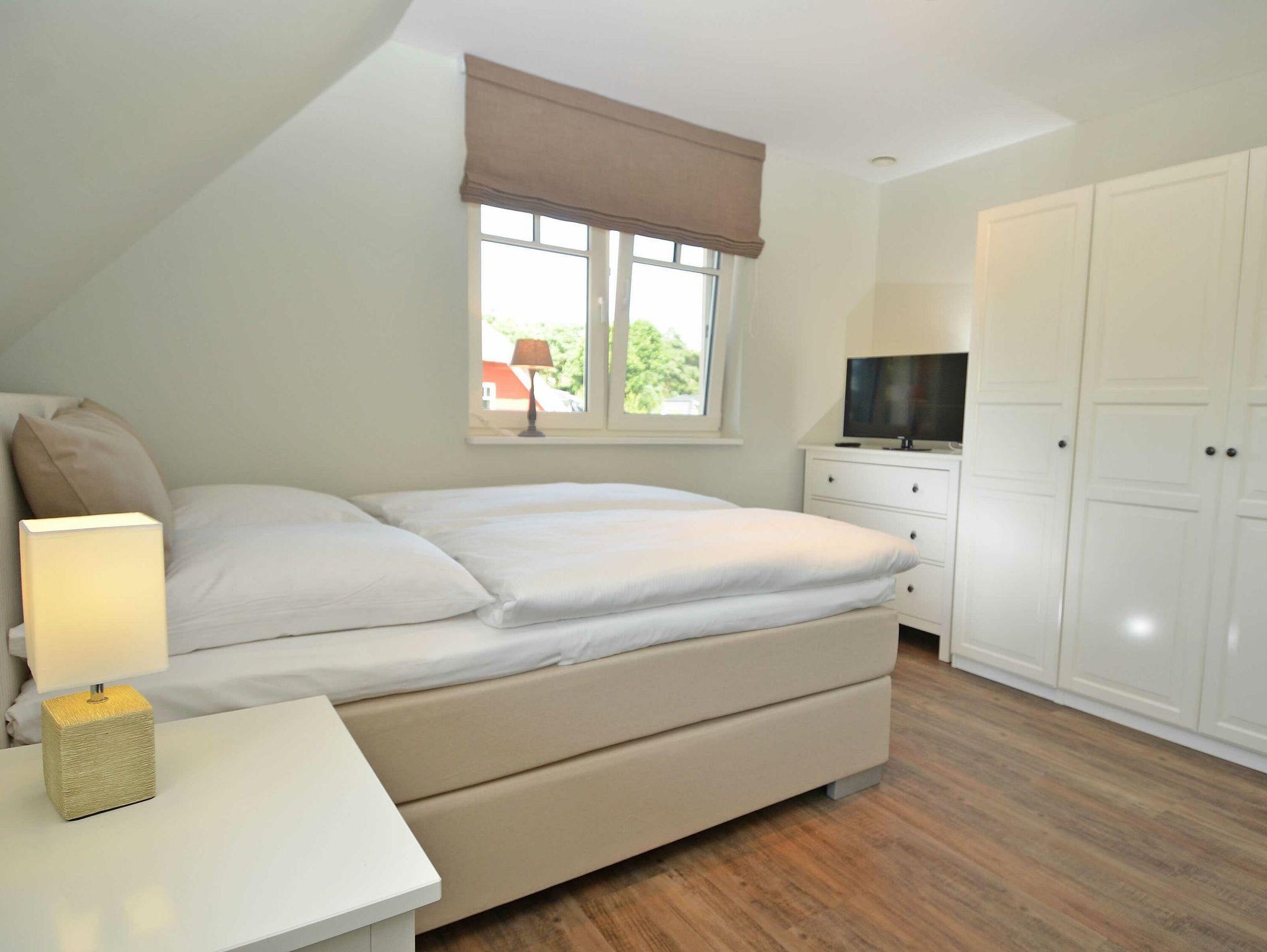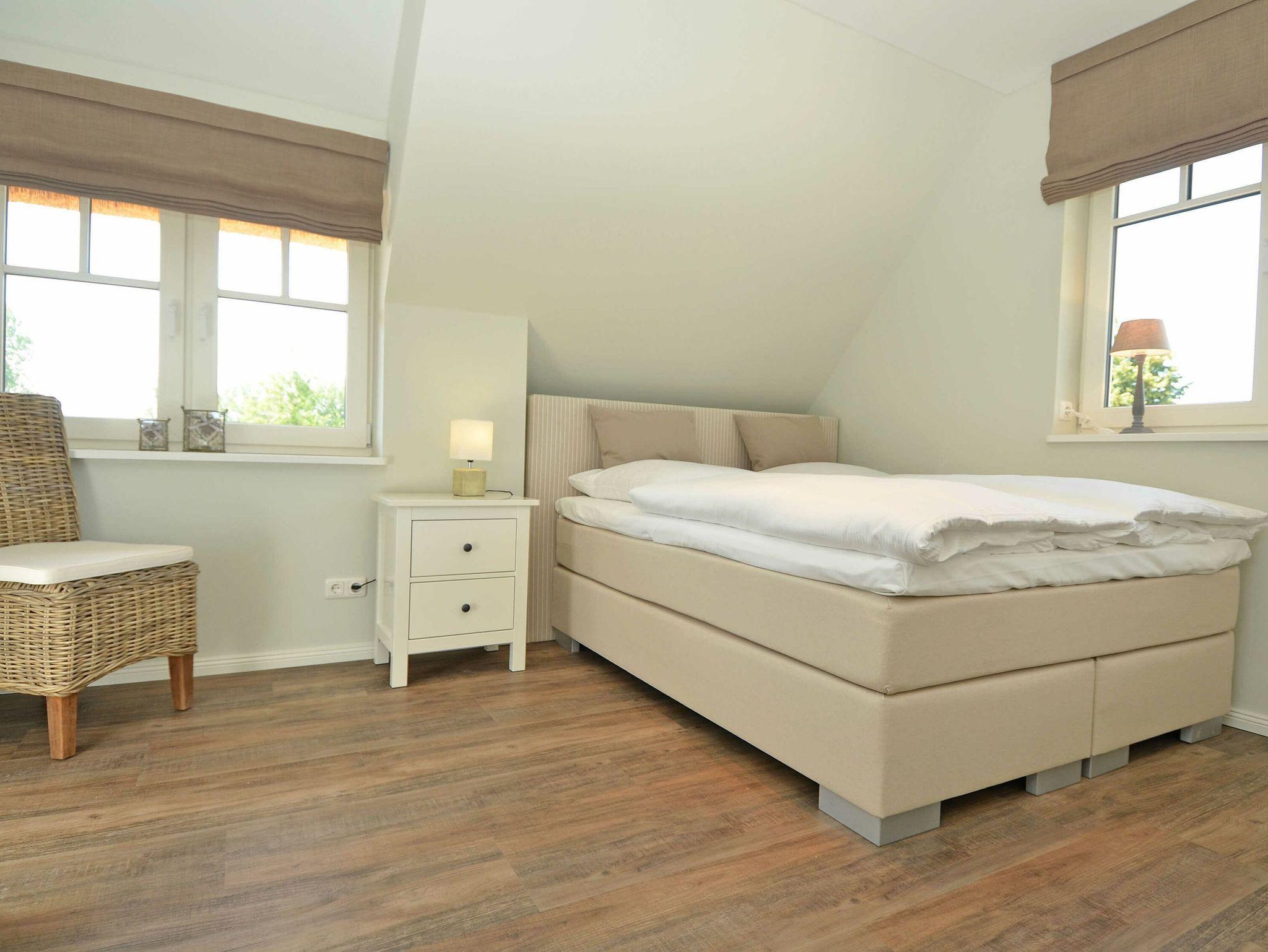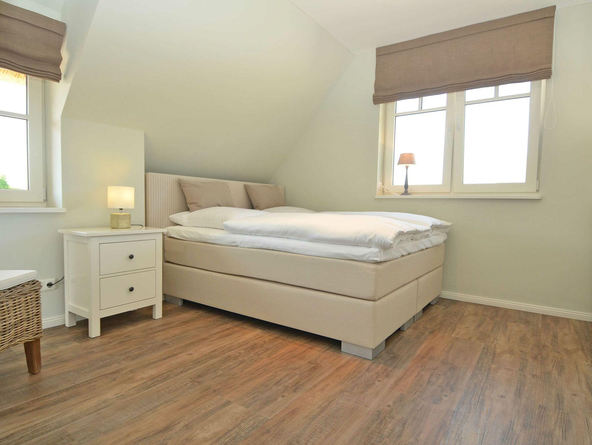 Die linke Haushälfte des Reethus am Strand erstreckt sich auf zwei Ebenen über 160 m² Wohnfläche mit drei Schlafzimmern, zwei Bädern und einem großzügigen Wohnzimmer mit unverbautem Meerblick! Im gemütlich ausgebauten Spitzboden gibt es zwei weitere Schlafgelegenheiten, so dass hier insgesamt 8 Personen miteinander Urlaub machen können.