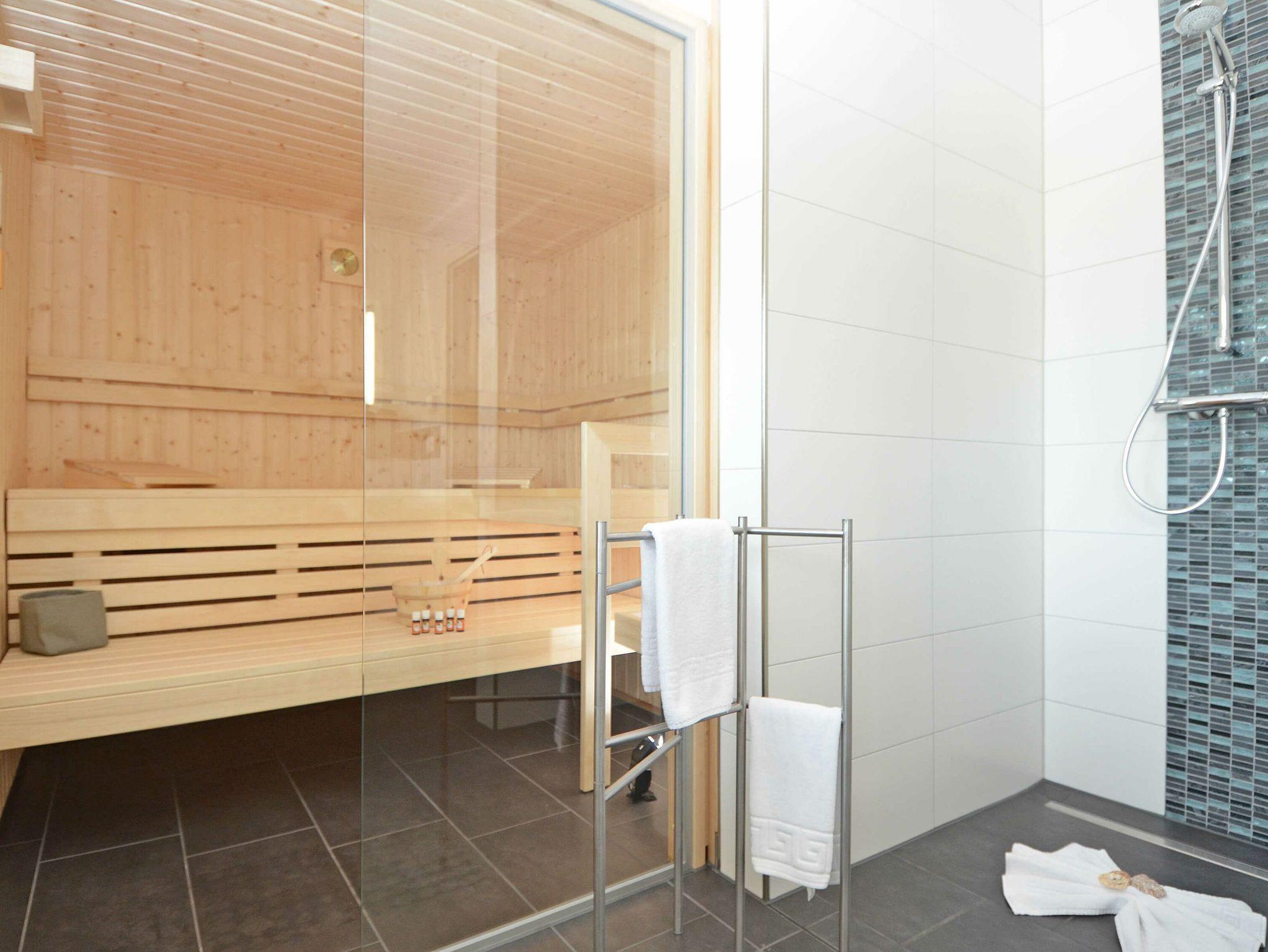 Im Erdgeschoß befinden sich außerdem ein modernes Duschbad mit Ihrer ganz privaten Sauna sowie der Hauswirtschaftsraum mit einer Waschmaschine, einem Trockner und Bügelutensilien. Eine Fußbodenheizung sorgt auf der gesamten Etage für ein angenehmes Raumklima.