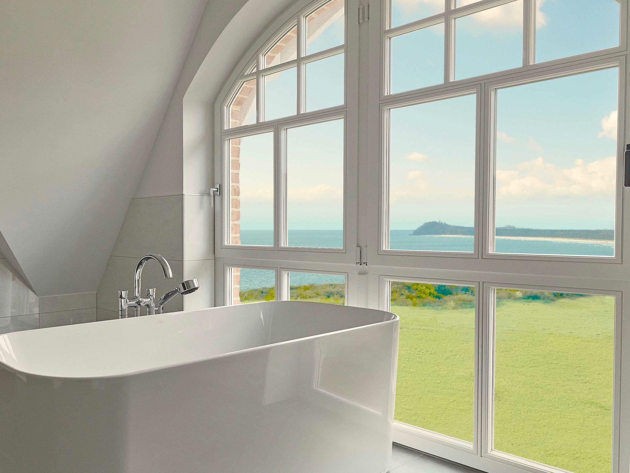 Eines der Bäder ist mit einer großen Dusche, einem Doppelwaschtisch sowie einer freistehenden Badewanne ? mit atemberaubendem Meerblick- ausgestattet. Das andere Bad verfügt über eine Dusche, ebenfalls mit einem Doppelwaschtisch.