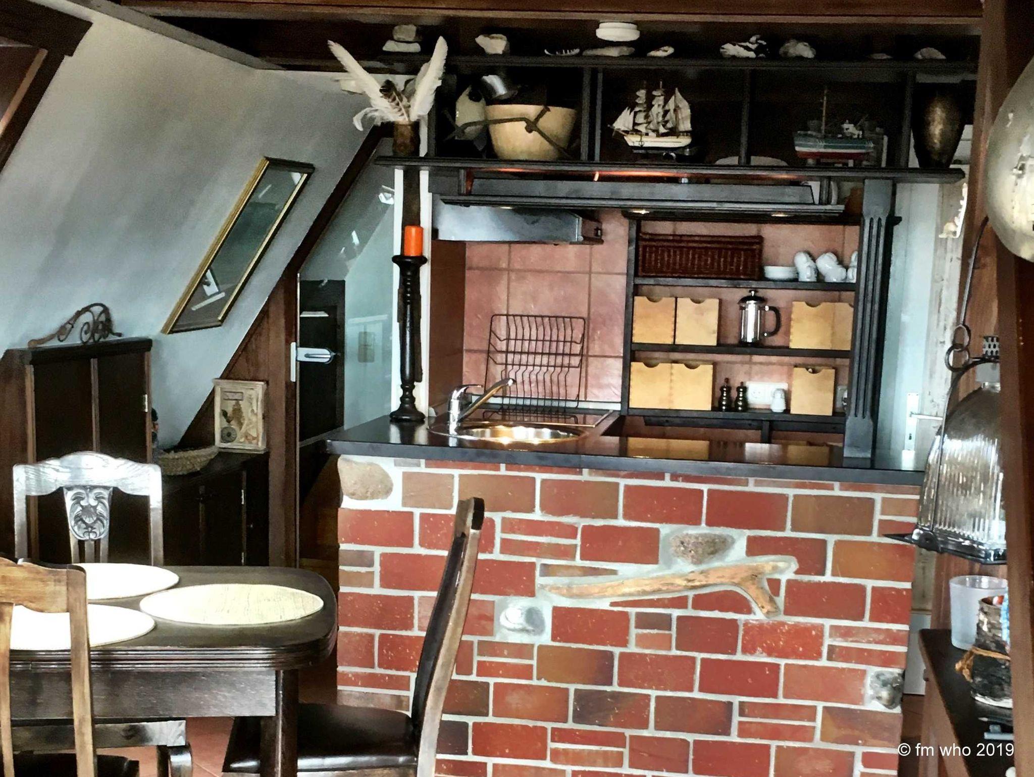 Im Erdgeschoss nutzen Sie das Wohnzimmer mit gemütlicher Sofaecke sowie einen stilvollen Essbereich; Selbstversorger können in der - durch eine schöne, handgemauerte Theke abgetrennte - Küchenzeile mit Blick in den Wohnraum walten und schalten. Geschirr, Koch- und Backgerät, Geschirrspülmaschine und Kühlschrank, sowie TV-, Radio- und Musikanlage sind selbstverständlich vorhanden.