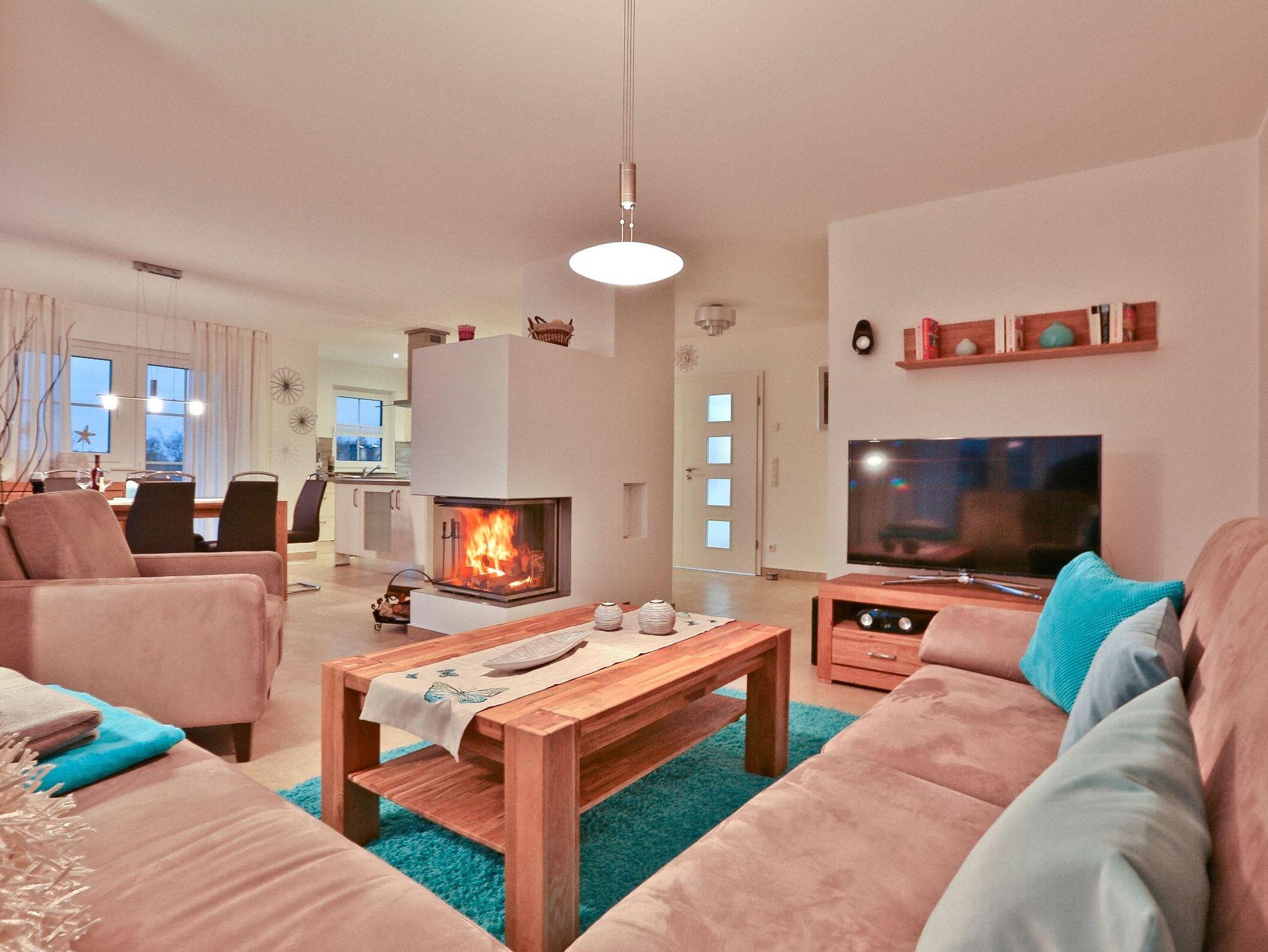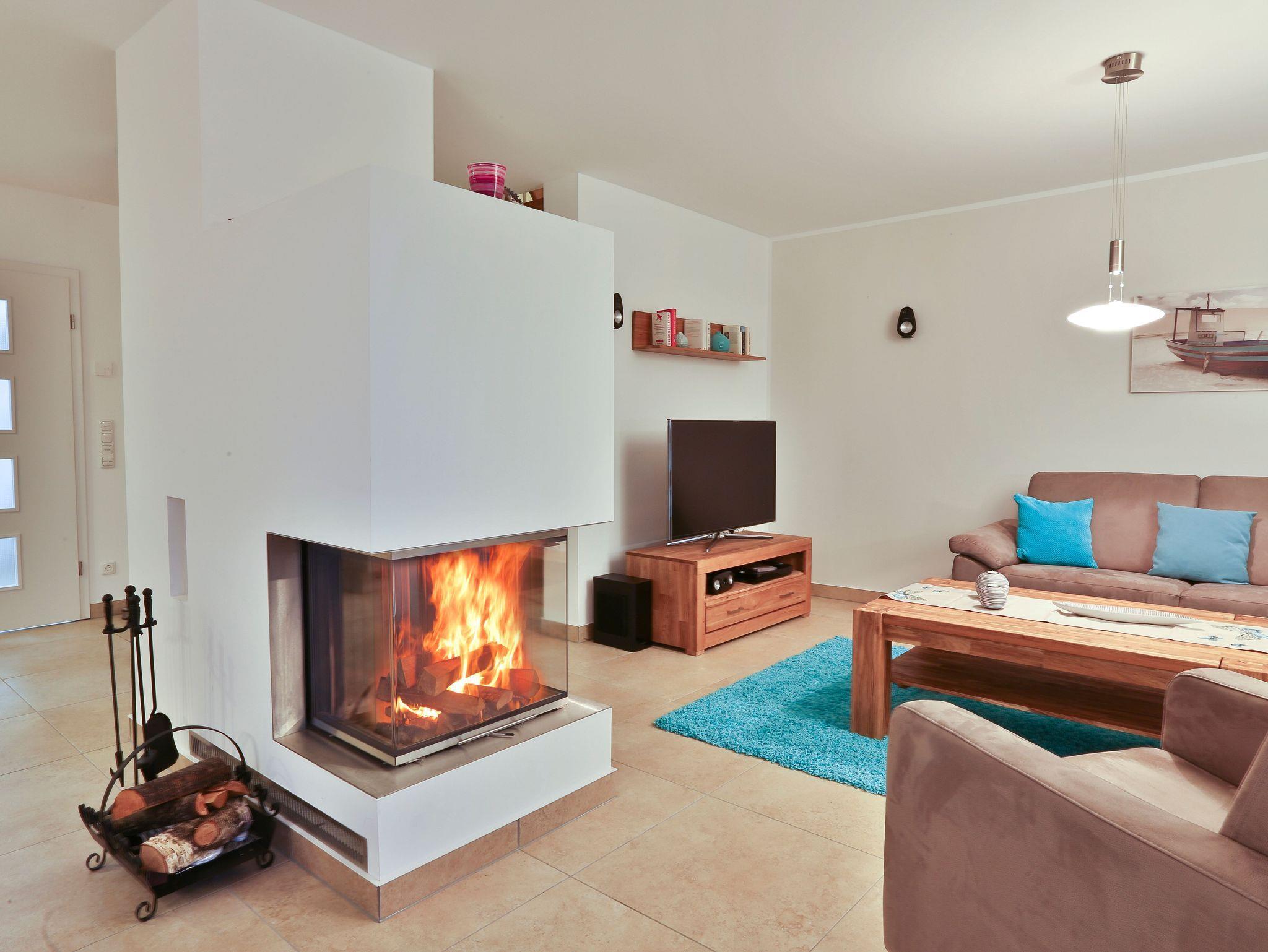 Ein besonderes Highlight ist der von drei Seiten einsehbare Kamin, der an kühlen Abenden für behagliche Wärme und eine ganz besondere Atmosphäre sorgt. Bitte beachten Sie: Kaminholz ist nicht im Mietpreis enthalten ? Sie können es gerne mitbringen oder bequem in der näheren Umgebung erwerben.