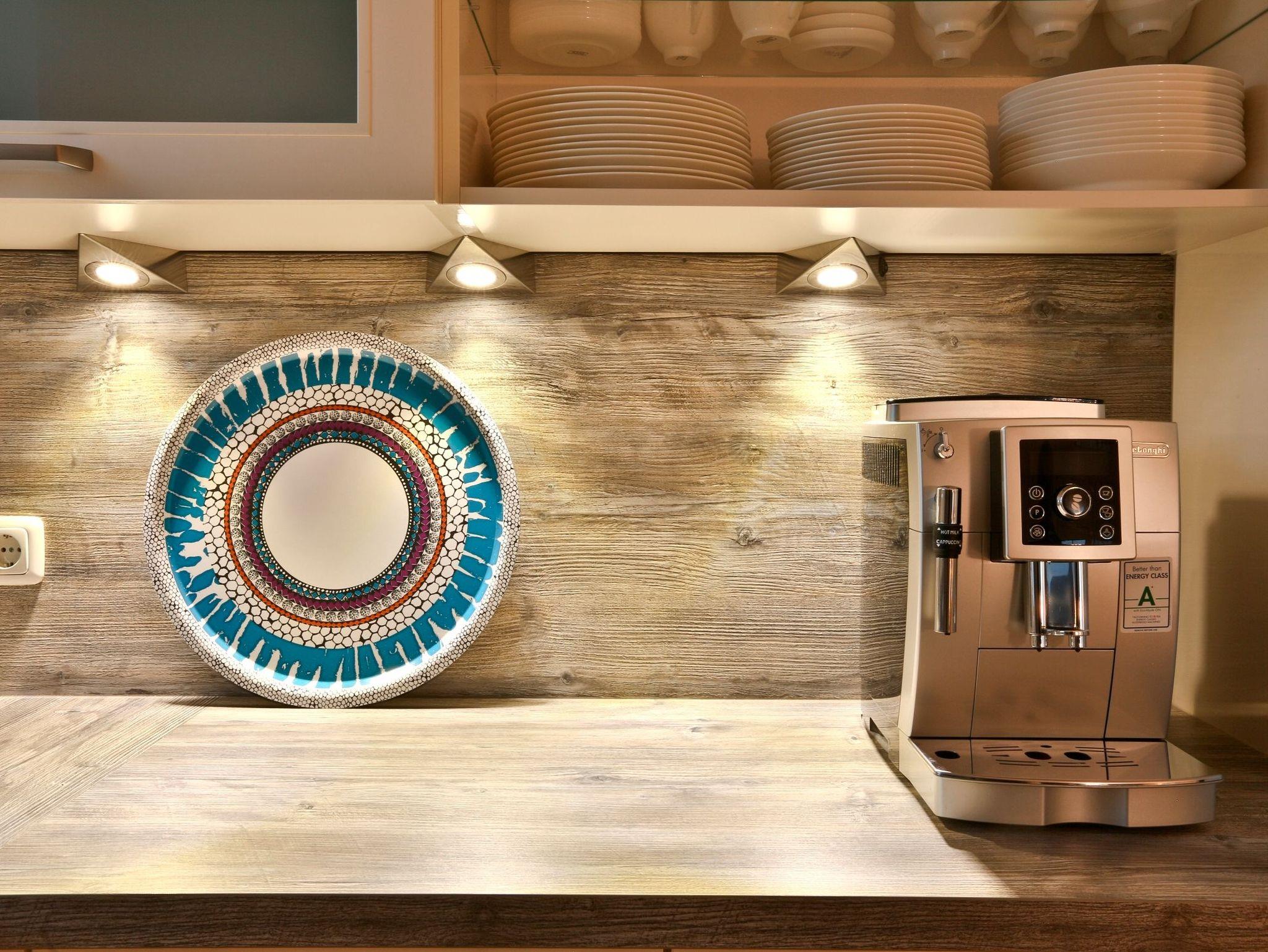 Heller großzügiger Wohnbereich mit hochwertigen Möbeln und Kamin, angrenzender komplett ausgestatteter Hochglanz-Designer-Küche mit Kaffeevollautomat von DeLonghi und Kochinsel, 3 edlen Schlafzimmern mit höchst komfortablen Box-Spring-Betten (in einem Schlafzimmer befindet sich ein zusätzliches TV-Gerät), 1 Gäste-Bad mit Dusche und 1 Bad en suite mit Regendusche und finnischer Sauna.