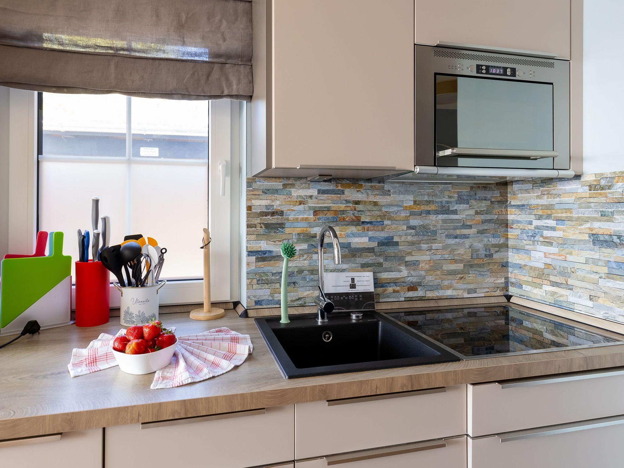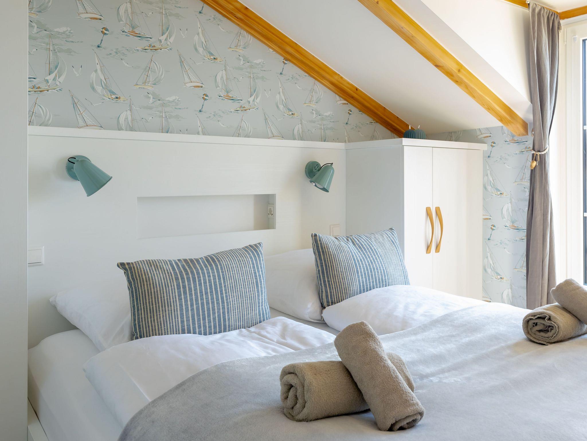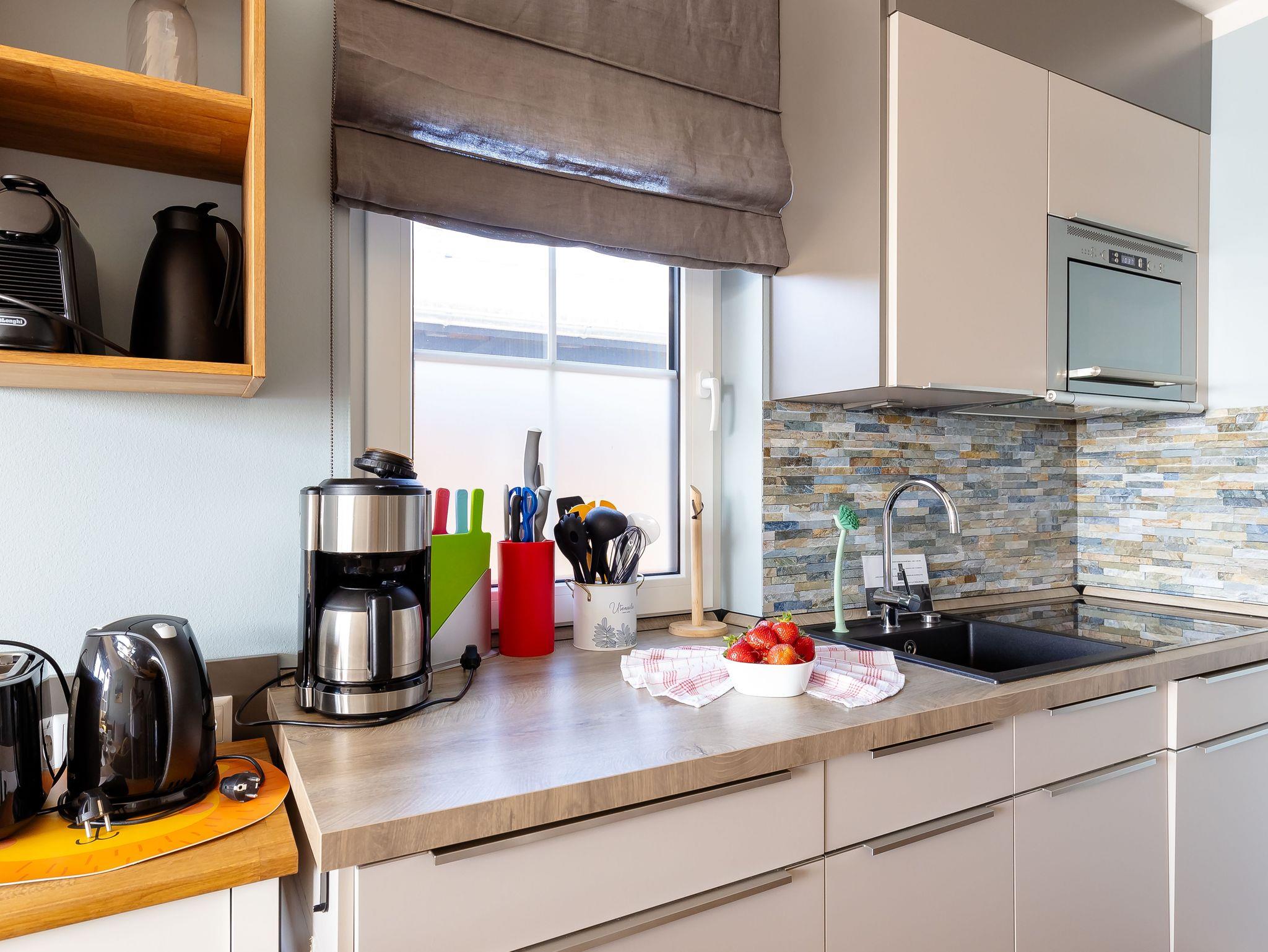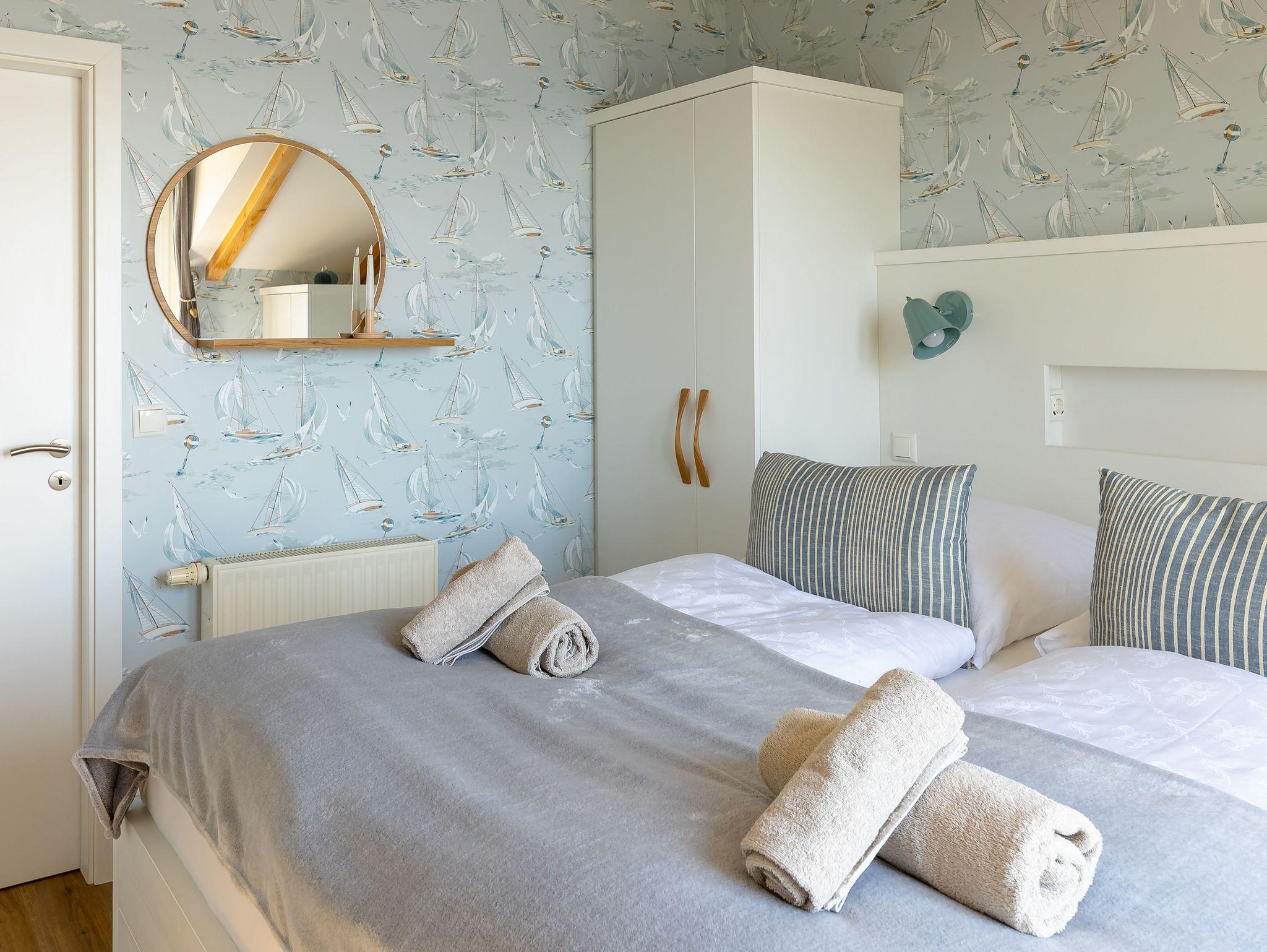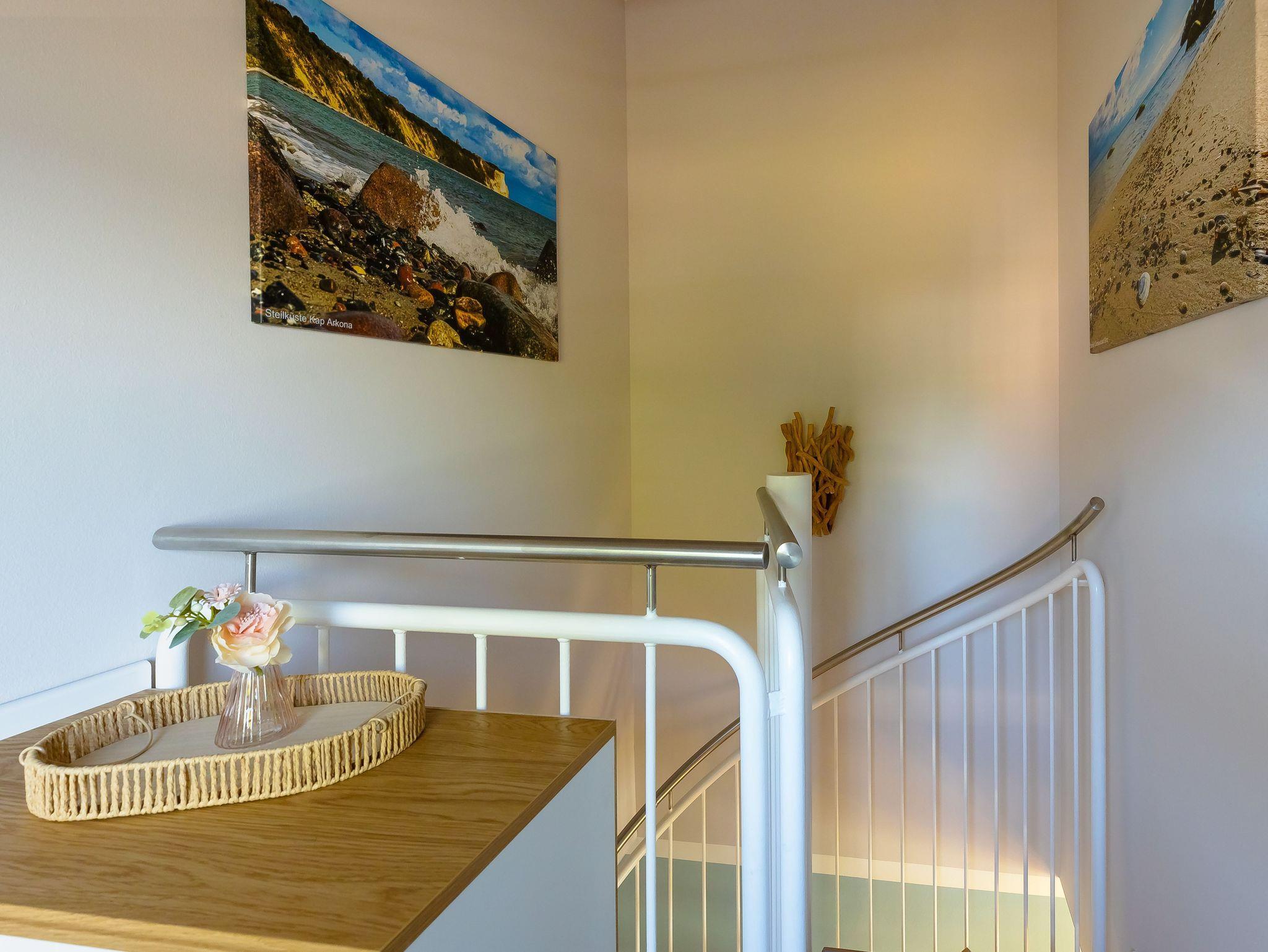 Die modern und liebevoll eingerichtete Wohnung 3 im Haus Seeblick im Maisonette-Stil verfügt über eine sonnige Terrasse mit offenem Seeblick, zwei separate Schlafbereichen im Obergeschoss, sowie einem hellen Wohnbereich mit offener Küchenzeile. Sie umfasst ca. 42qm. Genießen Sie einen unverwechselbaren Seeblick ? direkt beim Aufstehen! Der komfortable Wohnbereich mit Couch + Couchtisch, einen Sessel, einer Stehlampe, eine Kommode mit Flachbild-TV sowie eine Vitrine bietet Ihnen einen gemütlichen Ort zum Ausklingen der erlebnisreichen Tage auf der Halbinsel Mönchgut. Von hier aus gelangen Sie auf die sonnige und bestuhlte Terrasse (Süden) mit Sonnenschirm und einem einzigartigen Seeblick. Angrenzend befindet sich eine offene und voll ausgestattete Küchenzeile mit Spülmaschine, Kühlschrank mit Eisfach, Dunstabzugshaube, Wasserkocher, Kaffeemaschine, Nespresso Maschine, Toaster, Induktionsfeld und Mikrowelle und ein Essplatz. Im Obergeschoss befinden sich die beiden Schlafräume, die jeweils mit einem komfortablen Doppelbett (1,80m x 2,00m) und Kleiderschrank ausgestattet sind. Auf der unteren Ebene befindet sich das freundliche Tageslicht-Bad mit einer ebenerdigen Dusche, ein WC, ein Fön sowie ein Waschplatz mit dazugehörigem Spiegel. Für unsere kleinen Gäste steht ein Hochstuhl sowie ein Kinderreisebett (ohne Bett Inlett/inkl. Matratze) zur Verfügung. Auch ein 4-Beiner ist mit seinem eigenen Schlafplatz gegen eine Gebühr ein gern gesehener Gast. Eine Fahrrad-Unterstellmöglichkeit steht Ihnen und allen Gästen des Hauses zur gemeinschaftlichen Nutzung kostenfrei zur Verfügung. Ihr PKW-Stellplatz befindet sich knapp 100m vom Haus entfernt und ist für Sie inklusive. Die Erstausstattung eines Wäschepaketes (komplette Bettwäsche, 1 Duschhandtuch, 2 kleine Handtücher) können Sie bis 14 Tage vor Anreise gegen einen Aufpreis dazu buchen oder durch eigene ergänzen. Ab 2 gebuchten Paketen erhalten Sie einmalig 1 Geschirrhandtuch und 1 Duschvorleger hinzu.