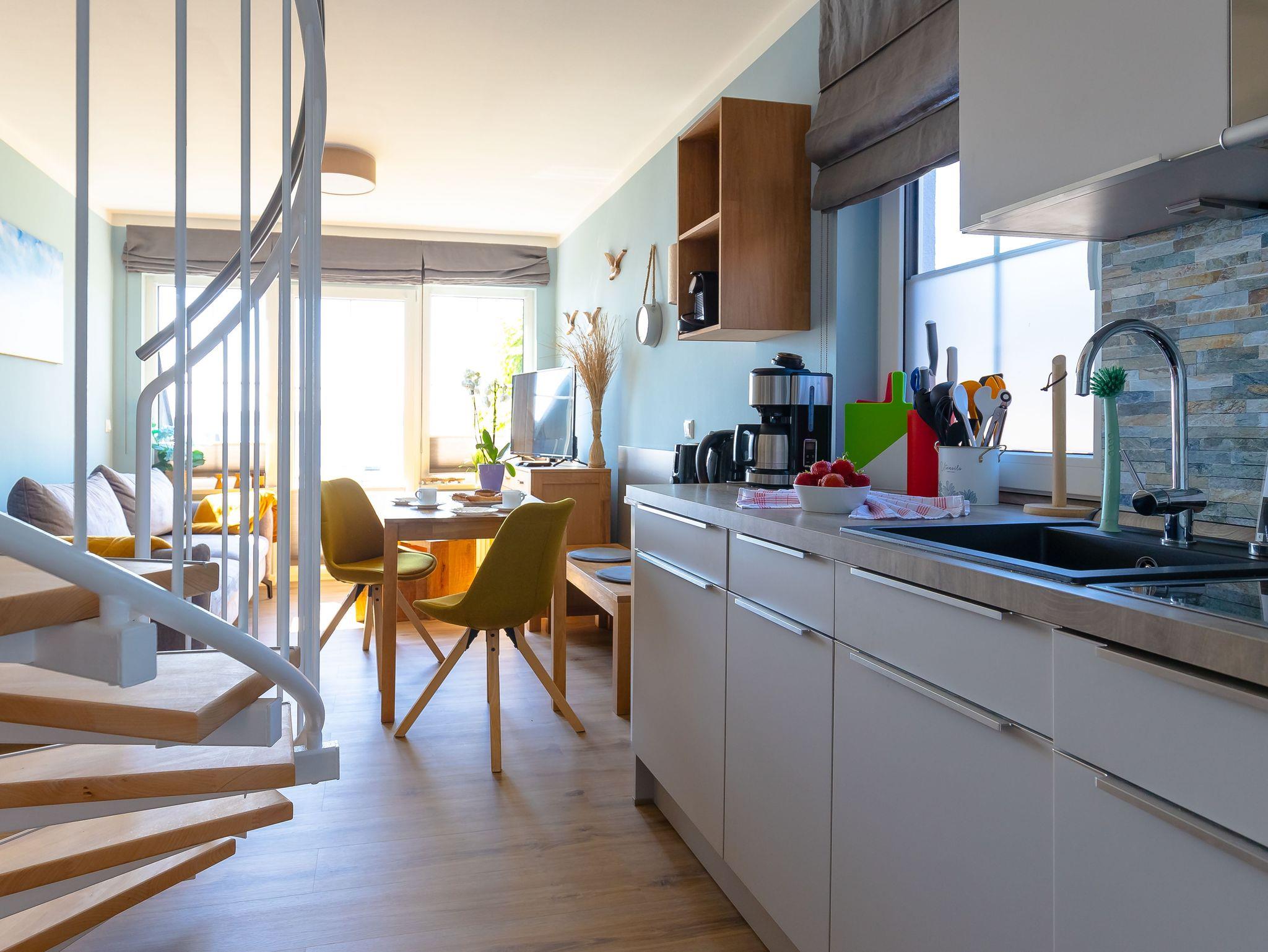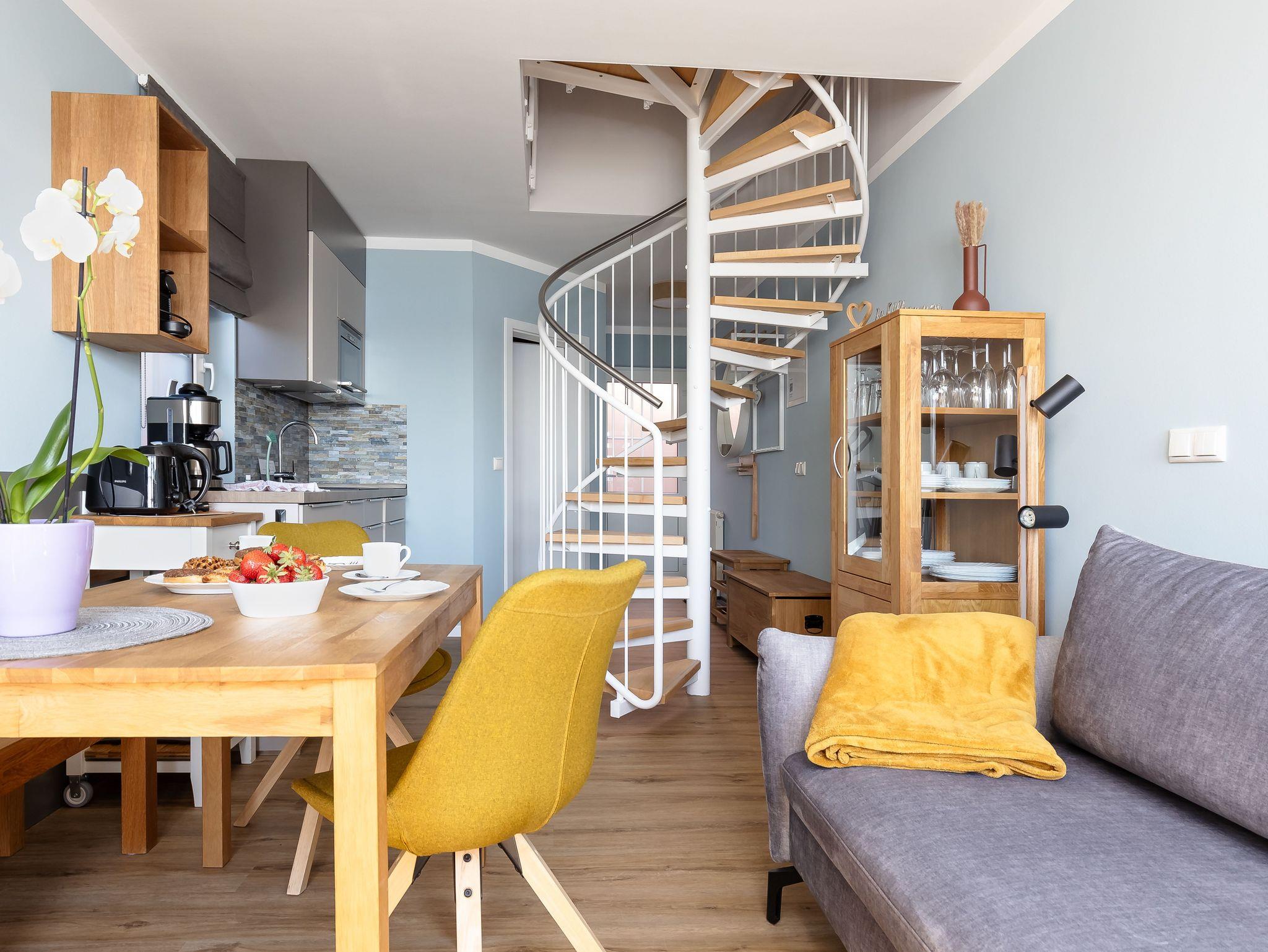 Moderne Maisonette-Ferienwohnung mit Terrasse und traumhaftem Seeblick auf der Halbinsel Mönchgut.