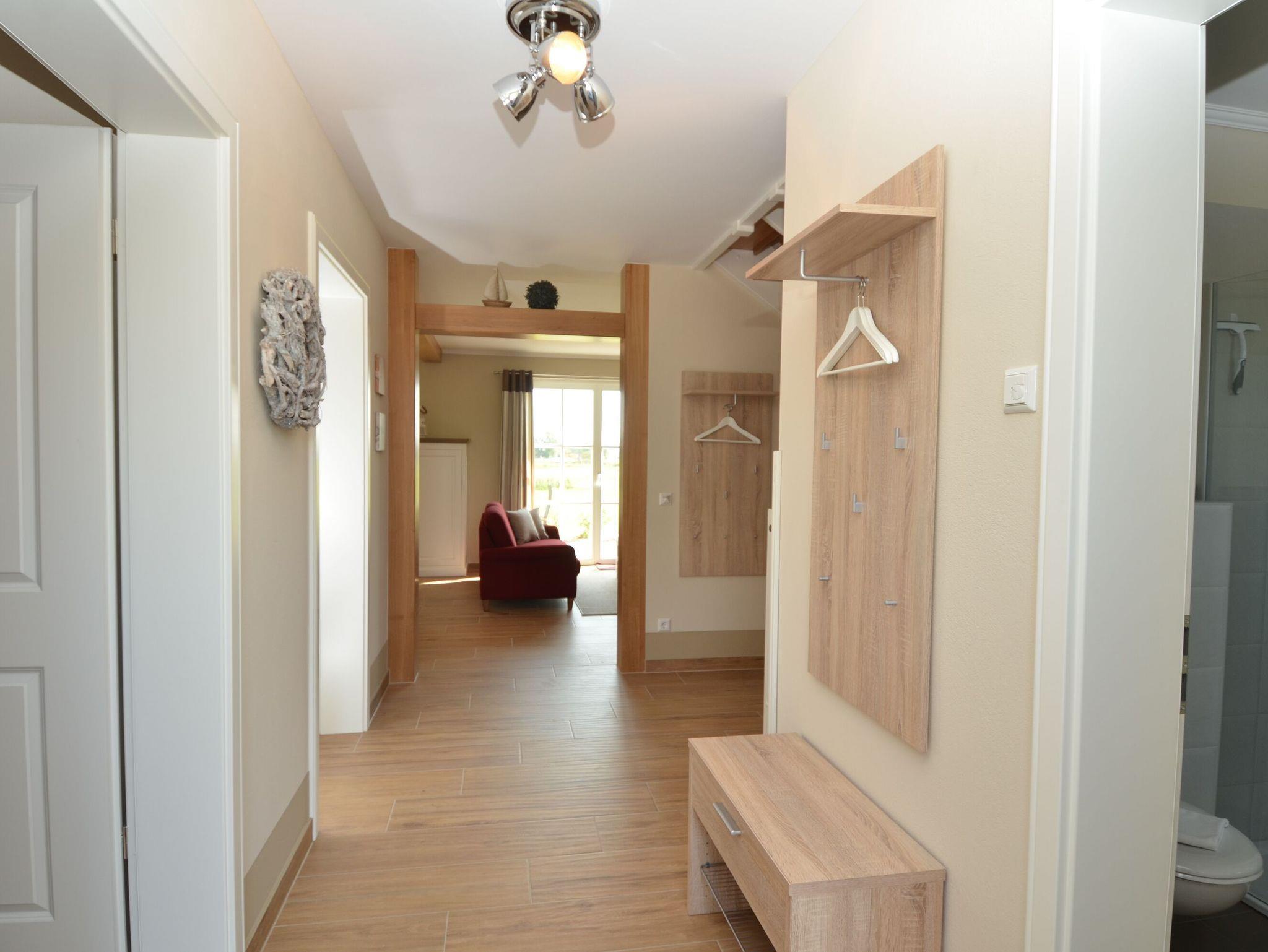 Die linke Haushälfte Findling bietet mit einer auf zwei Etagen verteilten Wohnfläche von 128 qm, einer möblierten Terrasse und einem Garten Richtung Süden mit unverbauten Blick auf den Bodden genügend Platz für erholsame Urlaubstage für Jung und Alt. Besonderen Wert wurde auf Großzügigkeit der Räume und die geschmackvolle Ausstattung in warmen Naturtönen mit maritimen Charakter gelegt.