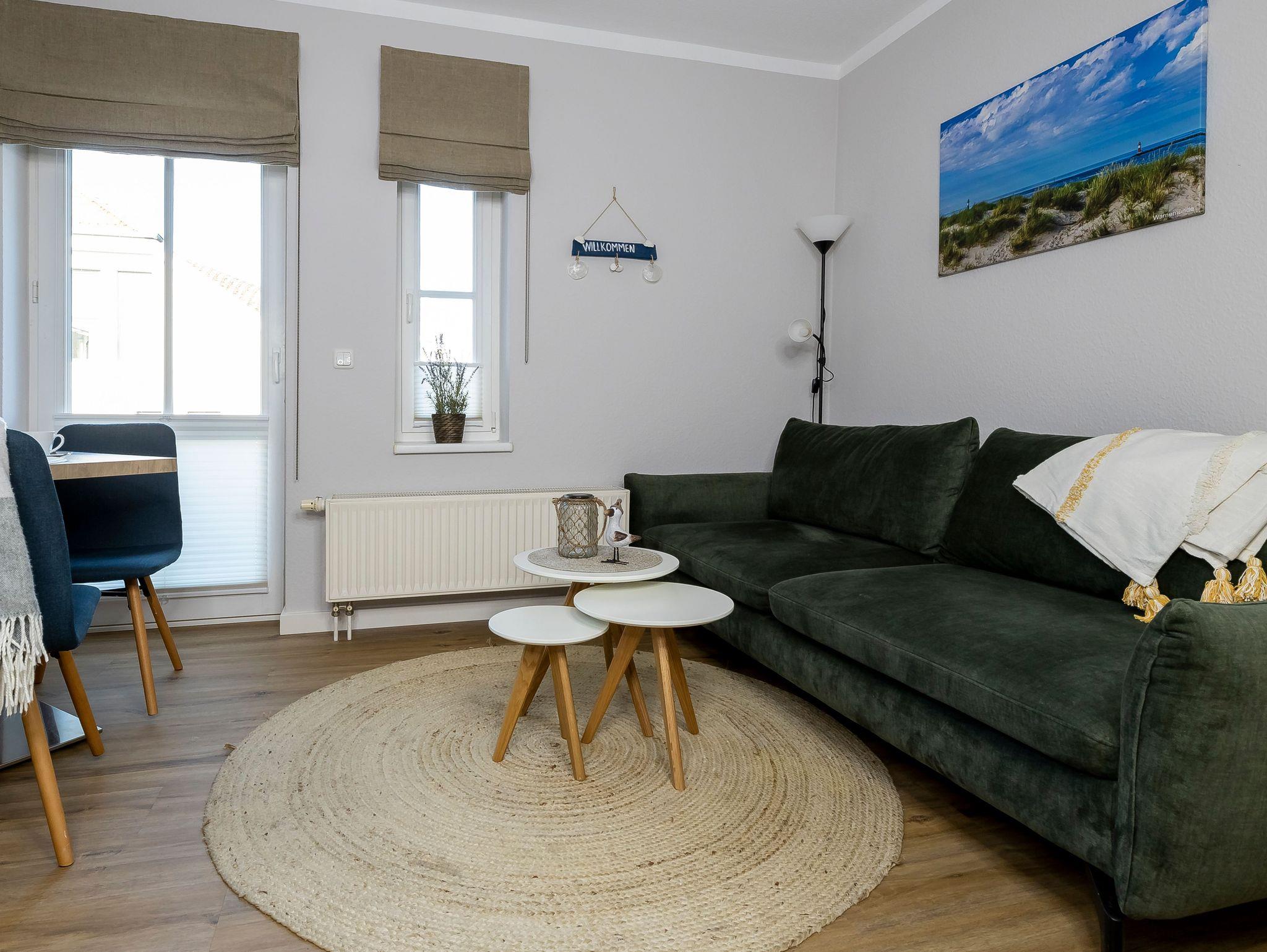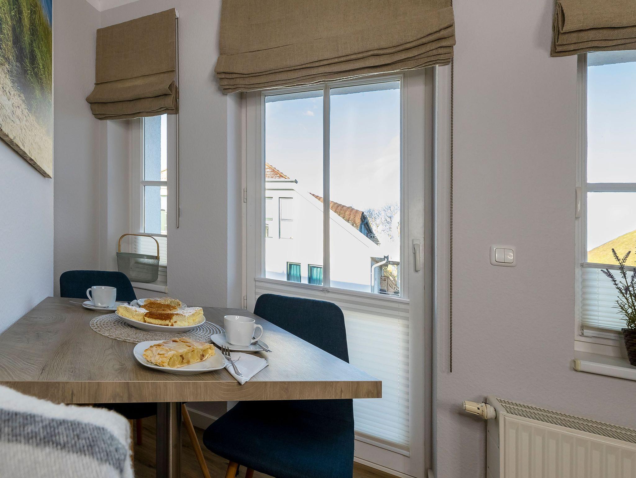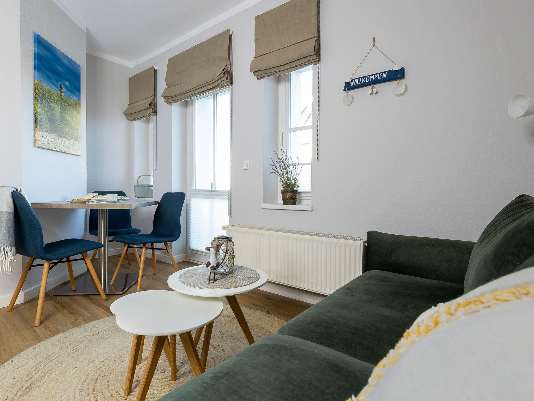 Die modern und liebevoll eingerichtete Wohnung 7 im Haus Seeblick verfügt über einen separaten Schlafbereich, einen hellen Wohnbereich mit offener Küchenzeile, sowie ein Badezimmer mit Dusche und WC. Sie umfasst ca. 32qm und bietet Ihnen Platz für max. 2 Erwachsene + 1 Kind bis 17 Jahre. Der komfortable Wohnbereich mit einer Schlafcouch (Aufbettungsmöglichkeit 1,40m x 1,90m) + Couchtisch, einer Stehlampe sowie eine Kommode mit Flachbild-TV bietet einen gemütlichen Ort zum Ausklingen der erlebnisreichen Tage auf der Halbinsel Mönchgut. Von hier aus gelangen Sie zudem auf einen kleinen bestuhlten Balkon. Zusätzlich steht Ihnen ein eigener Strandkorb (01.April - 31.Oktober) zum Entspannen im Freien direkt am Bodden zur Verfügung. Angrenzend befindet sich eine offene, voll ausgestattete Küchenzeile mit Spülmaschine, Kühlschrank mit Eisfach, Dunstabzugshaube, Wasserkocher, Kaffeemaschine, Nespresso Maschine, Toaster, Induktionsfeld mit Backofen und ein Essplatz. Direkt nebenan befindet sich das geräumige Schlafzimmer mit Doppelbett (1,80m x 2,00m) und Kleiderschrank. Das innenliegende und freundliche Badezimmer bietet Ihnen eine Dusche, ein WC, ein Fön, ein Kosmetikspiegel und ein Waschplatz mit dazugehörigem Spiegel. Für unsere kleinen Gäste steht ein Hochstuhl sowie ein Kinderreisebett (ohne Bett Inlett/inkl. Matratze) zur Verfügung. Auch ein 4-Beiner ist mit seinem eigenen Schlafplatz gegen eine Gebühr ein gern gesehener Gast. Eine Fahrrad-Unterstellmöglichkeit steht Ihnen und allen Gästen des Hauses zur gemeinschaftlichen Nutzung kostenfrei zur Verfügung. Ihr PKW-Stellplatz befindet sich knapp 100m vom Haus entfernt und ist für Sie inklusive. Die Erstausstattung eines Wäschepaketes (komplette Bettwäsche, 1 Duschhandtuch, 2 kleine Handtücher) können Sie bis 14 Tage vor Anreise gegen einen Aufpreis dazu buchen oder durch eigene ergänzen. Ab 2 gebuchten Paketen erhalten Sie einmalig 1 Geschirrhandtuch und 1 Duschvorleger hinzu.