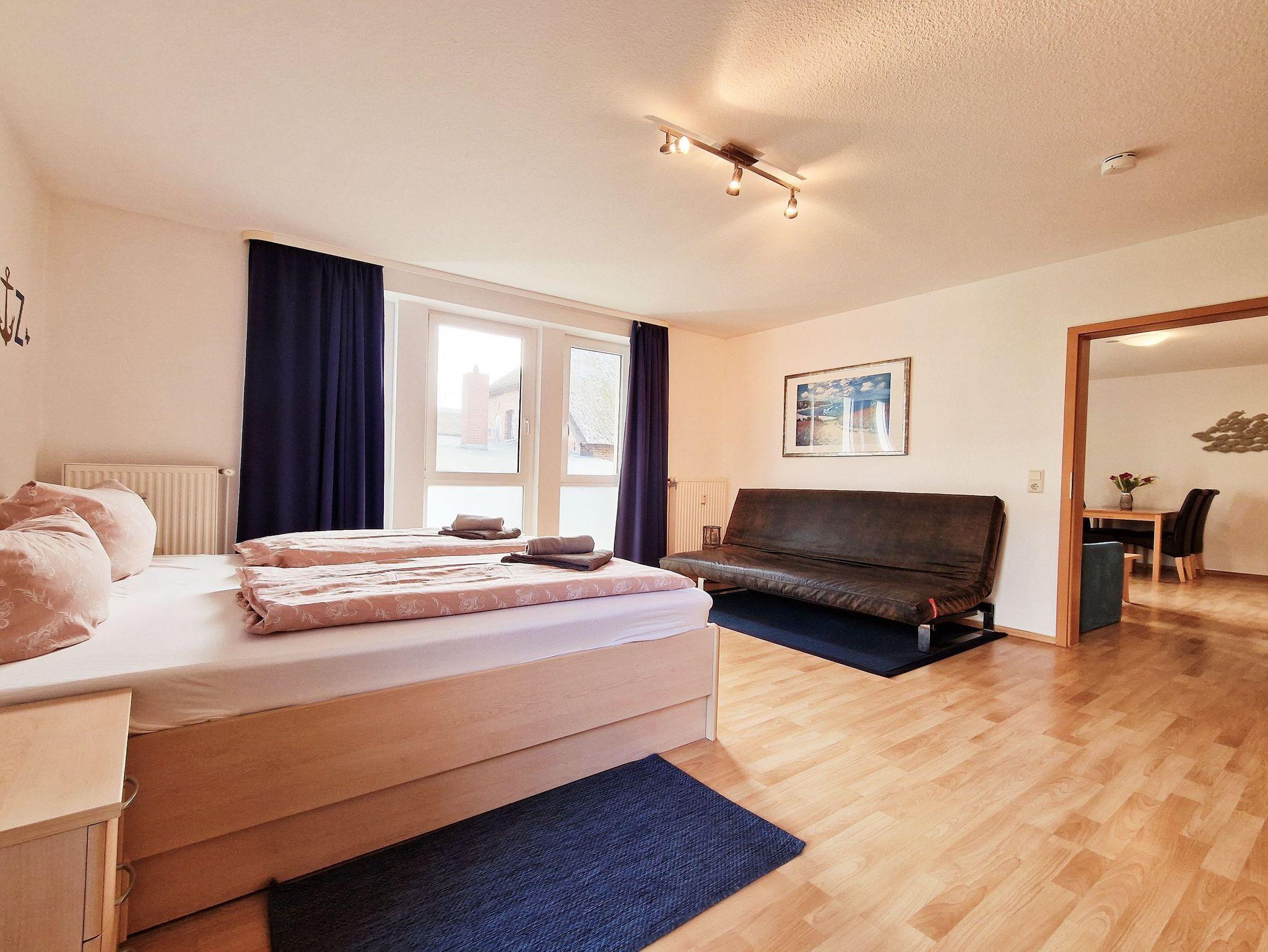 • WOHNEN: Wohnraum mit Essbereich, bequemer Schlafcouch, Flachbild-TV