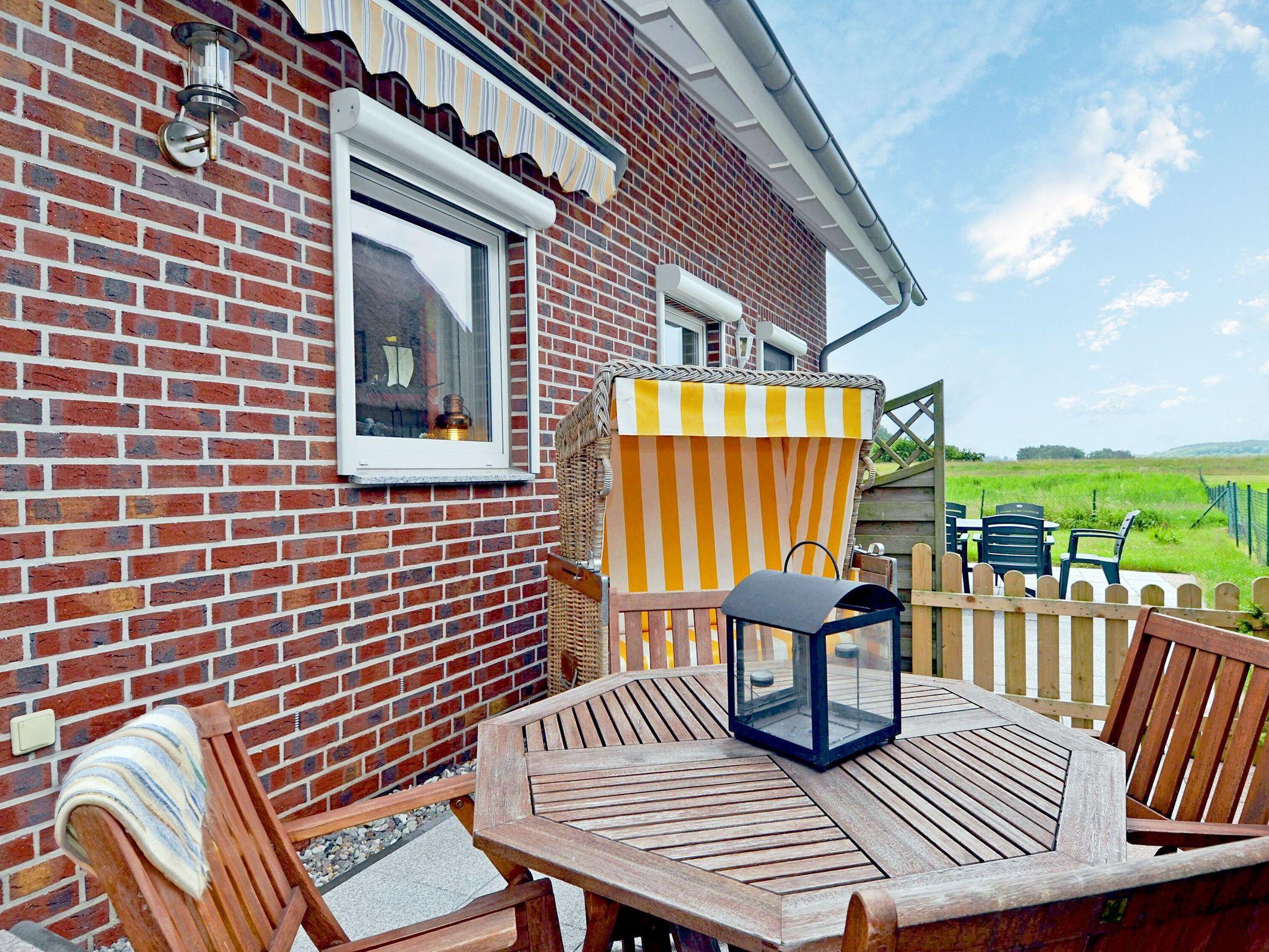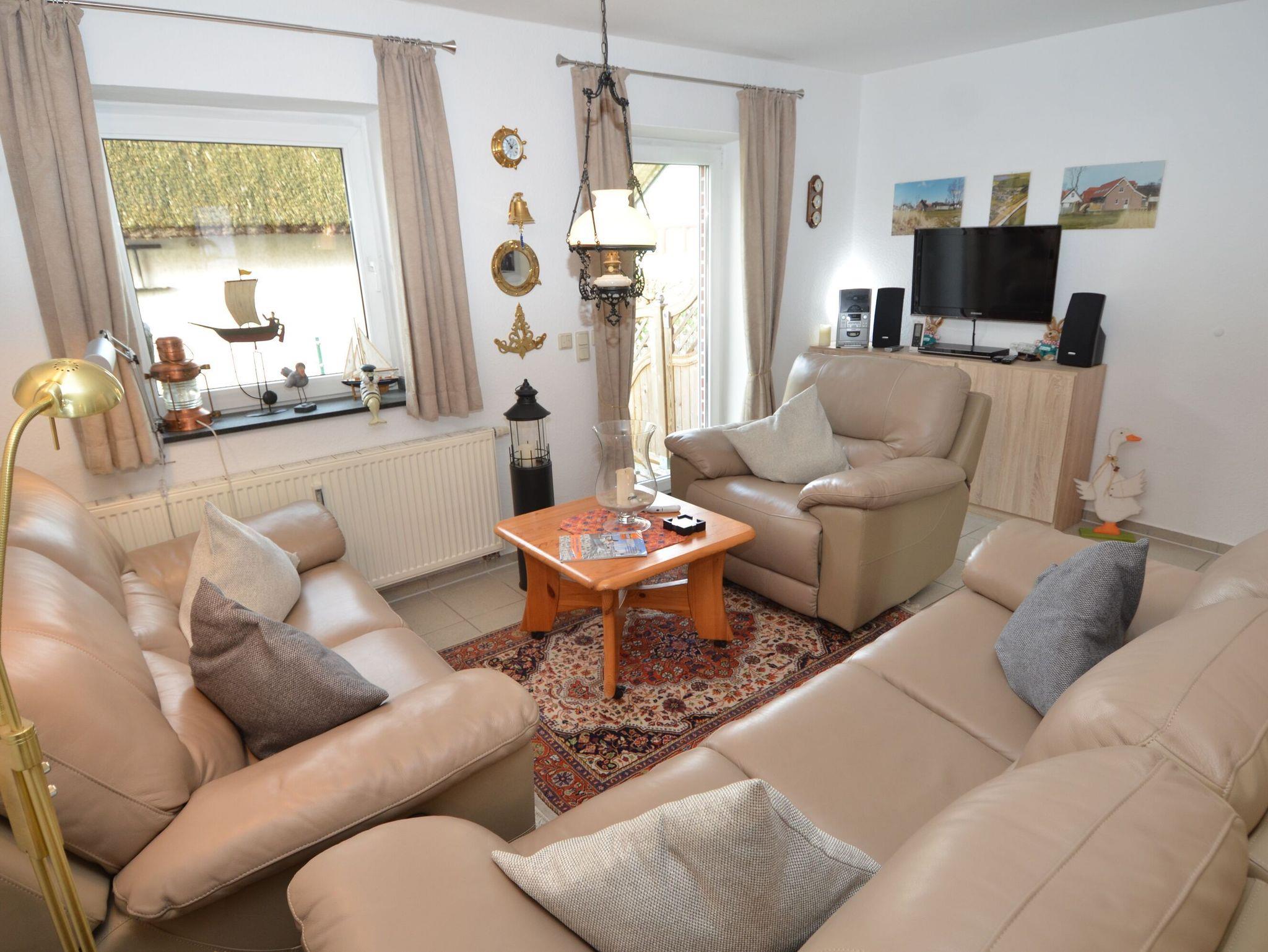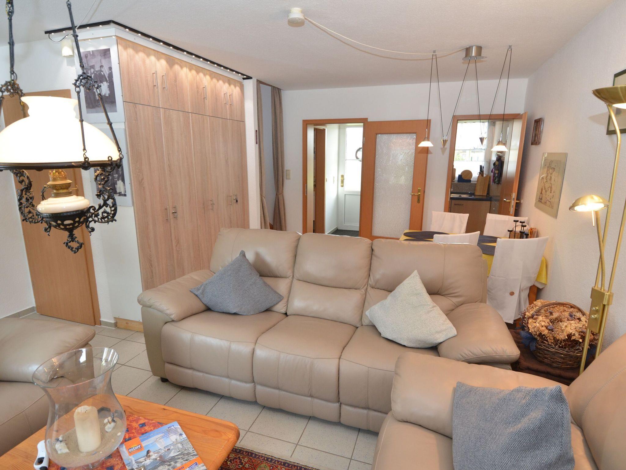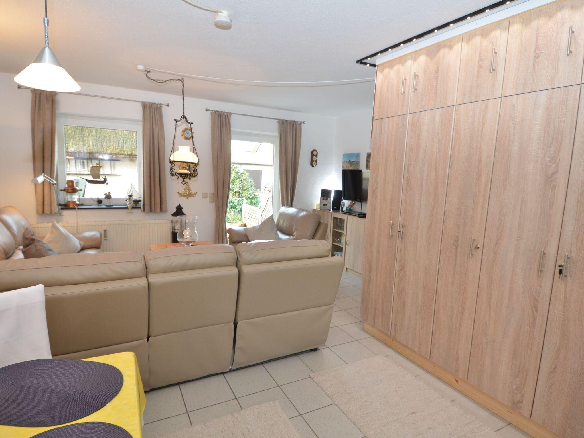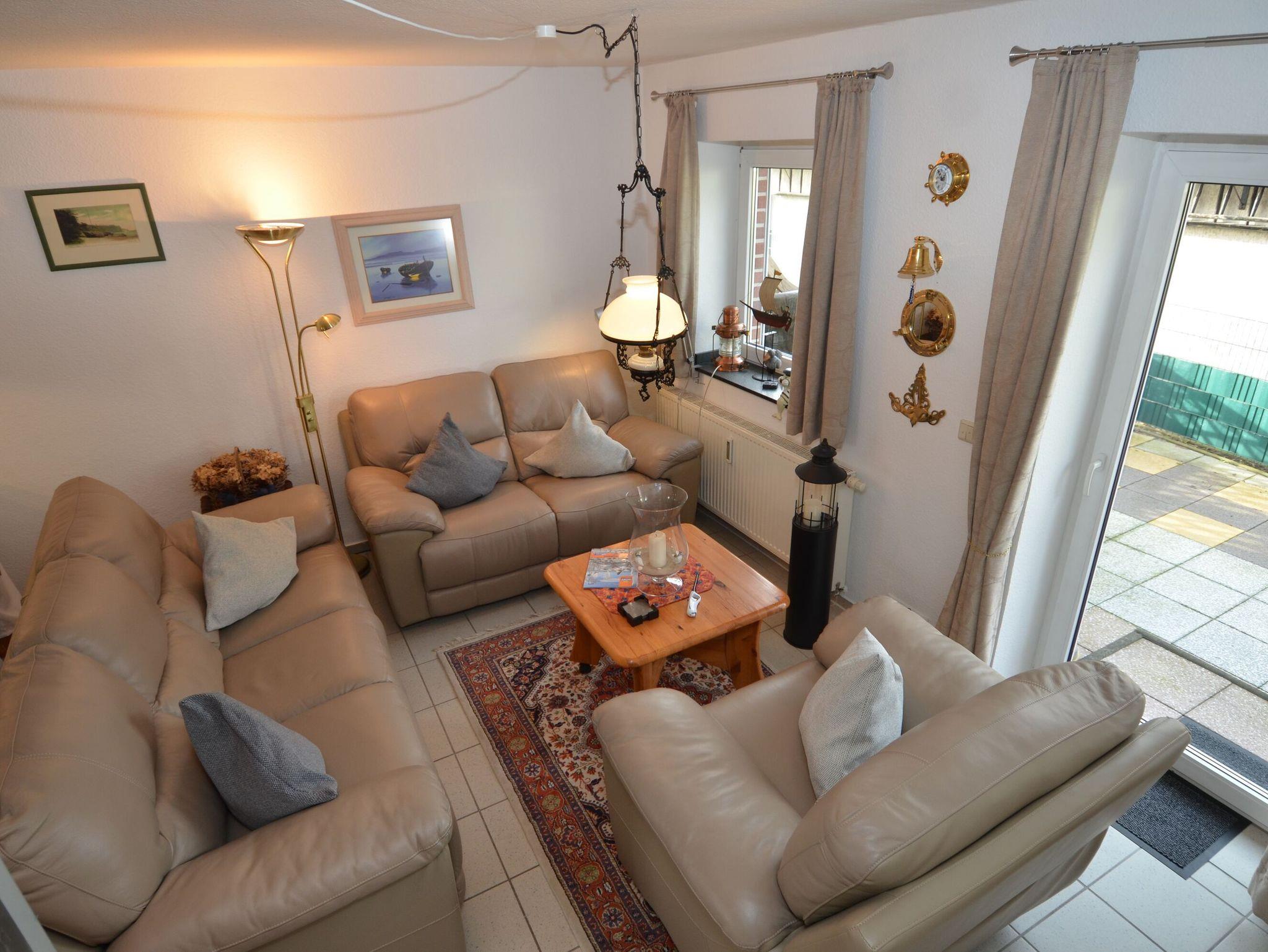 Dieses Appartement im gemütlichen Landhausstil verfügt im Erdgeschoss über eine Terrasse, einen Wohnraum mit Couchecke, einen Flachbild-TV, Radio, CD-Player und einen Esstisch für 4 Personen.