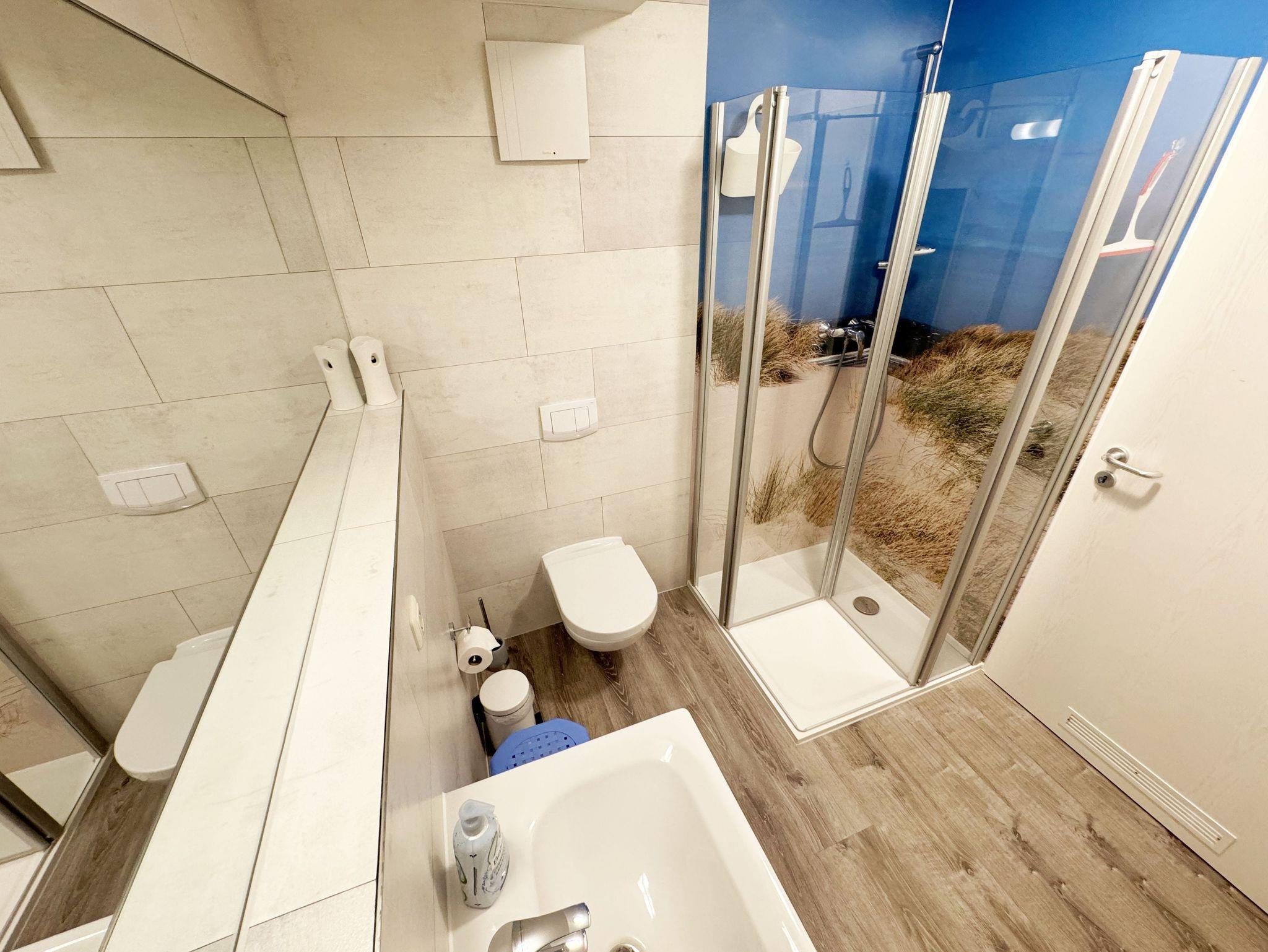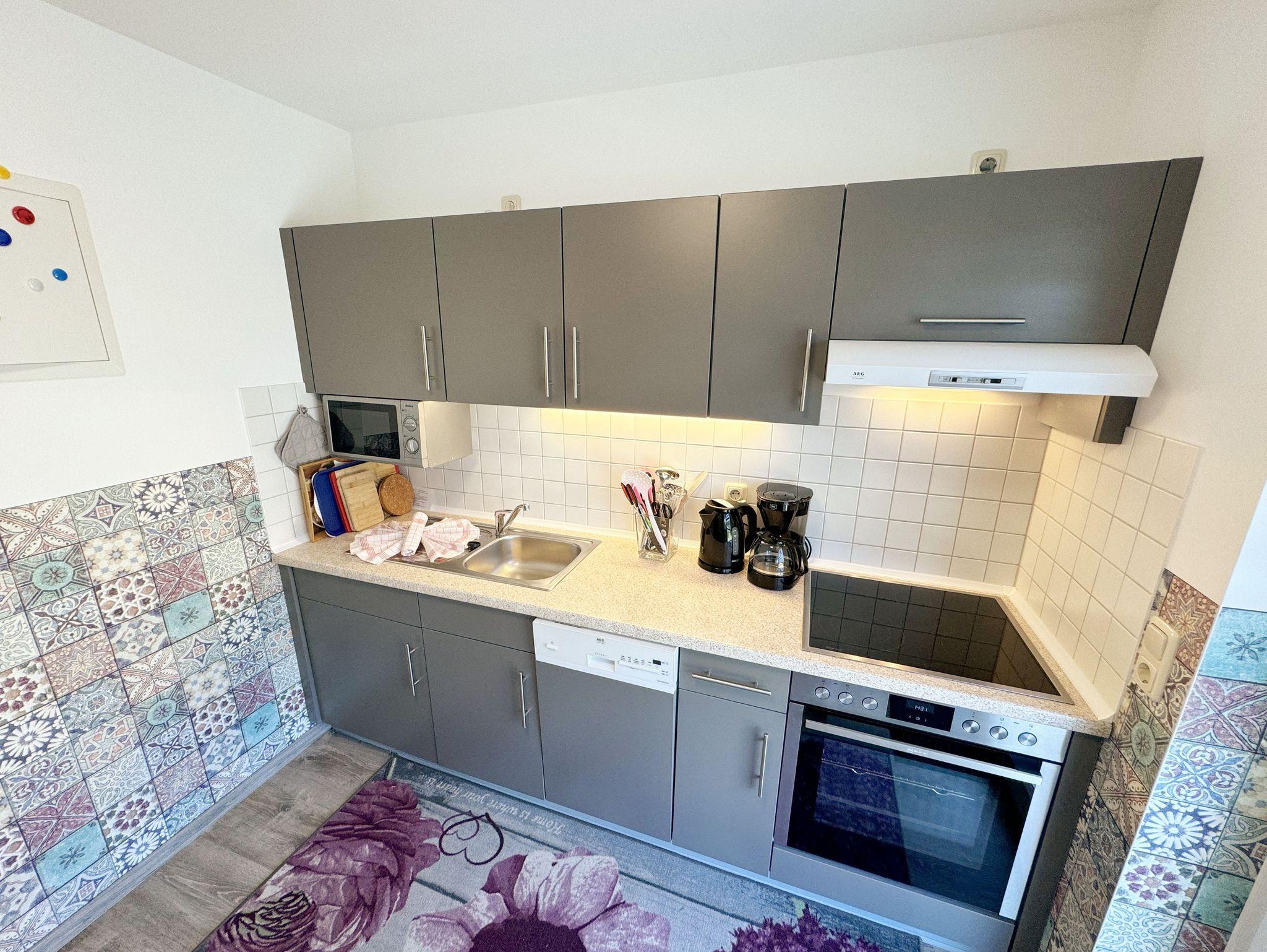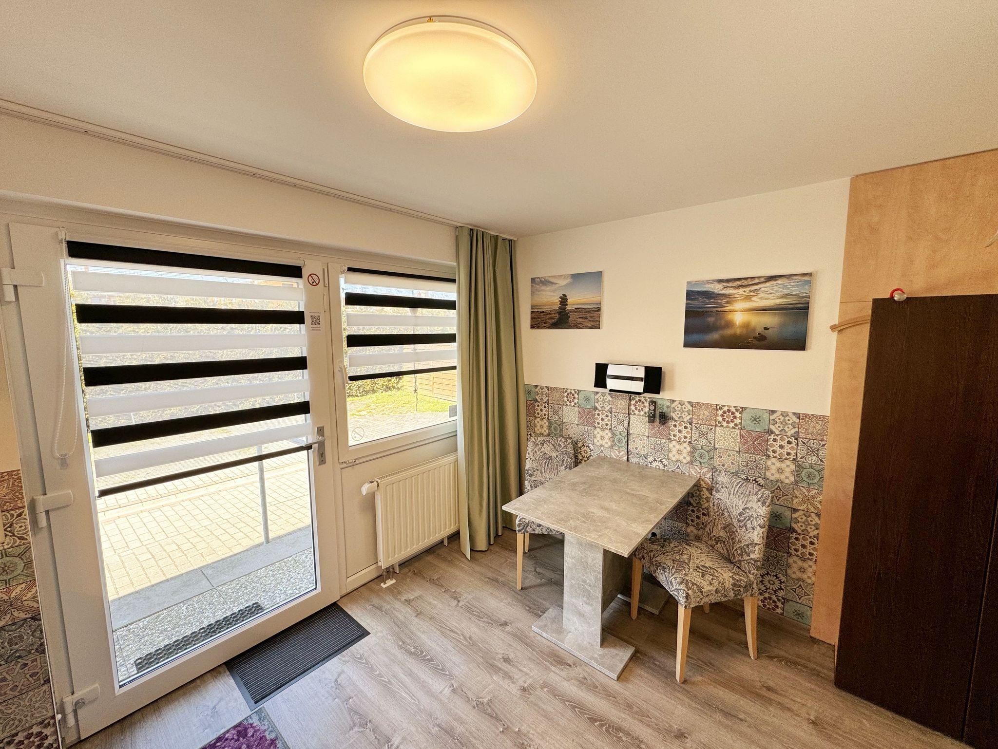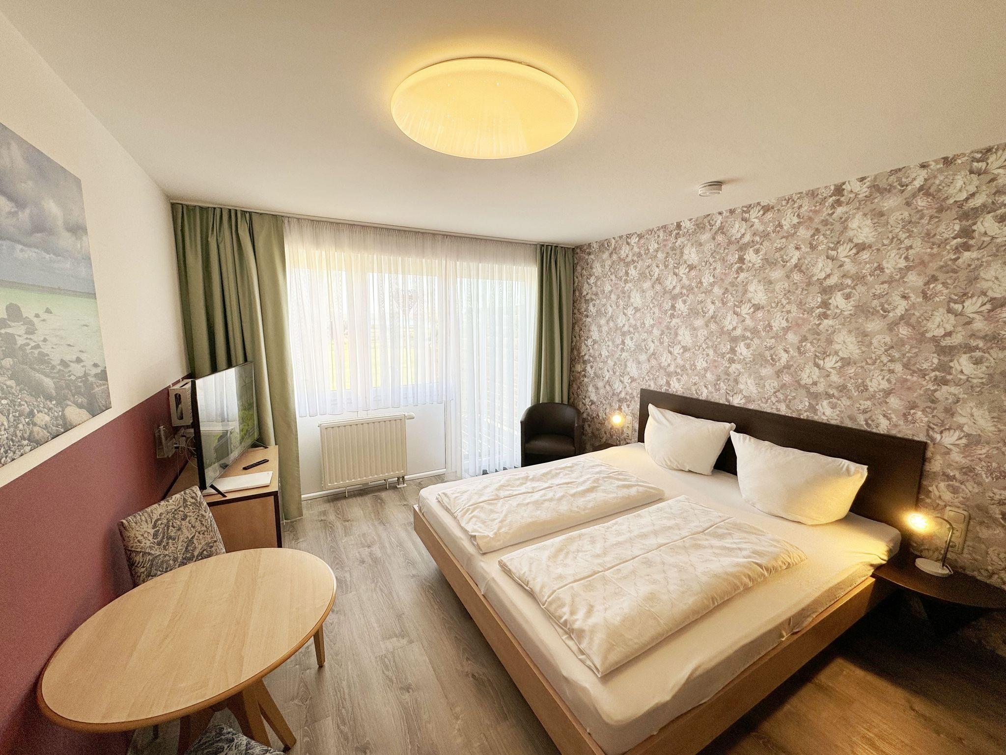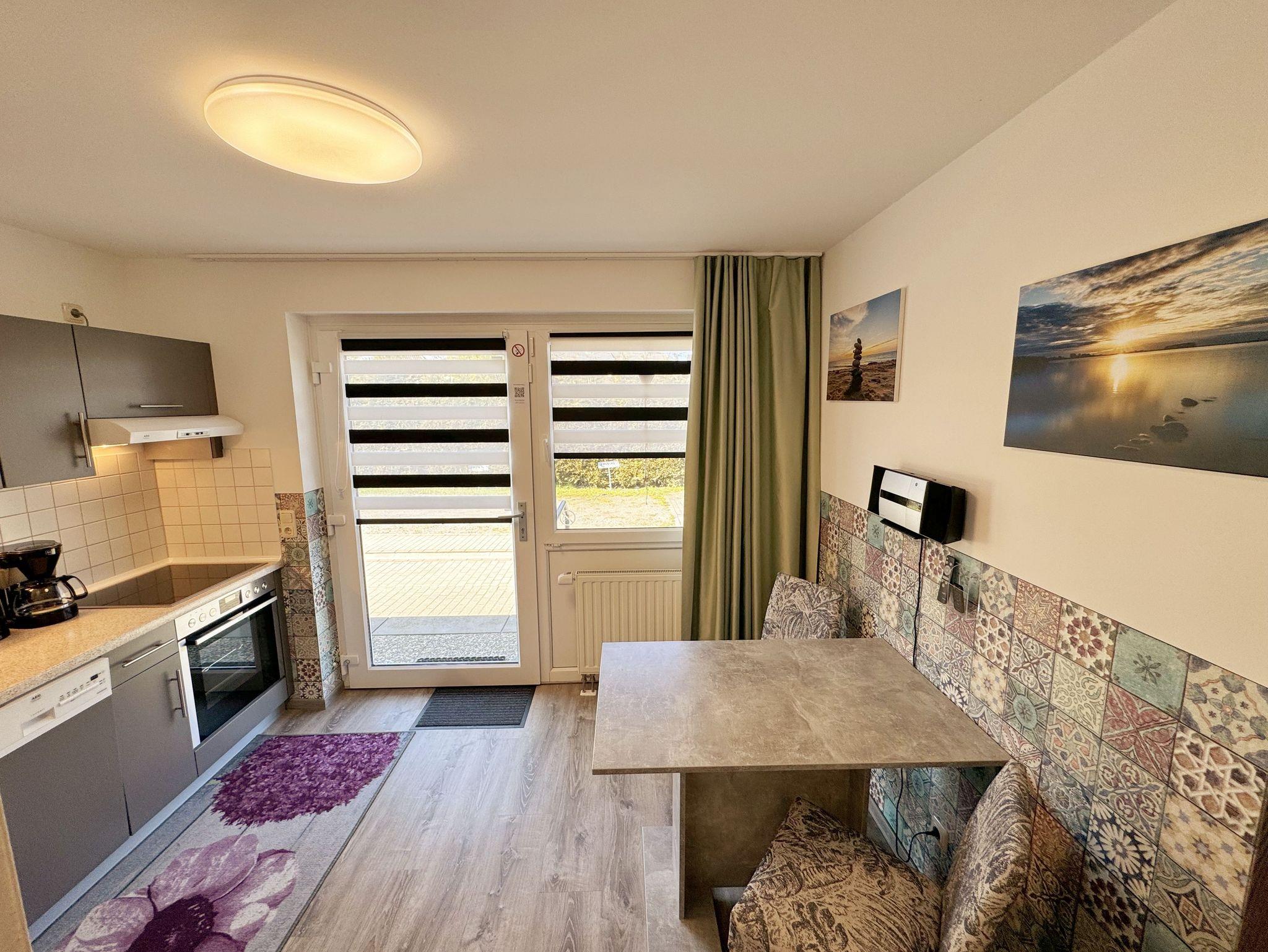 Die Nichtraucherwohnung Nr. 03 im Haus Inselperle bietet mit Ihren ca. 30 m² Platz für max. 2 Erwachsene. Der großzügige Koch- und Essbereich, welchen Sie über den Eingang betreten, ist ausgestattet mit einer vollständig eingerichteten Küchenzeile mit 4 Zonencerankochfeld, Geschirrspüler, Backofen, Kühlschrank mit Gefrierfach, Toaster, Mikrowelle, Wasserkocher, Kaffeemaschine, Padmaschine (Dolce Gusto) sowie diverse kleine Küchenhelfer. Ein angrenzender Esstisch rundet den Bereich ab. Über den kleinen Flur erreichen Sie das innenliegende Badezimmer welches mit WC, Dusche, Waschtisch mit Unterschrank, Fön, Kosmetikspiegel, großem Wandspiegel, Handtuchheizkörper und einem Ablageregal ausgestattet ist. Im daran folgenden Wohn- /Schlafbereich, welcher komplett mit einem hochwertigen Teppich verlegt wurde, erwartet Sie ein großes Doppelbett mit Einzelmatratzen (1,80 m x 2,10 m), Nachttischablagen mit Leselampen sowie einen geräumigen Kleiderschrank mit Safe für Ihre Wertsachen. Für einen erholsamen Schlaf sorgen die Verdunklungsgardinen. Zusätzlich steht Ihnen hier ein Sideboard, Stehlampe und eine kleine Sitzmöglichkeit zur Verfügung. Ein Smart-TV (43 Zoll), Mini-Stereoanlage mit CD-Player, MP3, USB und Bluetooth mit NFC sowie ein inklusiver WLAN-Anschluss runden den technischen Bereich ab. Genießen Sie Ihr Frühstück auf Ihrer bestuhlten Terrasse bei herrlichem Sonnenschein oder die Abende bei einem gemütlichen Grillabend mit dem zur Verfügung stehenden Standgrill. Ein Sonnenschirm komplettiert Ihre Terrasse (Süd/Ost). Bitte beachten Sie jedoch, dass das Grillen auf den Holzterrassen aus brandschutztechnischen Gründen nicht erlaubt ist. Hier finden Sie aber ausreichend Platz auf dem Außengelände, welches auch über einen kleinen Kinderspielplatz, Sandkiste und einer Tischtennisplatte verfügt. Haustiere sind nicht erlaubt. Sollte Ihnen doch einmal Strandsand ins Haus geraten oder etwas runterfallen, ist jede Wohnung mit einem Staubsauger und anderen Reinigungsgeräten ausgestattet. Ihre mitgebrachten Fahrräder (max. 2 ) können Sie in der Fahrradbox 2 sicher verschließen. Die Grünfläche des Hauses lädt zu geselligen Abenden mit weiteren Hausgästen ein. Ein PKW-Stellplatz (Nr.03) steht Ihnen inklusive am Haus zur Verfügung. Die Erstausstattung eines Wäschepaketes (komplette Bettwäsche, 1 Duschhandtuch, 1 kleines Handtuch, 1 Duschvorleger) können Sie bis 14 Tage vor Anreise gegen einen Aufpreis dazu buchen oder durch eigene ergänzen. 1 Geschirrhandtuch gehört zu jedem Aufenthalt dazu.