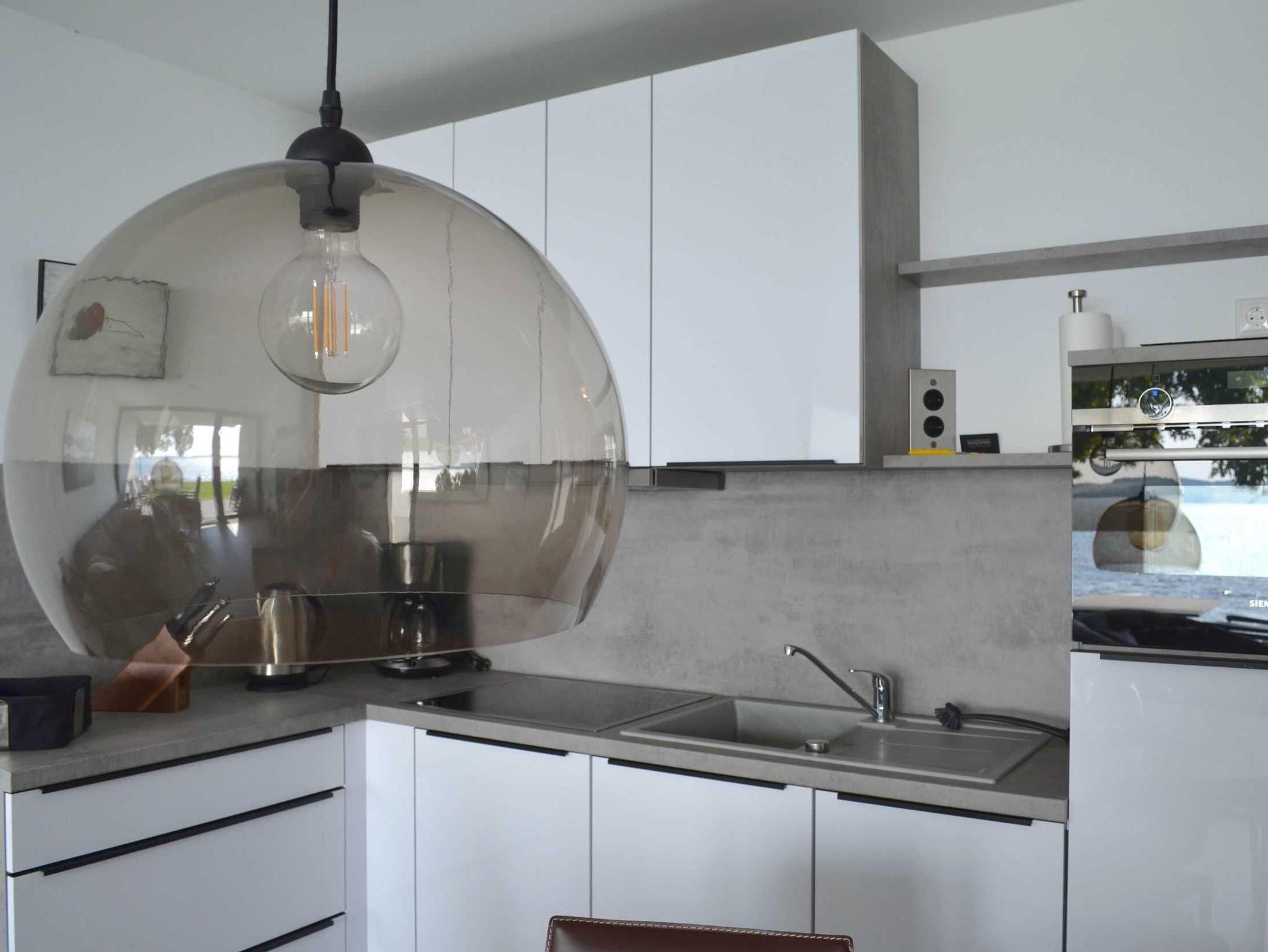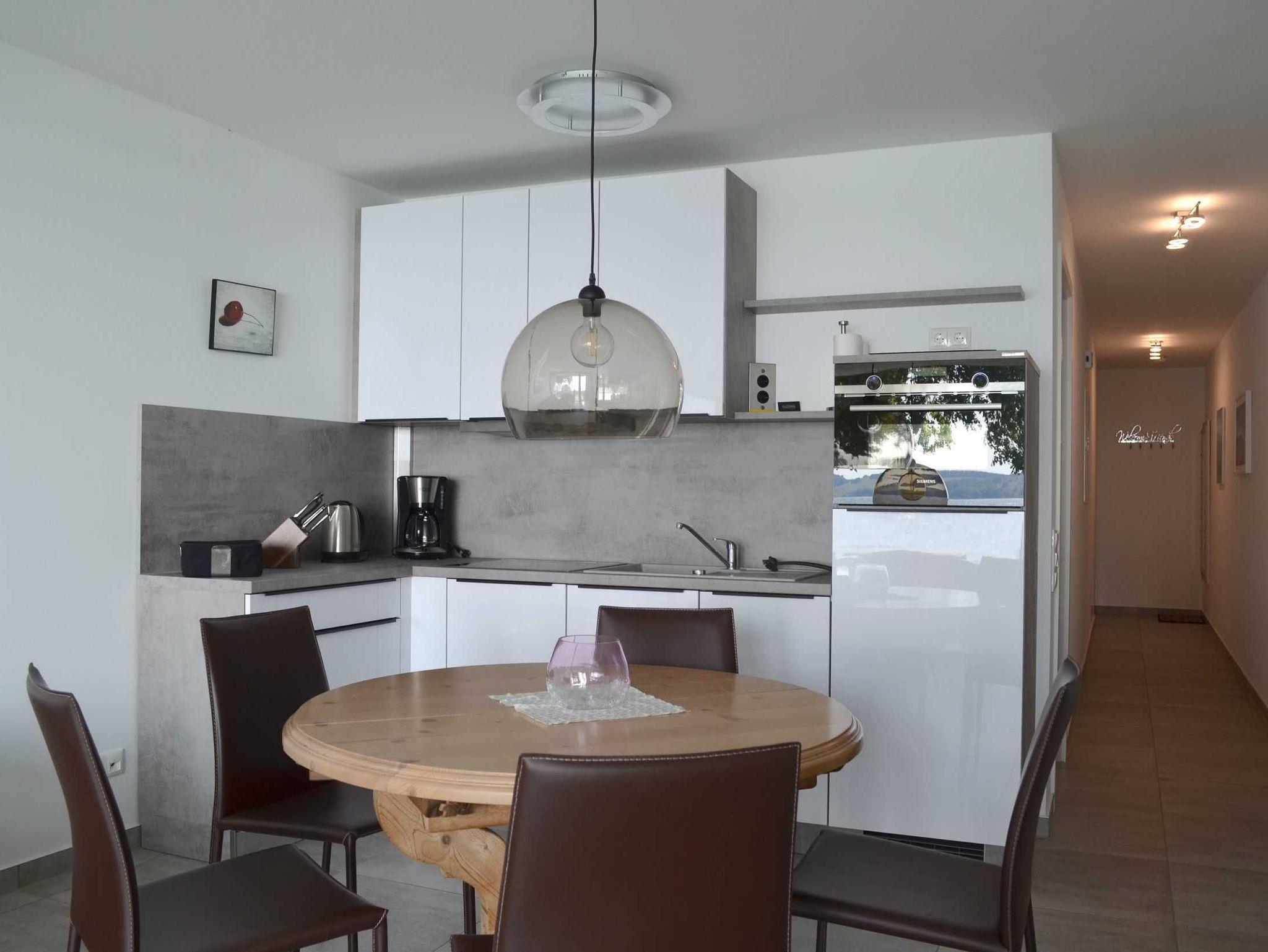 Der helle Wohnbereich bietet mit Smart-TV, einem stylischen Wohn- und einem gemütlichen Ess-Ensemble allen denkbaren Komfort. Die offene Küche ist mit allem ausgestattet, was das Herz begehrt, wie einem 4-Felder Induktionsherd, Backofen, Spülmaschine, Kaffeemaschine, Wasserkocher, reichlich Geschirr und Küchenutensilien. Schnelles, kostenfreies W-LAN sorgt trotz der wunderschönen Abgeschiedenheit dafür, dass Sie stets mit der Welt verbunden sind.