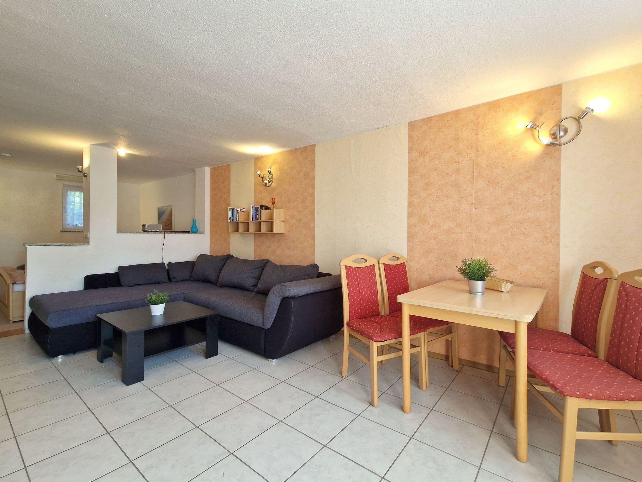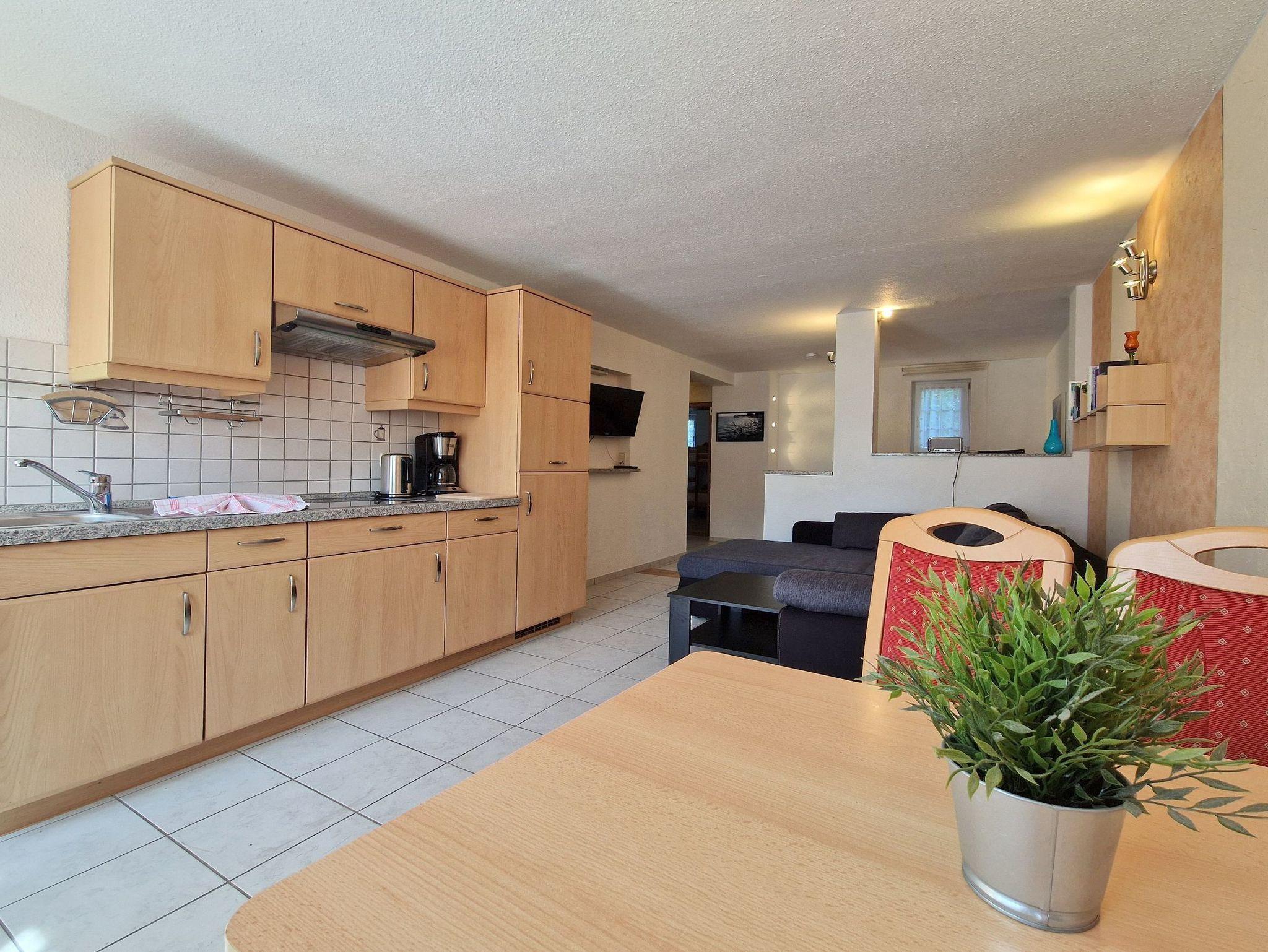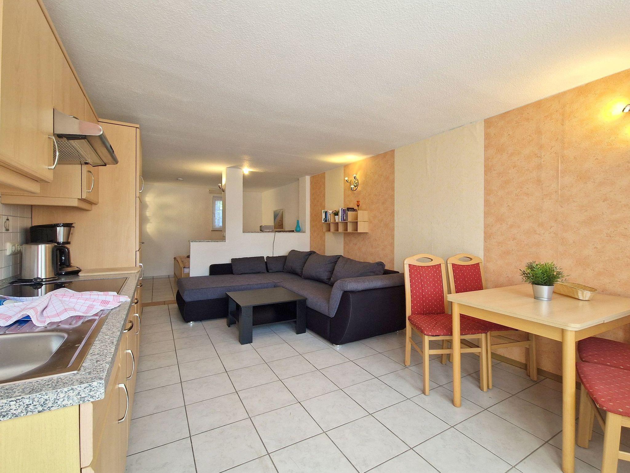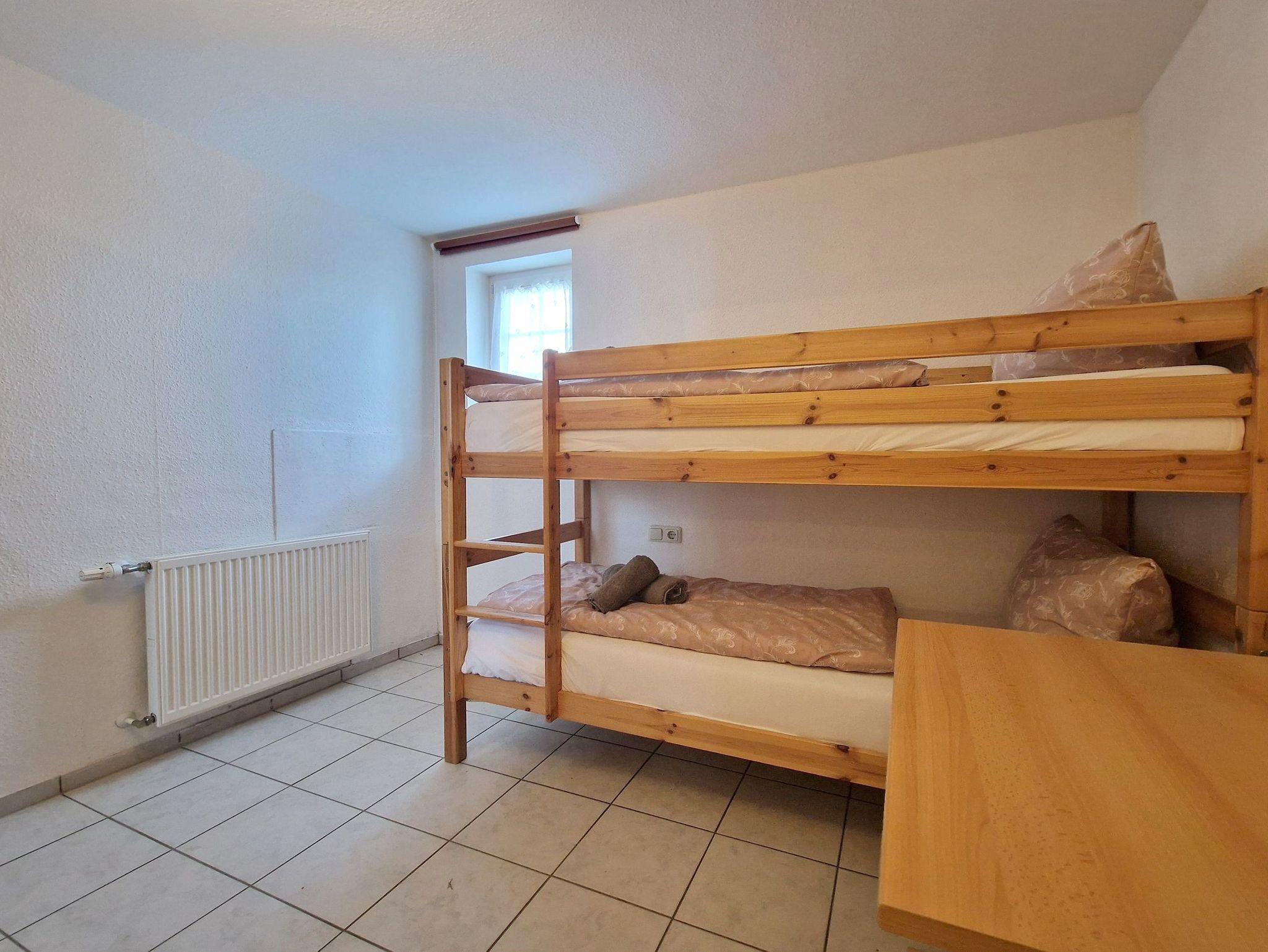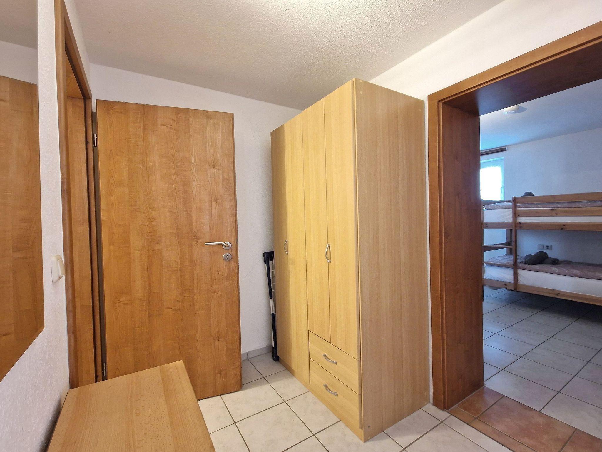 Diese Ferienwohnung mit Terrasse und separatem Kinderzimmer verfügt über einen Essbereich, Küchenzeile mit Geschirrspüler, einen Sitzbereich und ein Doppelbett. Im Kinderzimmer befindet sich ein Doppelstockbett.