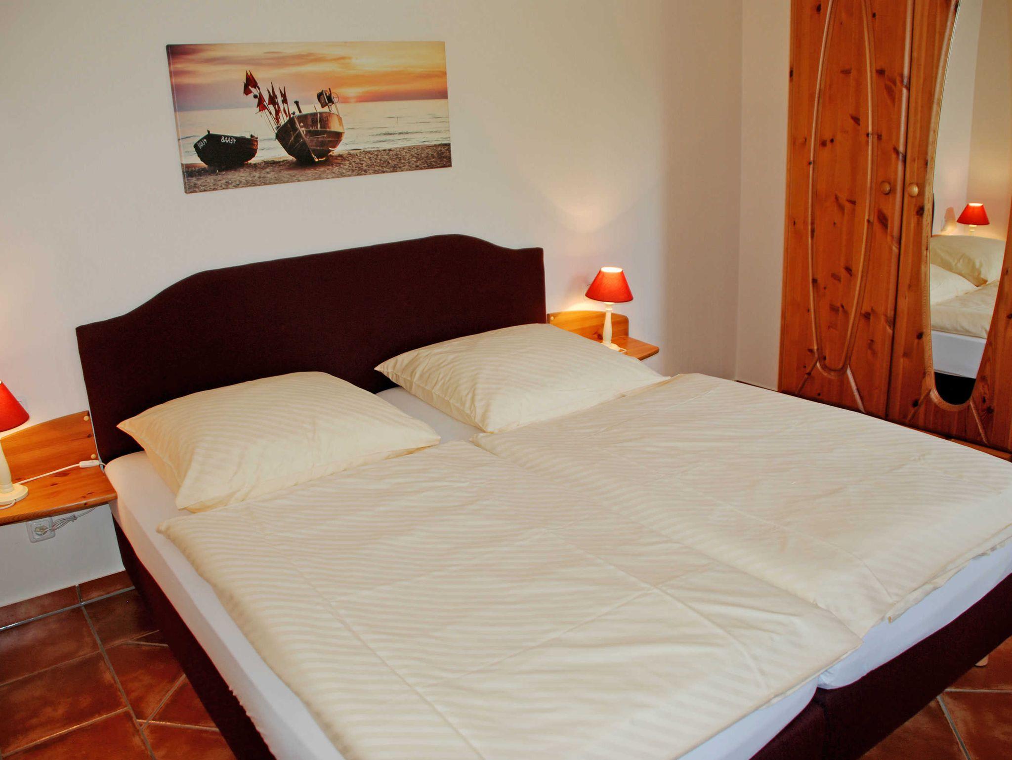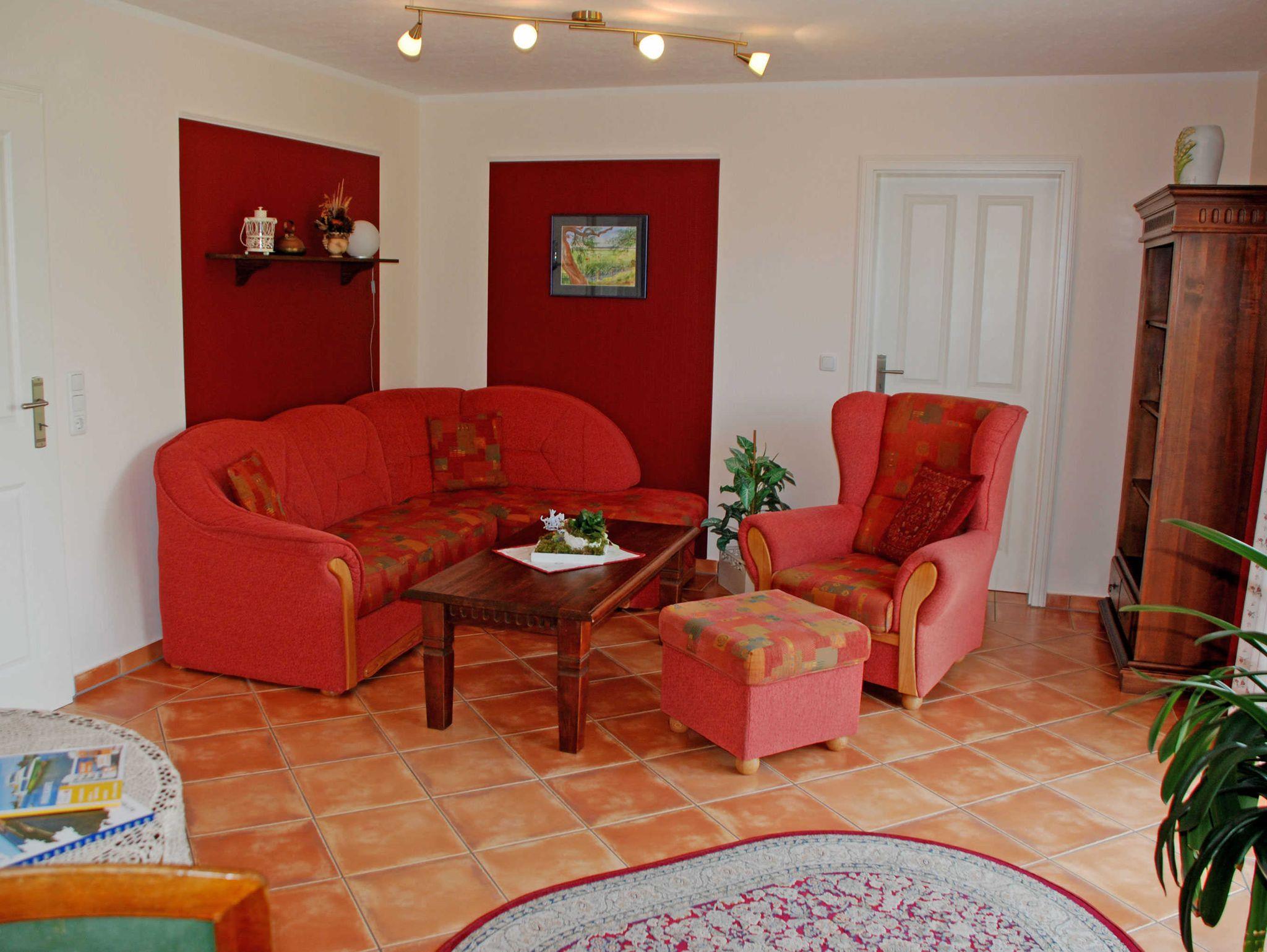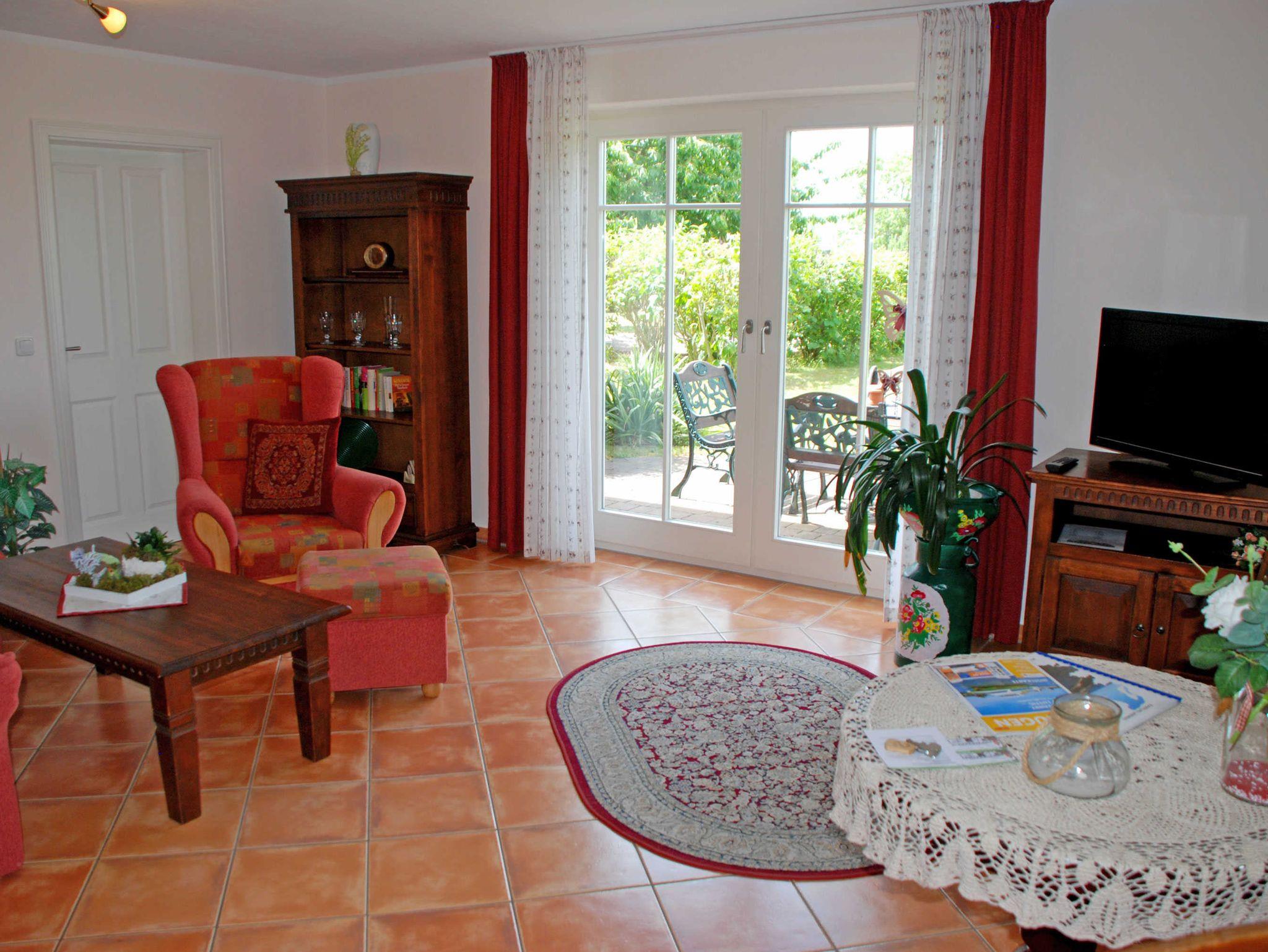 Dieses großzügig und sehr liebevoll eingerichtete Appartement verfügt über ein Wohnzimmer, eine separate Küche und zwei Schlafzimmer sowie Bad/WC und Flur. Es befindet sich im Erdgeschoss des Landhus und hat Richtung Süden zum Garten eine eigene Terrasse mit Tische und Stühlen. In den beiden Schlafzimmern stehen 2 Doppelbetten zur Verfügung. Im Wohnraum gibt es eine Couch mit Sitzgelegenheiten. Das Bad hat sowohl Dusche als auch Badewanne. Die komplette Einbauküche mit 4-Platten-Ceranherd, Backofen, Mikrowelle, Kaffeemaschine, Toaster, Wasser- und Eierkocher, Kühlschrank usw. lässt keine Wünsche offen. Bitte beachten Sie, Kleintiere sind in diesem Appartement nicht erlaubt!