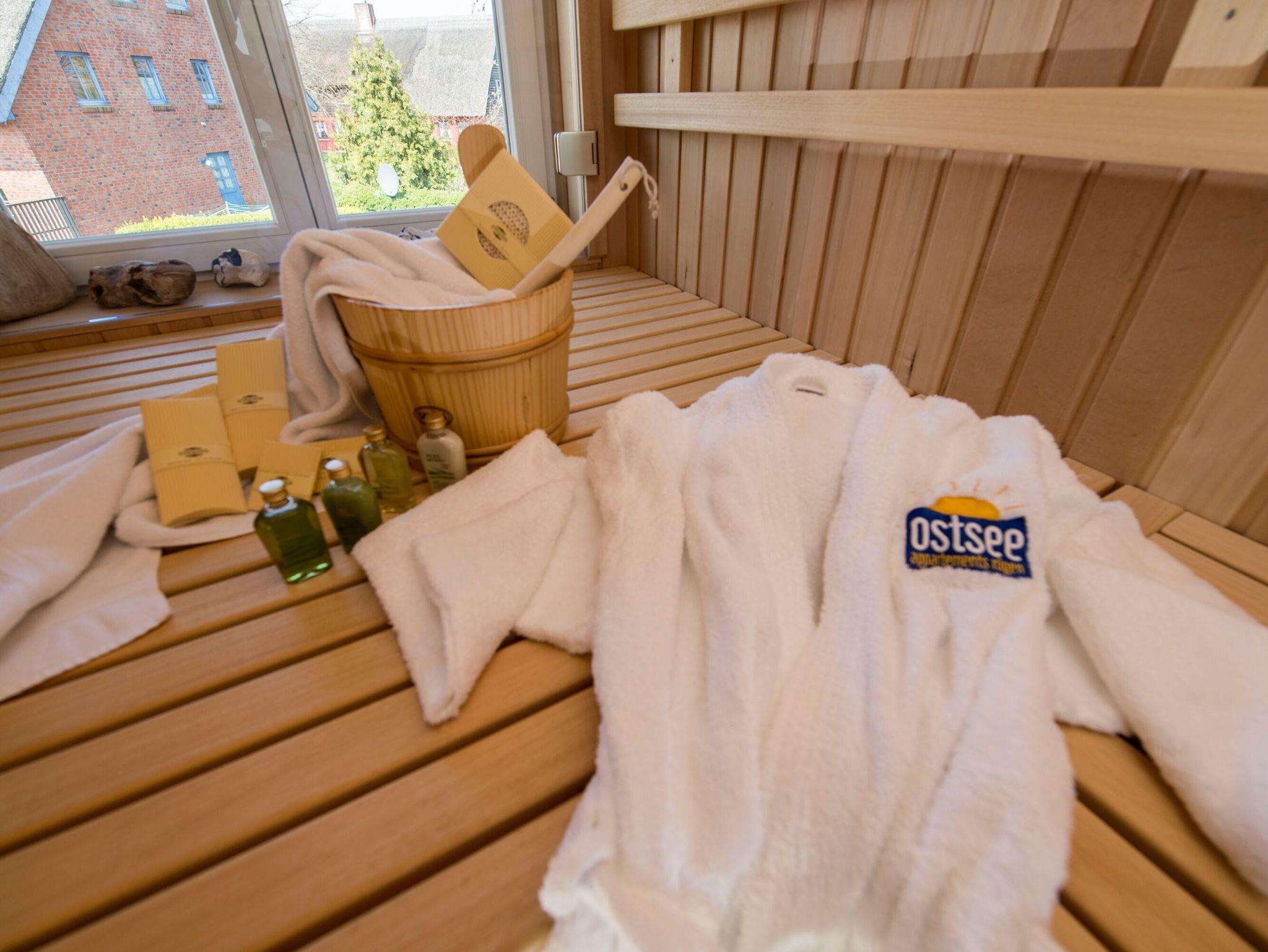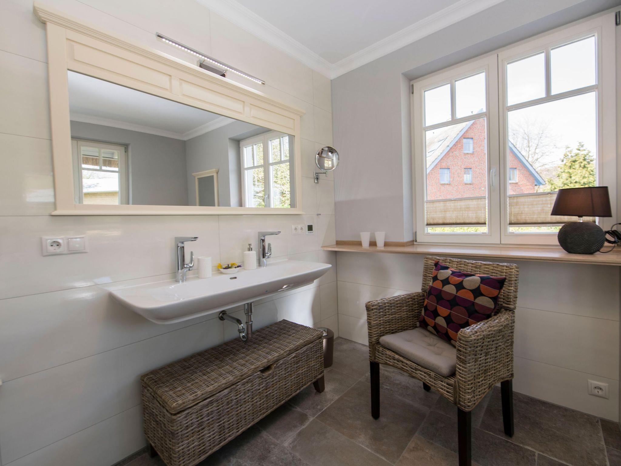Die großzügige, umlaufende Terrasse mit einem Strandkorb vervollständigt den hervorragenden Gesamteindruck. Die Balkon- bzw. Terrassenmöbel stehen saisonal - in der Regel von Mai bis Ende September - zur Verfügung.