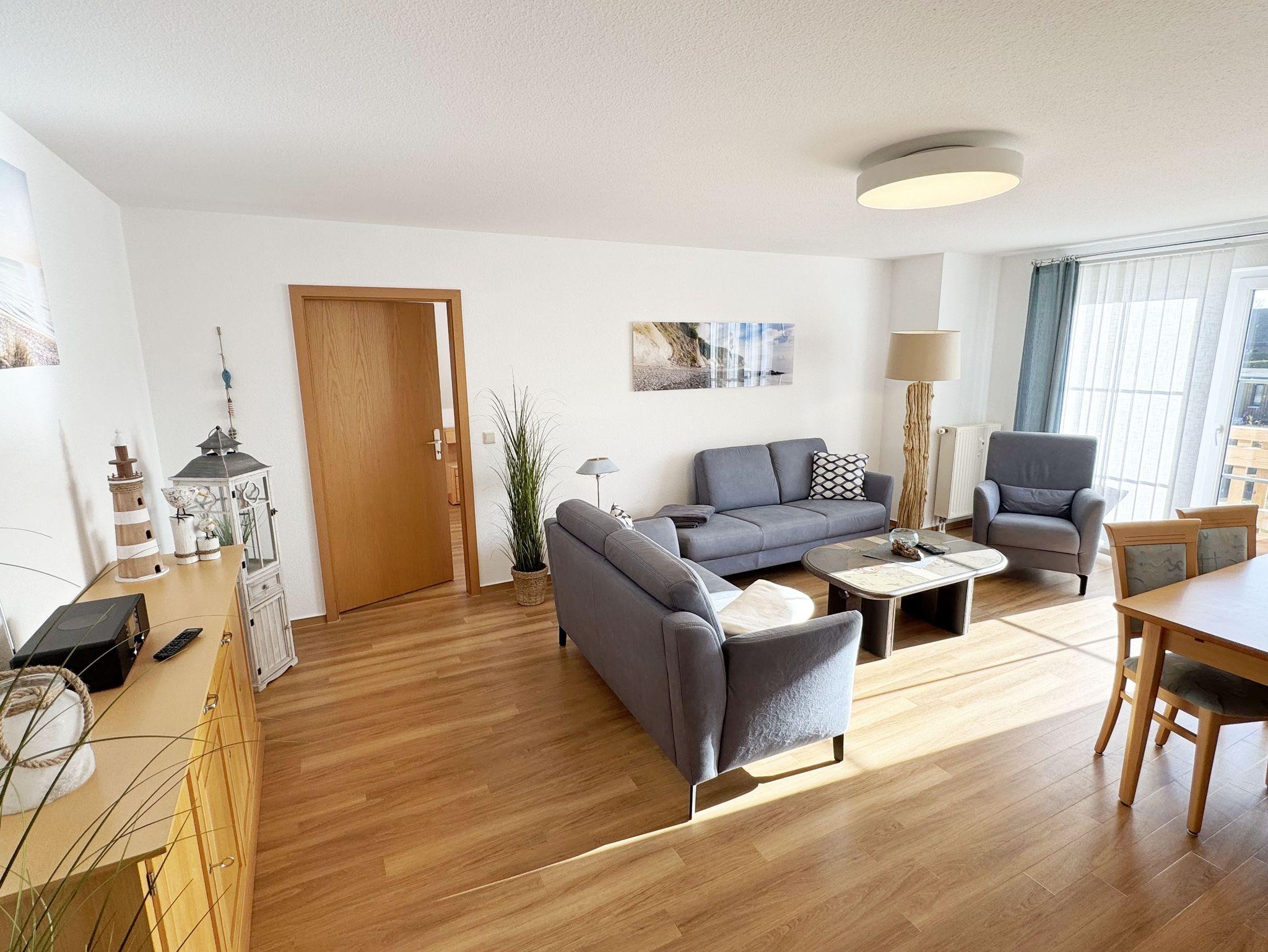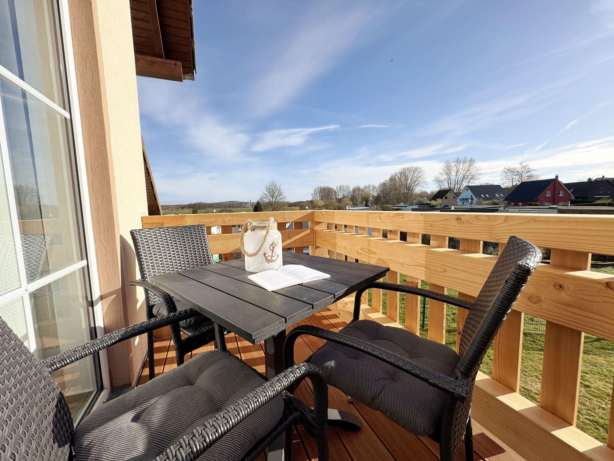 Moderne Ferienwohnung Fiete mit Balkon nahe Strand und Radwegen im Biosphärenreservat Mönchgut.