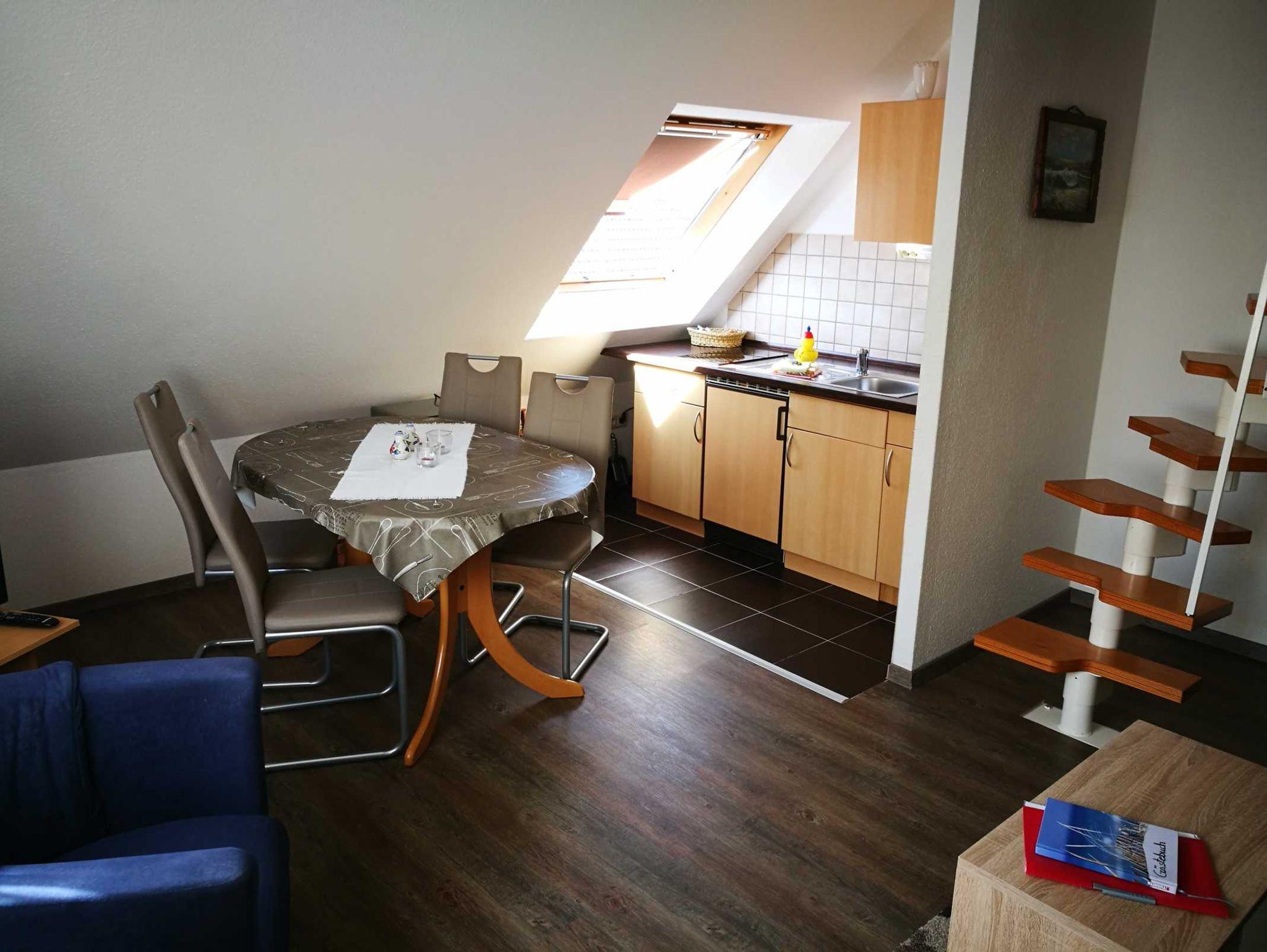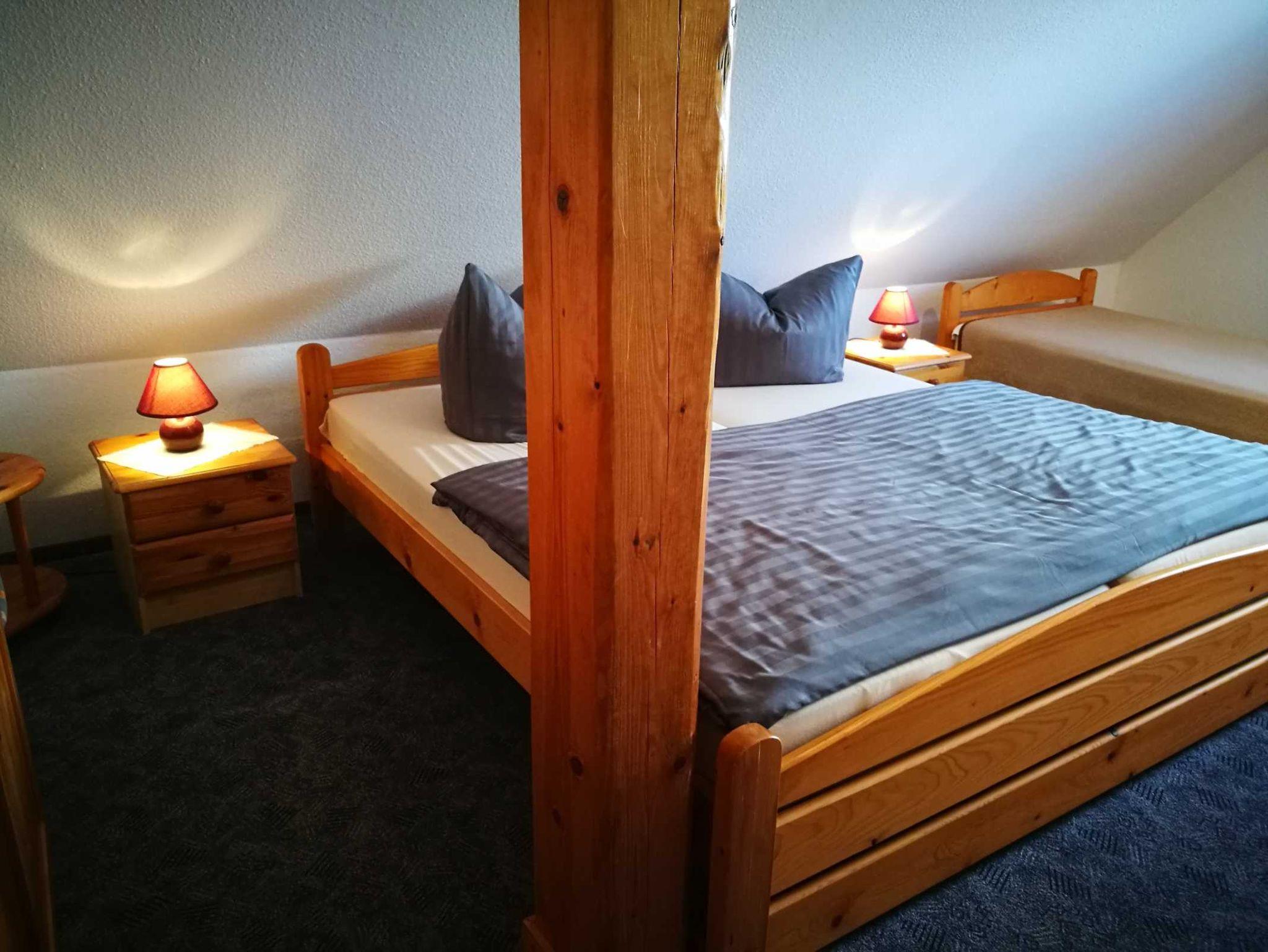 Unsere Ferienwohnungen befinden sich im Obergeschoß unseres Hauses. Fewo De Grote (groß) bietet Platz für bis zu 5 Personen. Sie besteht aus einem gemütlich eingerichteten Wohnzimmer mit der Sitzgruppe und dem Essbereich, dem Elternschlafzimmer mit Doppelbett und einem Einzelbett, sowie dem zweiten Schlafzimmer im Spitzboden mit zwei Einzelbetten, Bad mit DU/WC. Eine Terrasse mit der Möglichkeit zum Grillen steht Ihnen auch zur Verfügung.