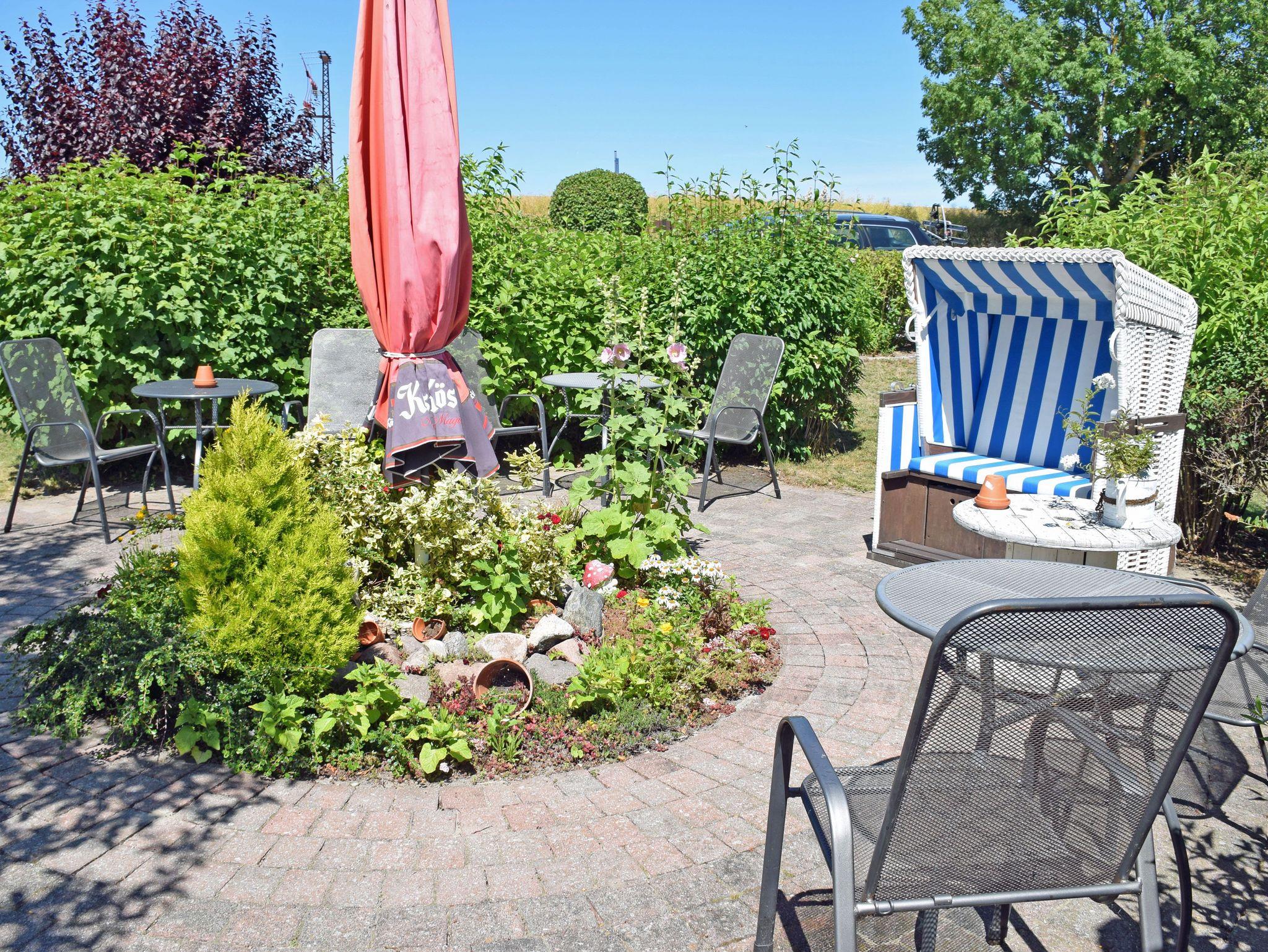Das gesamte großflächige Grundstück steht dem Urlauber zur Verfügung und wurde von uns bis ins Detail liebevoll gestaltet. Auch für Familien mit Kindern gibt es viele Angebote: Piratenboot, Wippe, Tischtennisplatte, Fußball und vieles mehr. Die Appartements im Untergeschoß verfügen über eine eigene Terrasse mit Tisch und Stühlen, zu der man durch die Verandatür gelangt. Für die Gäste aus dem oberen Stockwerk sind ausreichend gemütliche Sitzecken im Garten eingerichtet. Ist man einmal strandmüde, stehen hier auf dem Rasen eigene Strandkörbe für das Sonnenbad am Landhus zur Verfügung. Hier können Sie in einer ruhigen Ecke des Grundstücks, mit Blick auf den Bodden und die Hügelkette des Großen Zicker, gut entspannen.