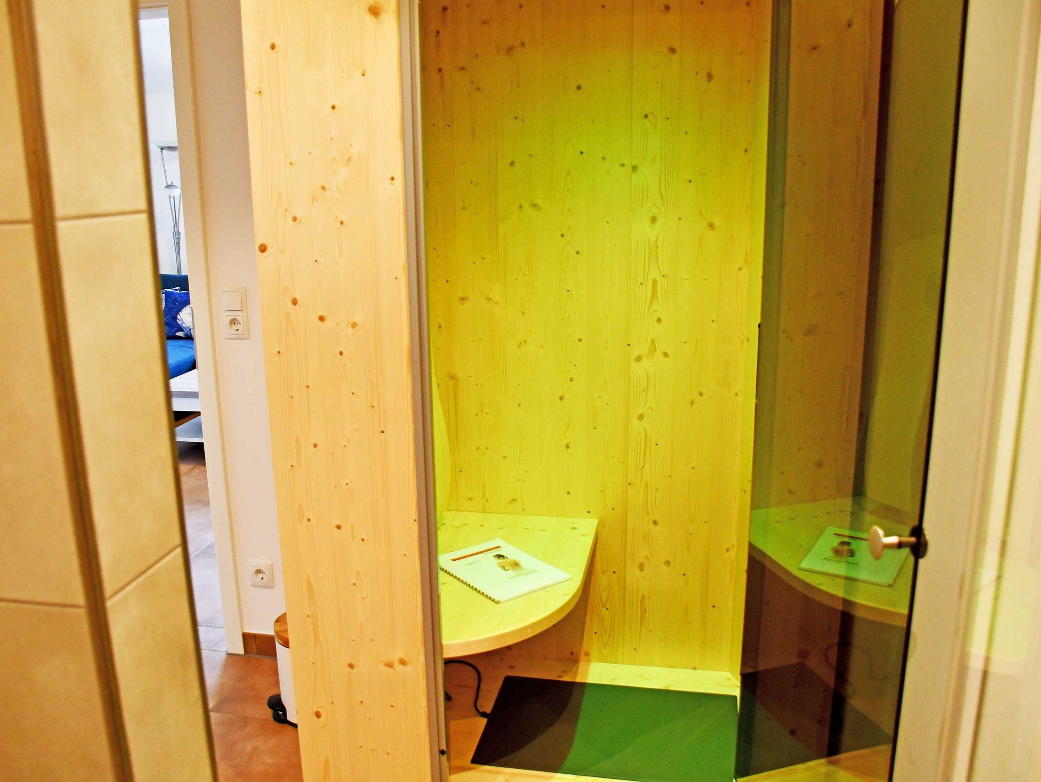 Die gegen Gebühr nutzbare Infrarotsauna im Keller des Hauses sorgt nicht nur im Winter für angenehme Entspannung. Vorher können Sie kostenlos den Fitnessraum nutzen, um schon einmal vorab so richtig ins Schwitzen zu kommen.