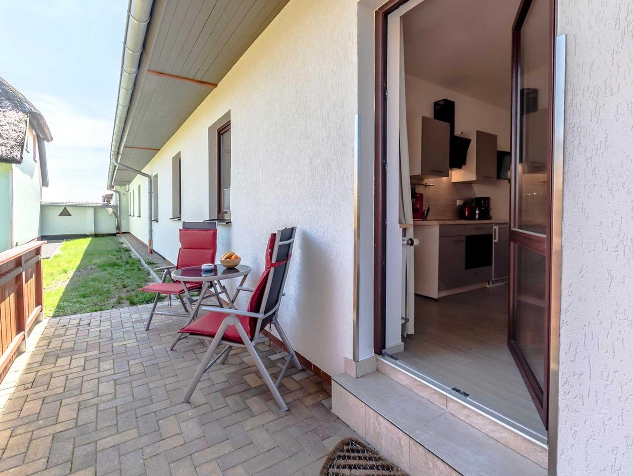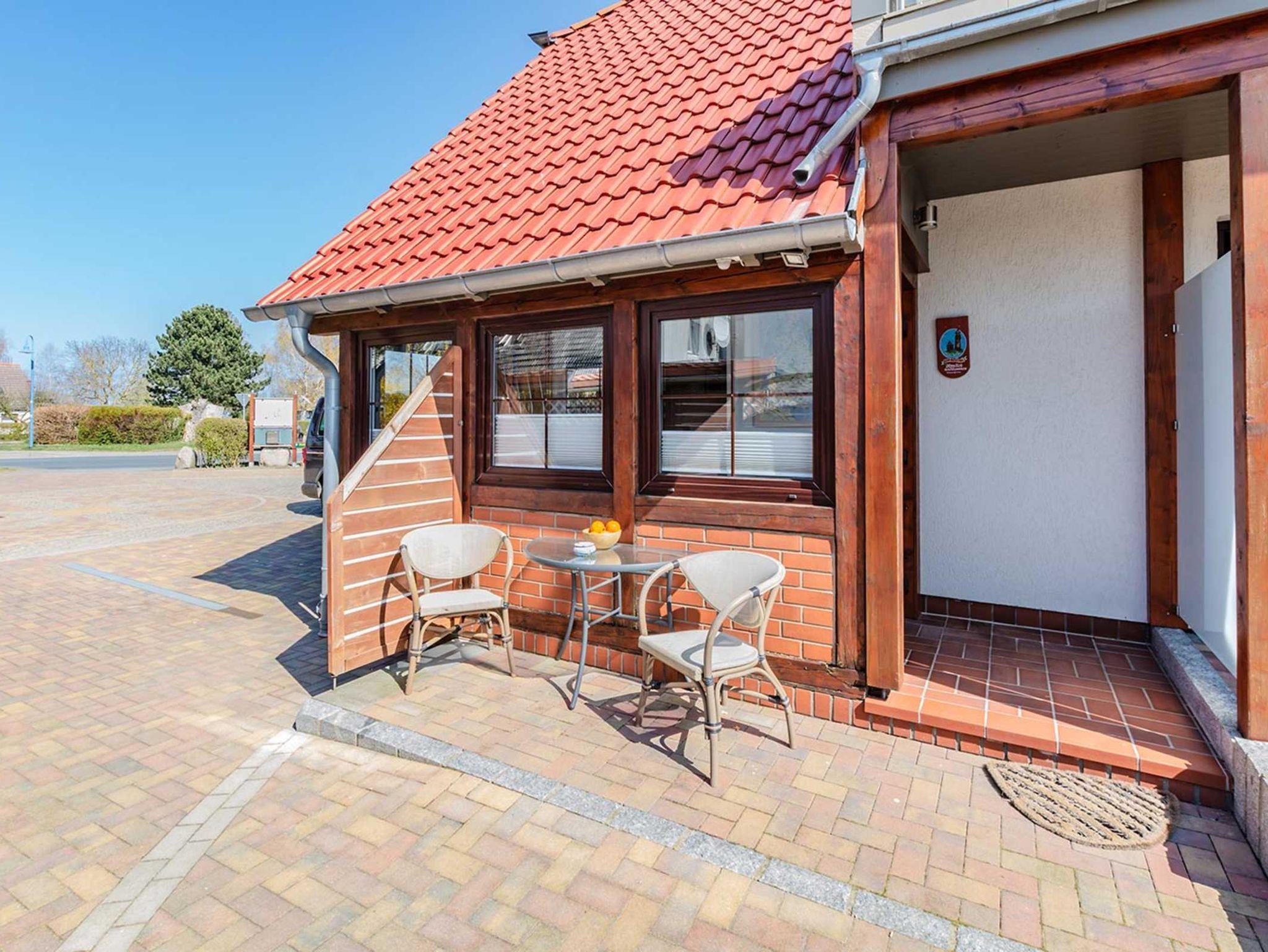 Auf einer kleinen Terrasse vor Ihrer Wohnung können Sie den Ausblick zum Deich genießen. Das WLAN ist ebenso kostenfrei wie ein Parkplatz am Haus.