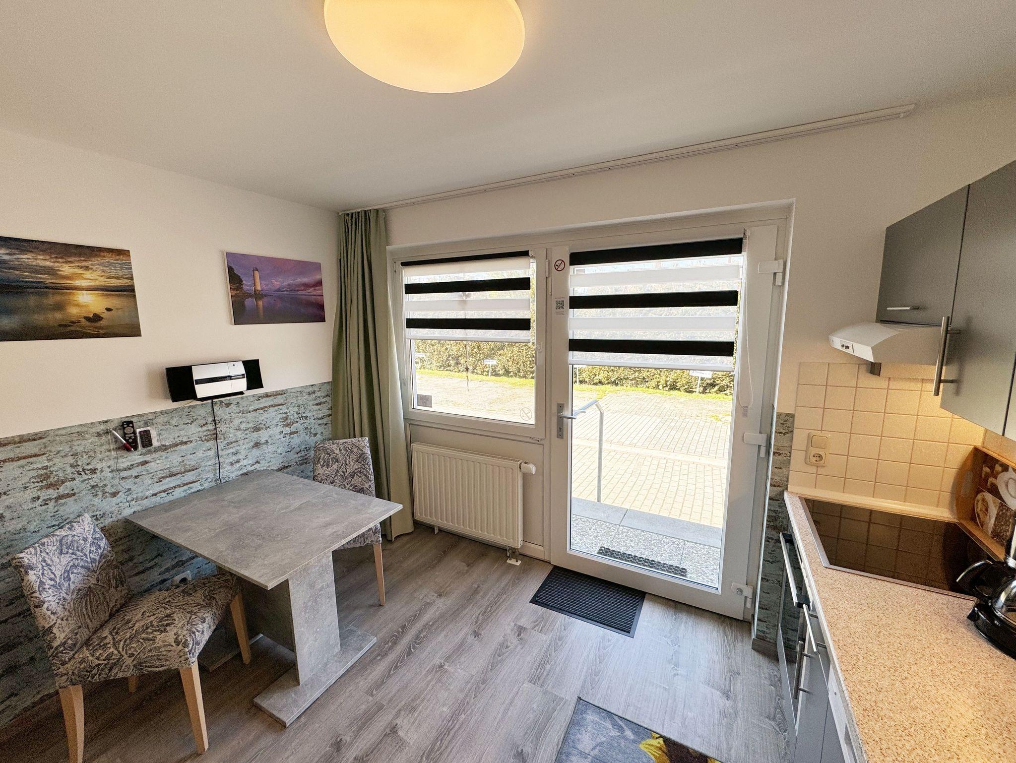 Die Nichtraucherwohnung Nr. 04 im Haus Inselperle bietet mit Ihren ca. 30 m² Platz für max. 2 Erwachsene. Der großzügige Koch- und Essbereich, welchen Sie über den Eingang betreten, ist ausgestattet mit einer vollständig eingerichteten Küchenzeile mit 4 Zonencerankochfeld, Geschirrspüler, Backofen, Kühlschrank mit Gefrierfach, Toaster, Mikrowelle, Wasserkocher, Kaffeemaschine, Padmaschine (Dolce Gusto) sowie diverse kleine Küchenhelfer. Ein angrenzender Esstisch rundet den Bereich ab. Über den kleinen Flur erreichen Sie das innenliegende Badezimmer welches mit WC, Dusche, Waschtisch mit Unterschrank, Fön, Kosmetikspiegel, großem Wandspiegel, Handtuchheizkörper und einem Ablageregal ausgestattet ist. Im daran folgenden Wohn- /Schlafbereich, welcher komplett mit einem hochwertigen Teppich verlegt wurde, erwartet Sie ein großes Doppelbett mit Einzelmatratzen (1,80 m x 2,10 m), Nachttischablagen mit Leselampen sowie einen geräumigen Kleiderschrank mit Safe für Ihre Wertsachen. Vom Bett aus erwartet Sie ein traumhafter Blick direkt über die großzügige Freifläche des Hauses aufs Wasser. Für einen erholsamen Schlaf sorgen die Verdunklungsgardinen. Zusätzlich steht Ihnen hier ein Sideboard, Stehlampe und eine kleine Sitzmöglichkeit zur Verfügung. Ein Smart-TV (43 Zoll), Mini-Stereoanlage mit CD-Player, MP3, USB und Bluetooth mit NFC sowie ein inklusiver WLAN-Anschluss runden den technischen Bereich ab. Genießen Sie Ihr Frühstück auf Ihrer bestuhlten Terrasse bei herrlichem Sonnenschein oder die Abende bei einem gemütlichen Grillabend mit dem zur Verfügung stehenden Standgrill. Ein Sonnenschirm komplettiert Ihre Terrasse (Süd/Ost). Bitte beachten Sie jedoch, dass das Grillen auf den Holzterrassen aus brandschutztechnischen Gründen nicht erlaubt ist. Hier finden Sie aber ausreichend Platz auf dem Außengelände, welches auch über einen kleinen Kinderspielplatz, Sandkiste und einer Tischtennisplatte verfügt. Haustiere sind nicht erlaubt. Sollte Ihnen doch einmal Strandsand ins Haus geraten oder etwas runterfallen, ist jede Wohnung mit einem Staubsauger und anderen Reinigungsgeräten ausgestattet. Ihre mitgebrachten Fahrräder (max. 2 ) können Sie in der Fahrradbox 2 sicher verschließen. Die Grünfläche des Hauses lädt zu geselligen Abenden mit weiteren Hausgästen ein. Ein PKW-Stellplatz (Nr.04) steht Ihnen inklusive am Haus zur Verfügung. Die Erstausstattung eines Wäschepaketes (komplette Bettwäsche, 1 Duschhandtuch, 1 kleines Handtuch, 1 Duschvorleger) können Sie bis 14 Tage vor Anreise gegen einen Aufpreis dazu buchen oder durch eigene ergänzen. 1 Geschirrhandtuch gehört zu jedem Aufenthalt dazu.