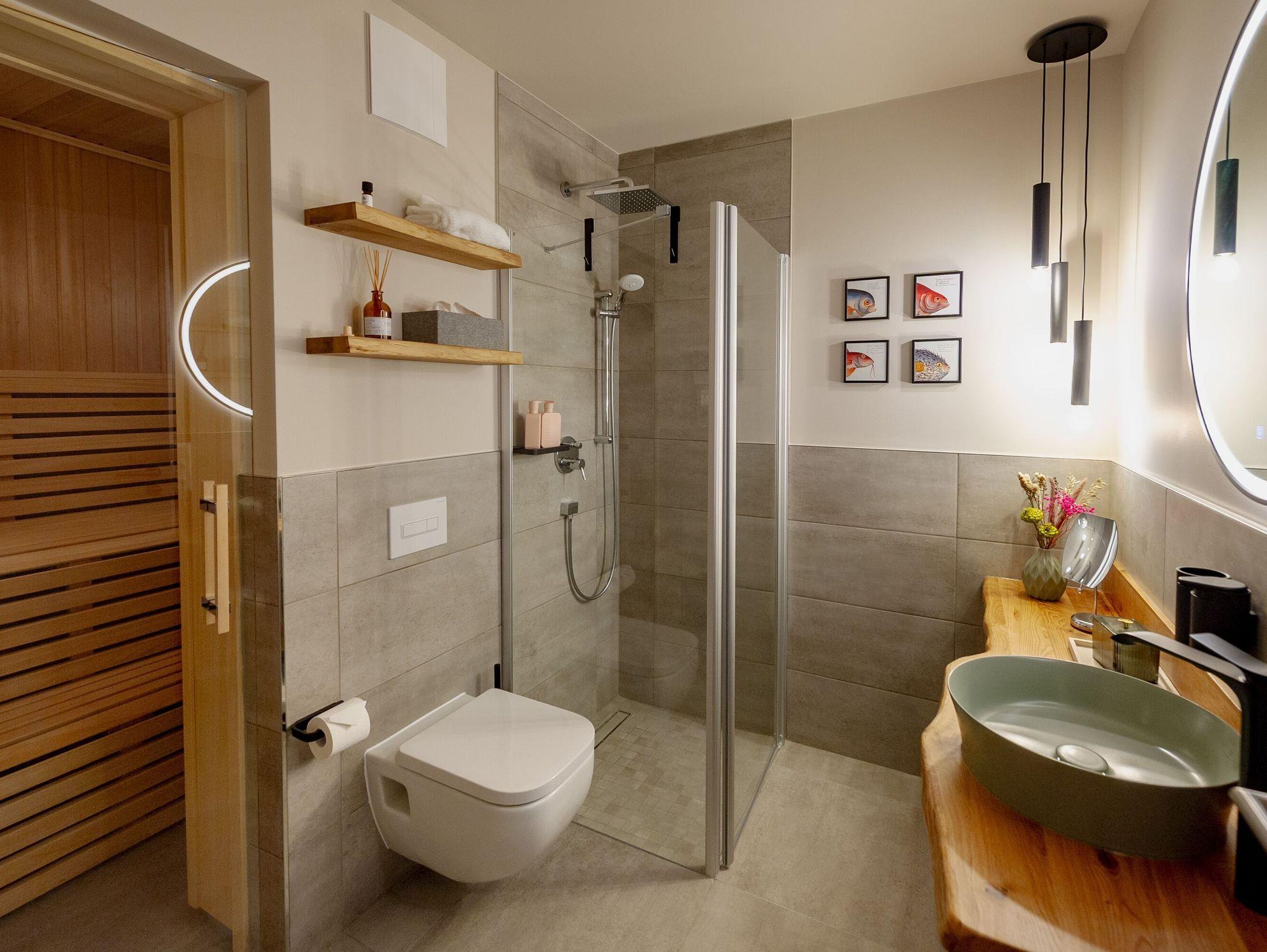 Neben dem unverbauten Ausblick auf den Bodden und der individuellen, hochwertigen Einrichtung gehören insbesondere Annehmlichkeiten wie ein Kamin und die private Sauna zu den besonderen Pluspunkten Ihres Urlaubsdomizils. So lässt es sich hier auch im Frühjahr, Herbst und Winter ganz wunderbar aushalten, zumal die Wohnung über W-LAN und einen Parkplatz nebst privatem Fahrradabstellraum in der hauseigenen Tiefgarage (max. Zufahrtshöhe 1,90 m) verfügt.