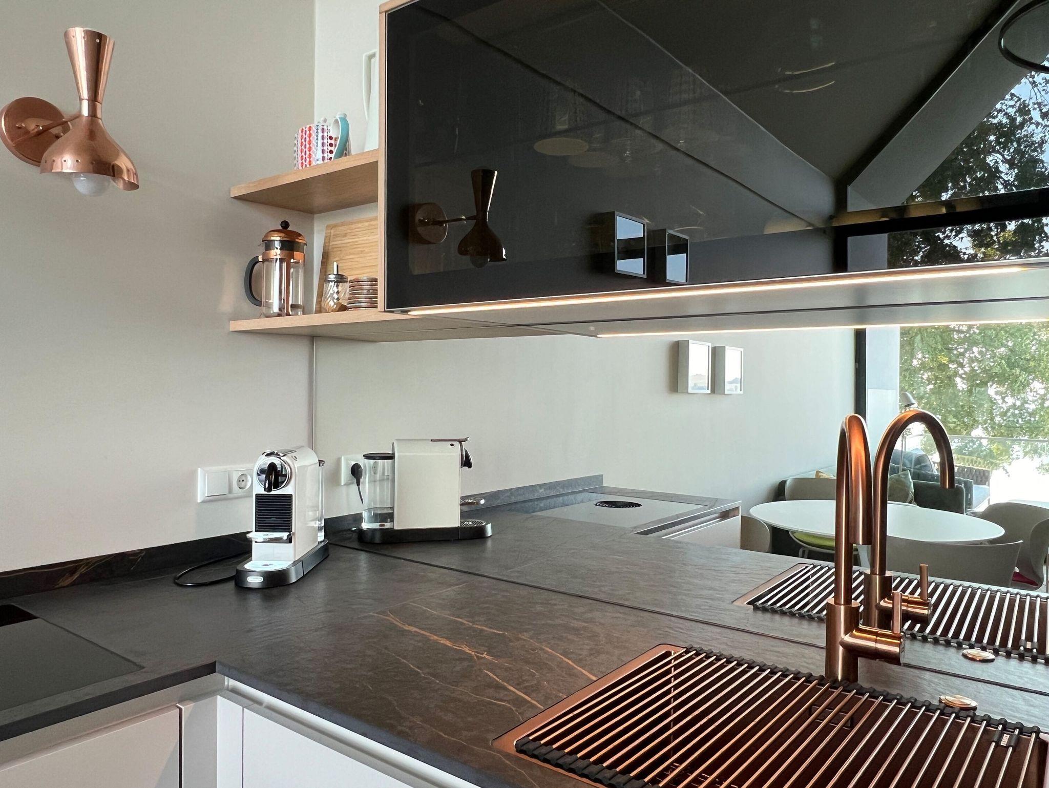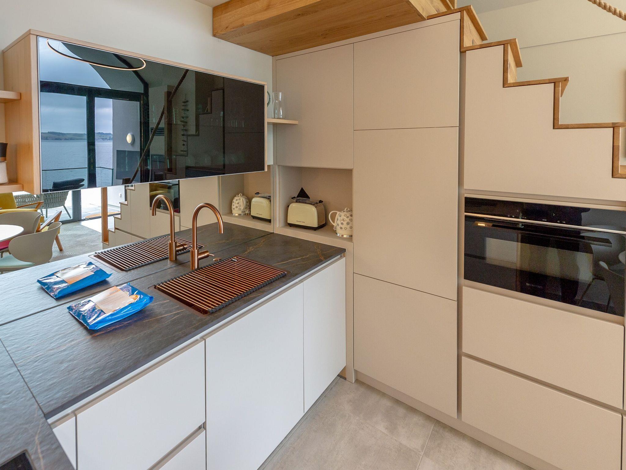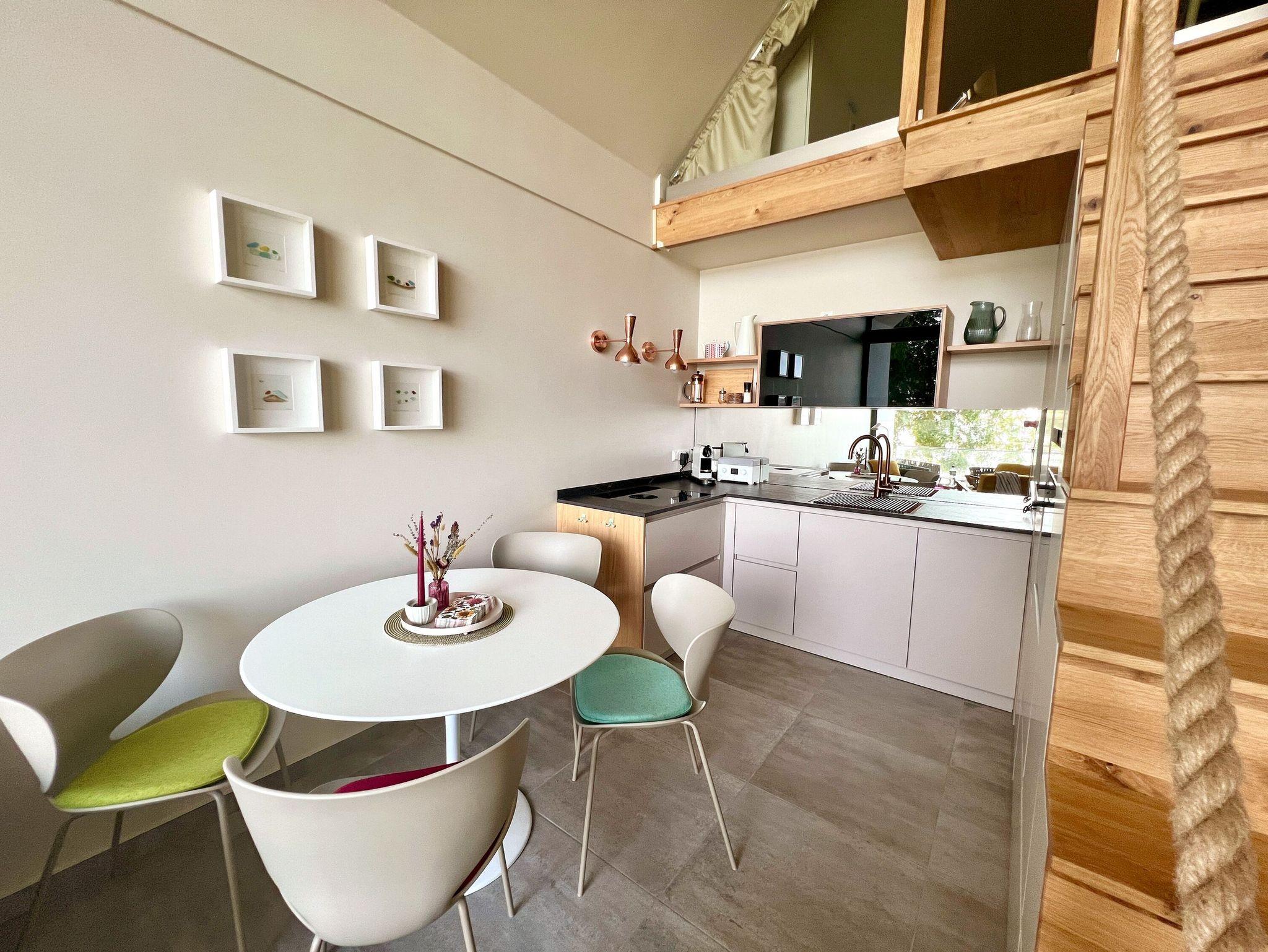 Ihr Zuhause auf Zeit besteht aus einem kombinierten Wohn-/Esszimmer mit integrierter Küche, einem Schlafzimmer mit einem 1,80m breiten Boxspringbett, einer offenen, abdunkelbaren Galerie mit ausklappbarem 1,60m breitem Boxspring-Schlafsofa und Schreibtisch, sowie einem Badezimmer mit Dusche/WC und Sauna, einem separaten Schrankzimmer und einer Terrasse mit Lounge-Möbeln. Sie erreichen die Wohnung im Obergeschoss des Hauses über ein paar Stufen direkt von der Straße aus. Die moderne Einbauküche ist mit allem ausgestattet, damit Sie sich bequem selbst bekochen können, Wellenrauschen inklusive.