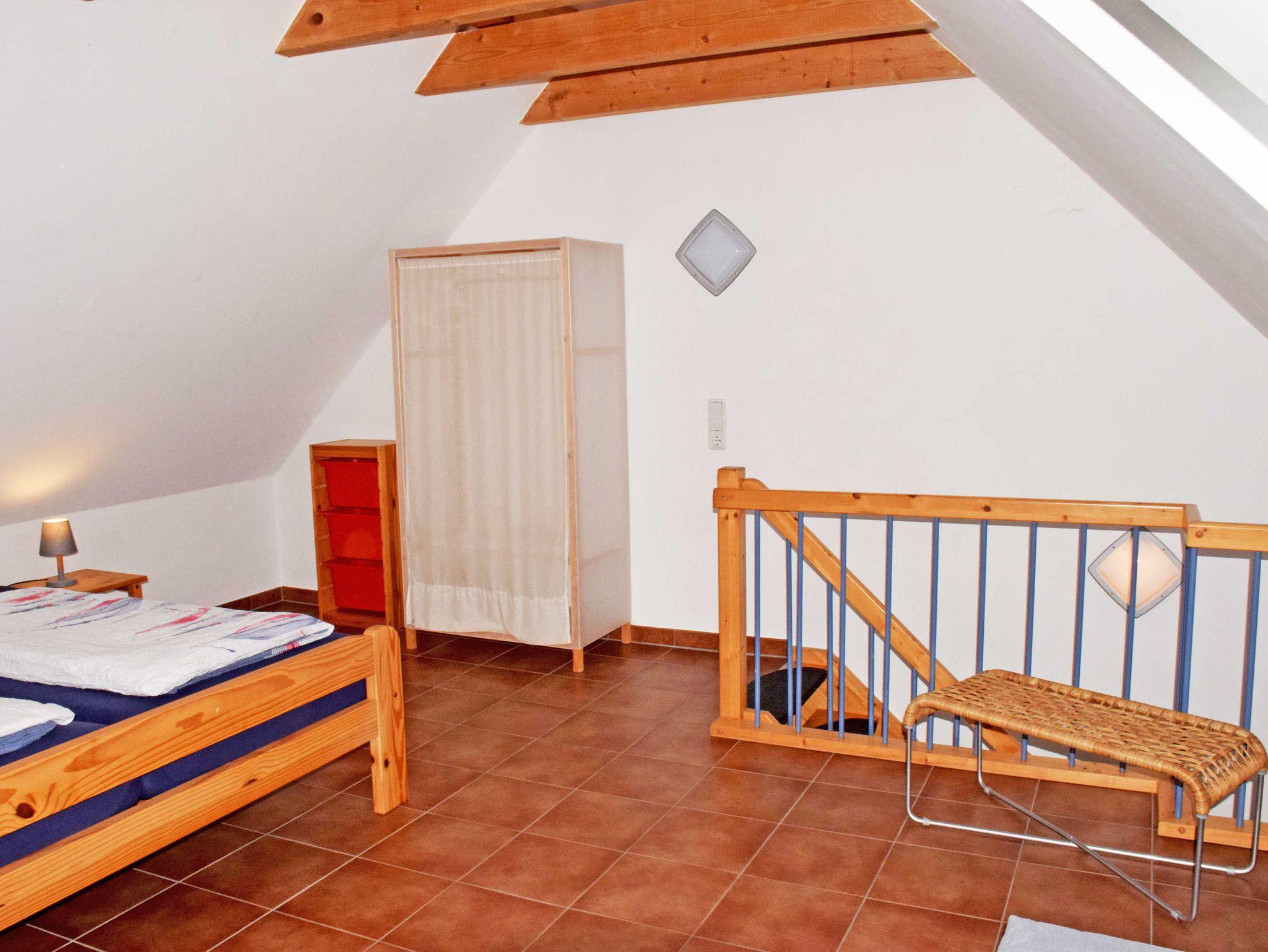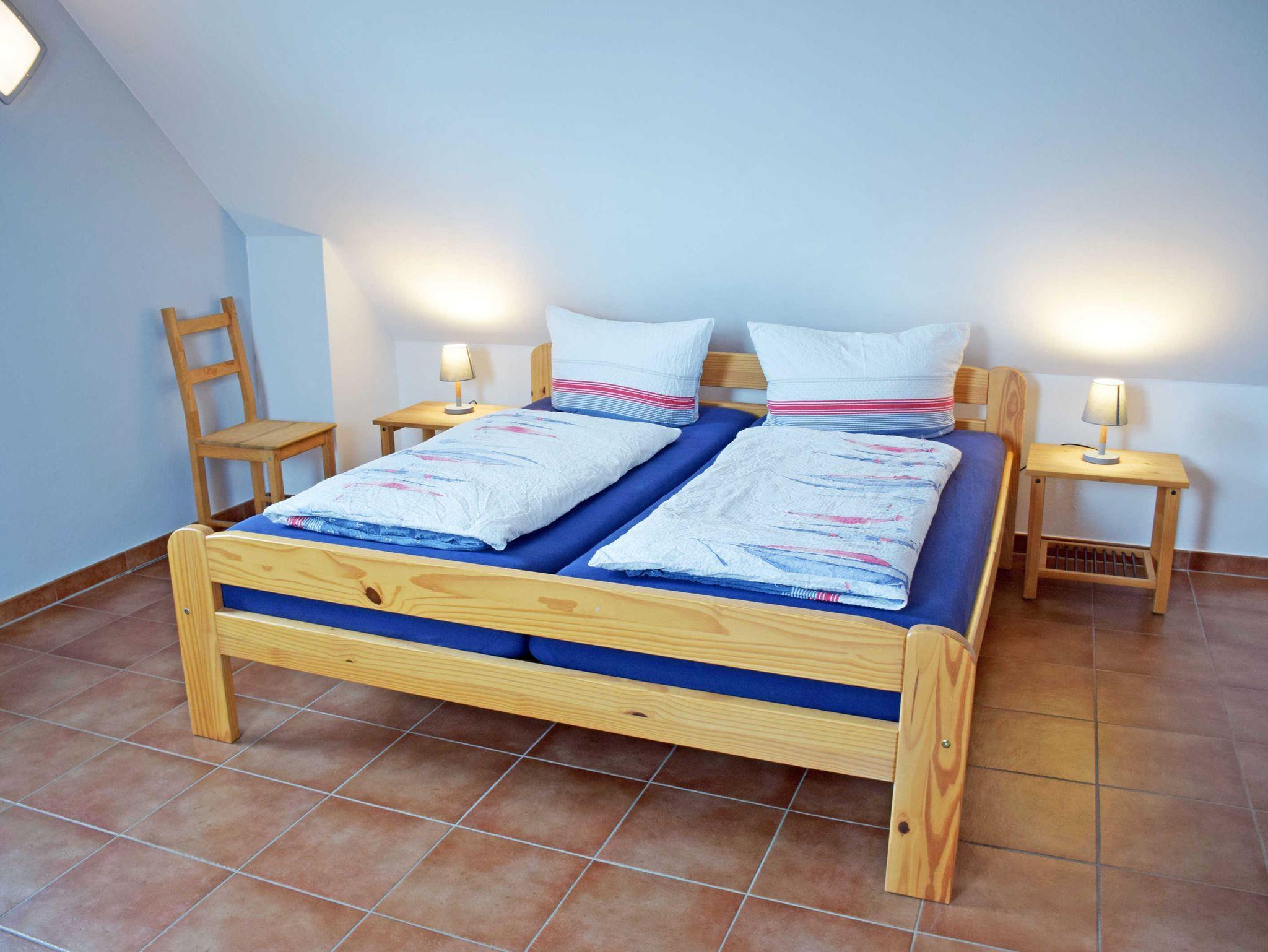 Das Schlafzimmer im Obergeschoss verfügt über ein bequemes Doppelbett mit Nachttischen und Leselampen sowie Fliegengitter. Ein Kinderbettchen sowie ein Hochstuhl stehen Ihnen auf Anfrage bereit.