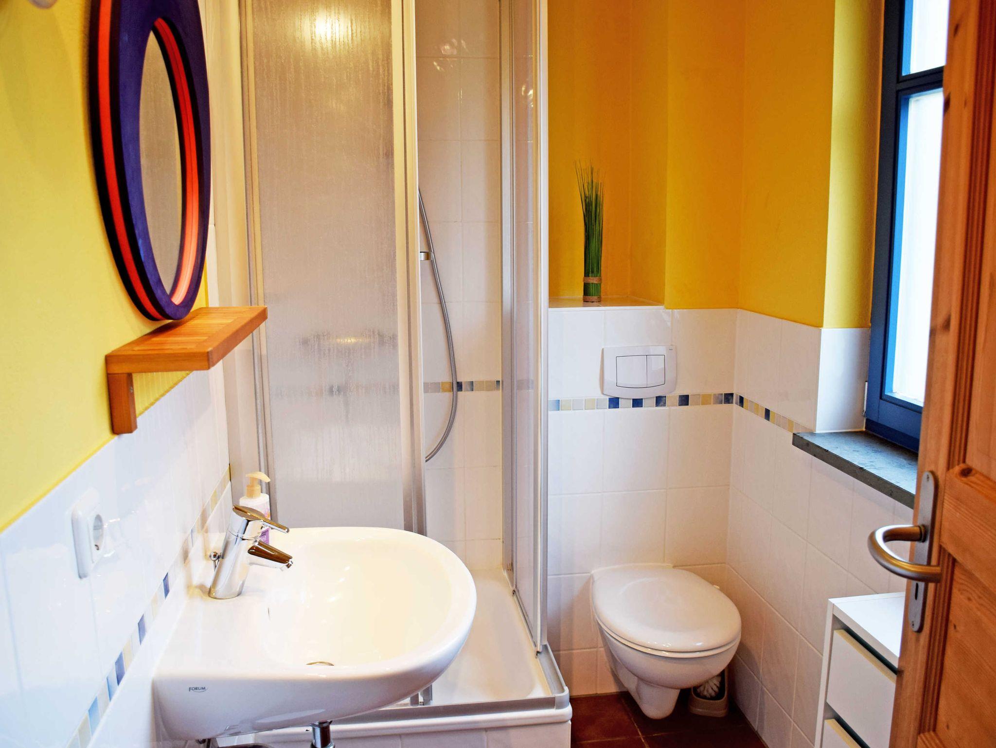 Das schöne Bad ist mit einem Fenster, Dusche, WC sowie einem Waschtisch ausgestattet.