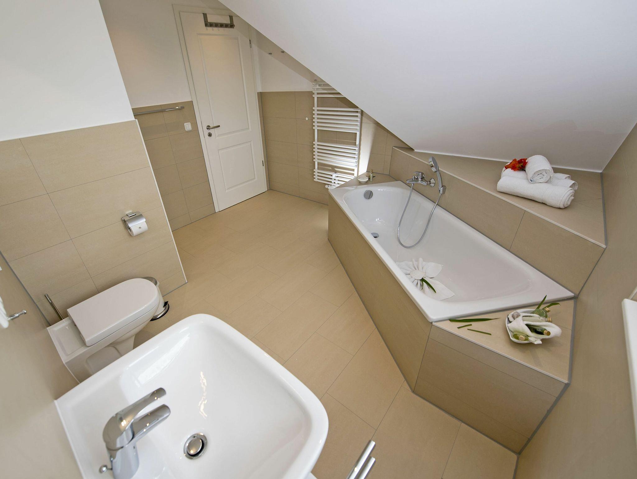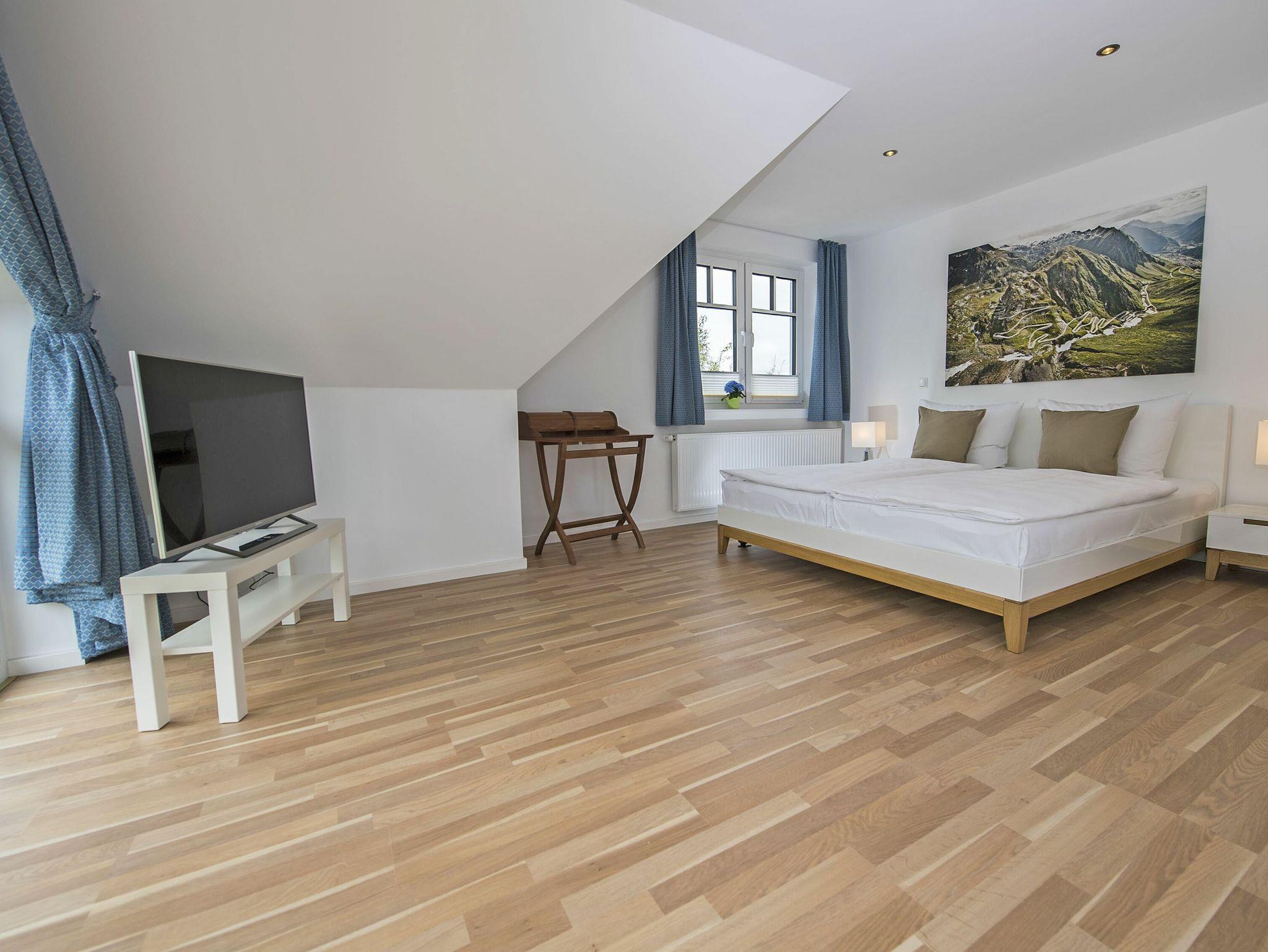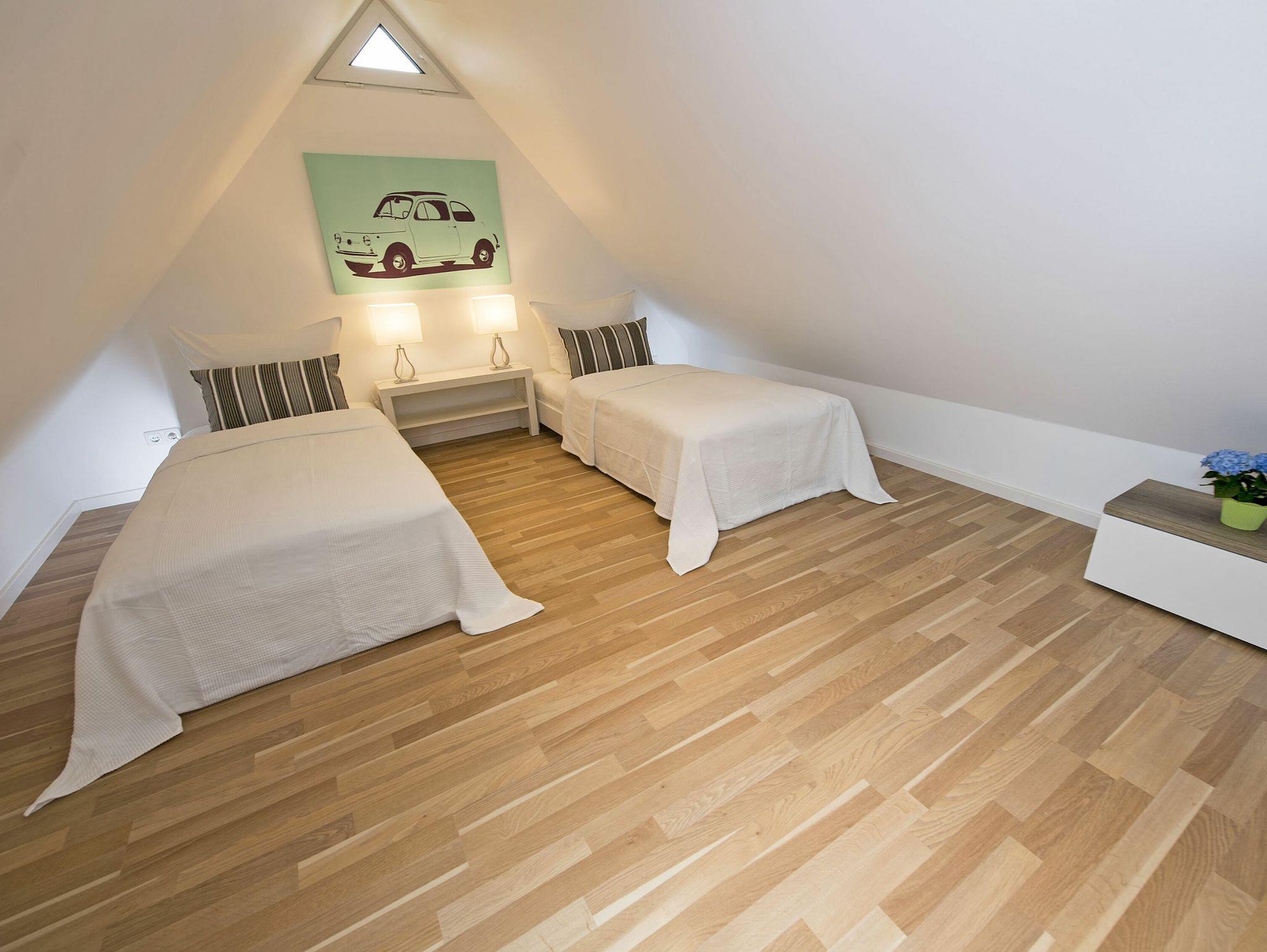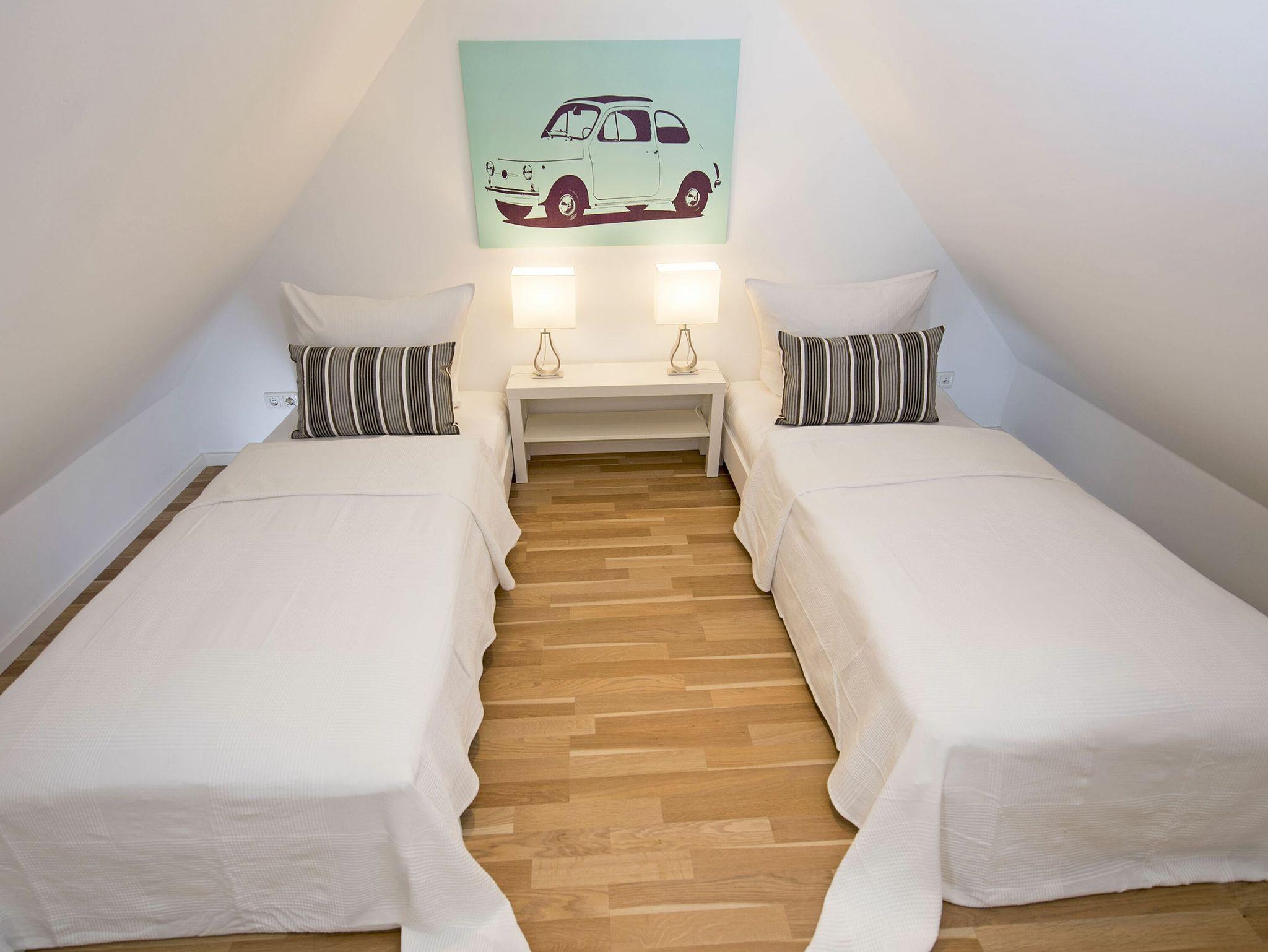 Die vierte Schlafgelegenheit mit zwei einzeln stehenden Betten (90 x 200 cm) befindet sich im ausgebauten Spitzboden des Hauses und ist ideal für Kinder geeignet.