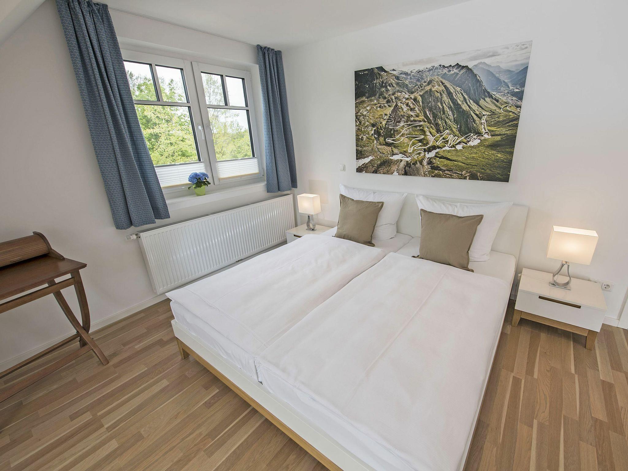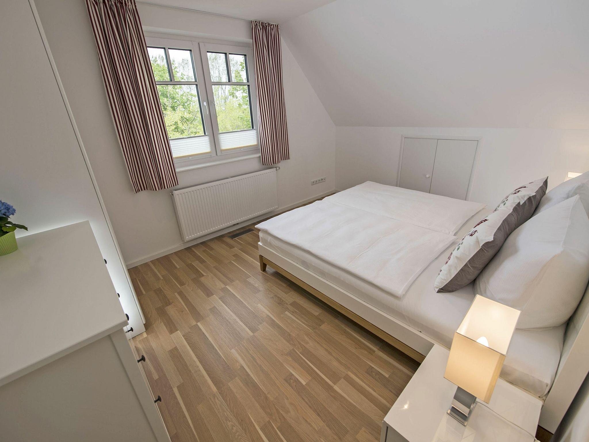 Im Obergeschoss des Hauses erwarten Sie Ihre drei Schlafzimmer. Eines der Schlafzimmer verfügt über ein Doppelbett (140 x 200 cm) mit durchgehender Matratze. In den anderen beiden Schlafzimmern befindet sich jeweils ein Doppelbett (180 x 200 cm) mit zwei einzelnen Matratzen. Einen zusätzlichen Flachbild-TV finden Sie in einem der größeren Schlafzimmer. Alle Schlafräume können selbstverständlich verdunkelt werden. Auf dieser Ebene befinden sich auch ein geräumiges Badezimmer mit Dusche, Badewanne, WC, Handtuchtrockner und Fön sowie ein weiteres Gäste-WC.