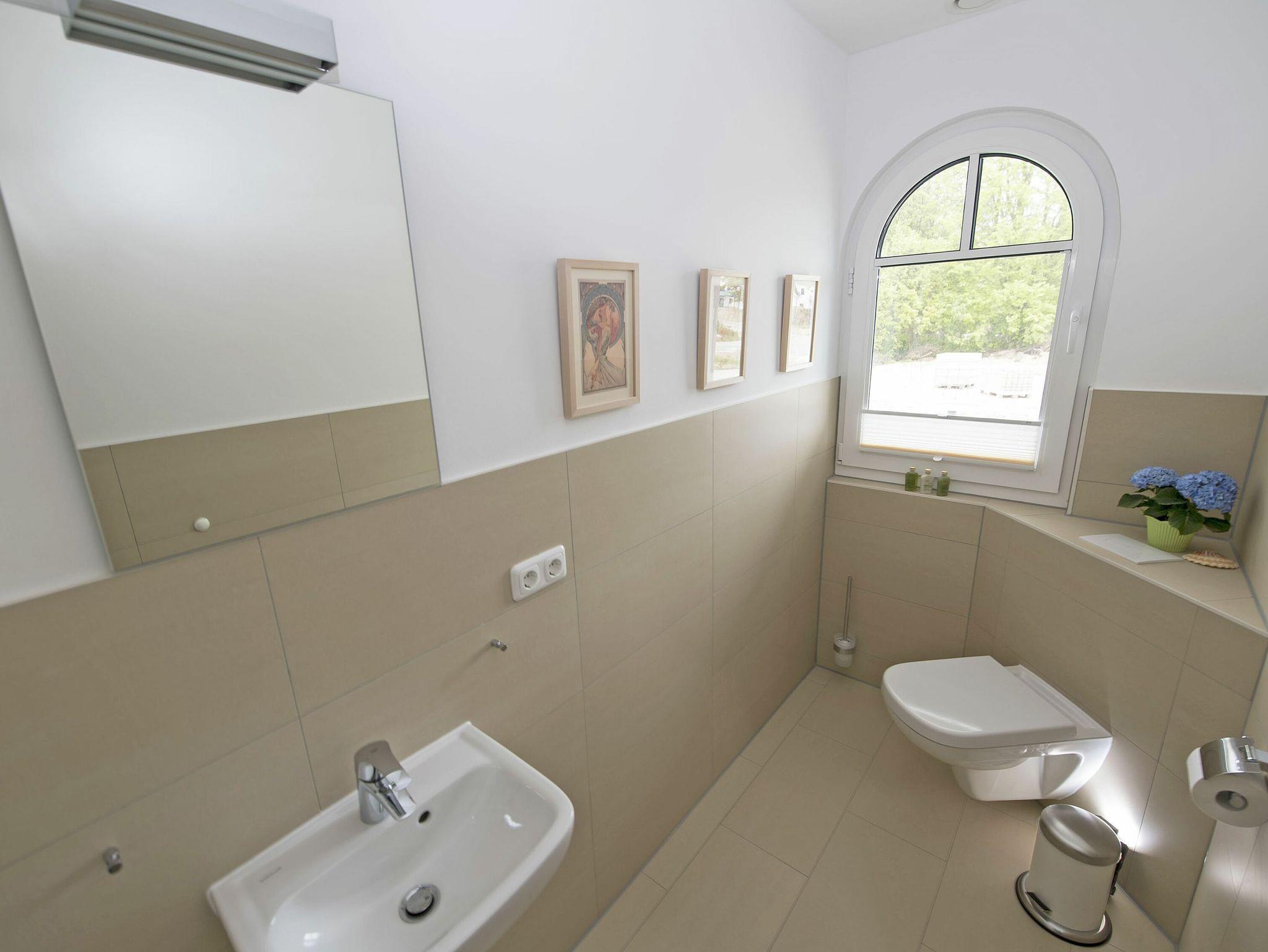Im Erdgeschoss befinden sich ebenfalls Ihre ganz private Sauna mit Dusche, ein Gäste-WC, der Hauswirtschaftsraum mit Waschmaschine und Trockner sowie ein Abstellraum mit Haushalts- und Bügelutensilien. Das gesamten Erdgeschoss ist mit einer Fußbodenheizung versehen.