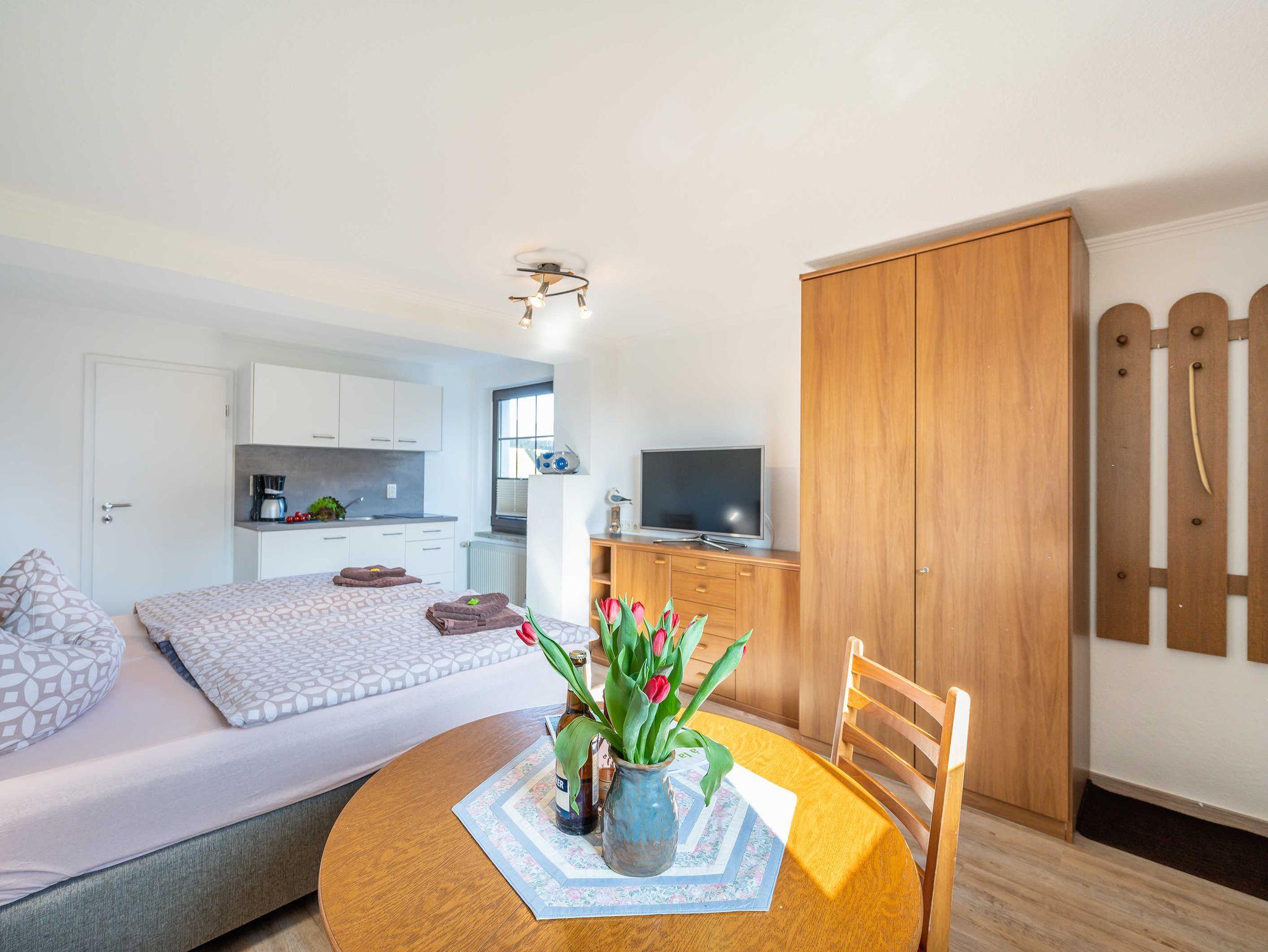 In unserem Appartement steht Ihnen ein kombinierter Wohn- Schlafraum mit einer Pantryküche und ein Duschbad zur Verfügung. Sie haben einen separaten Eingang und eine möblierte Terrasse.