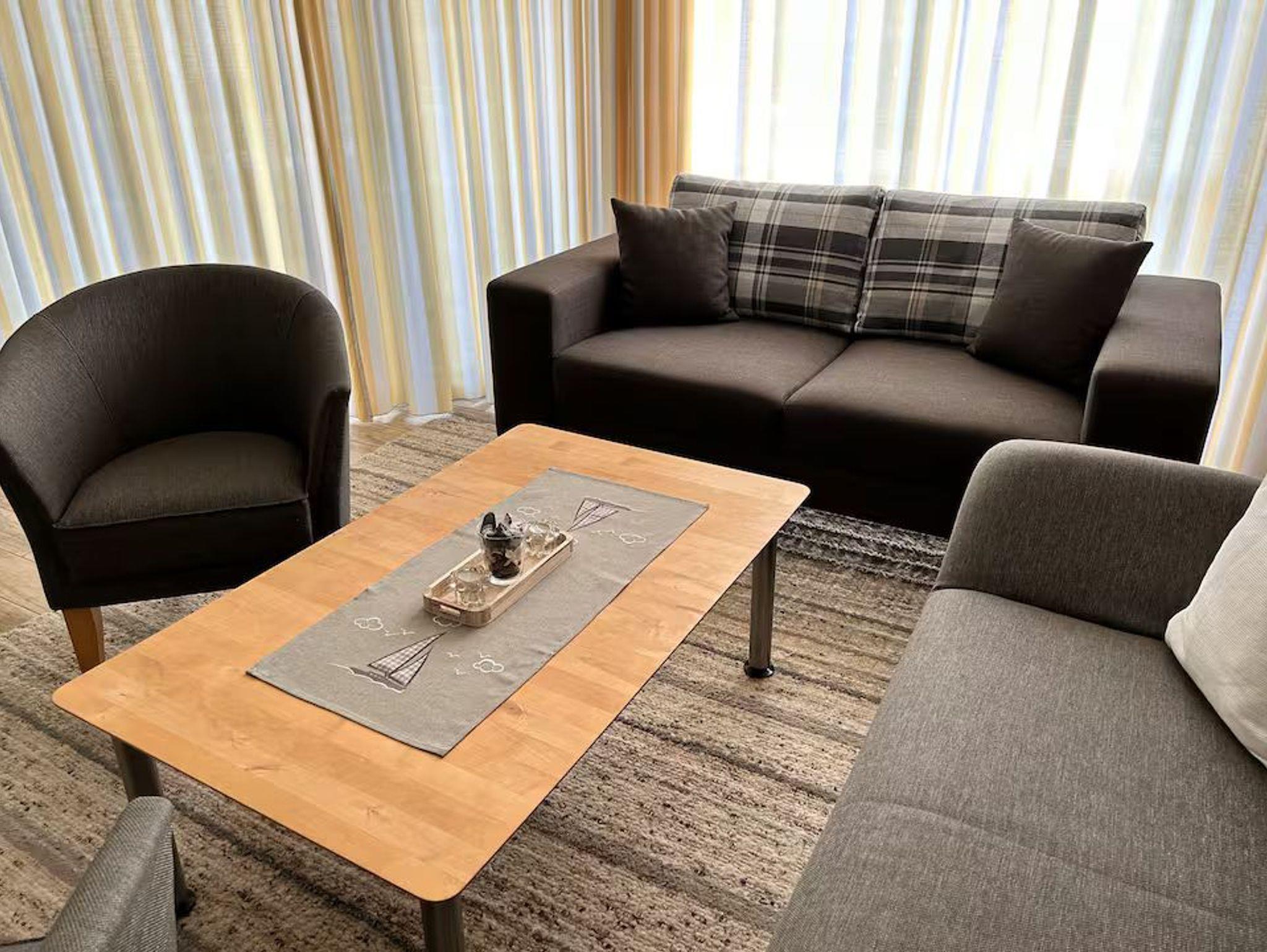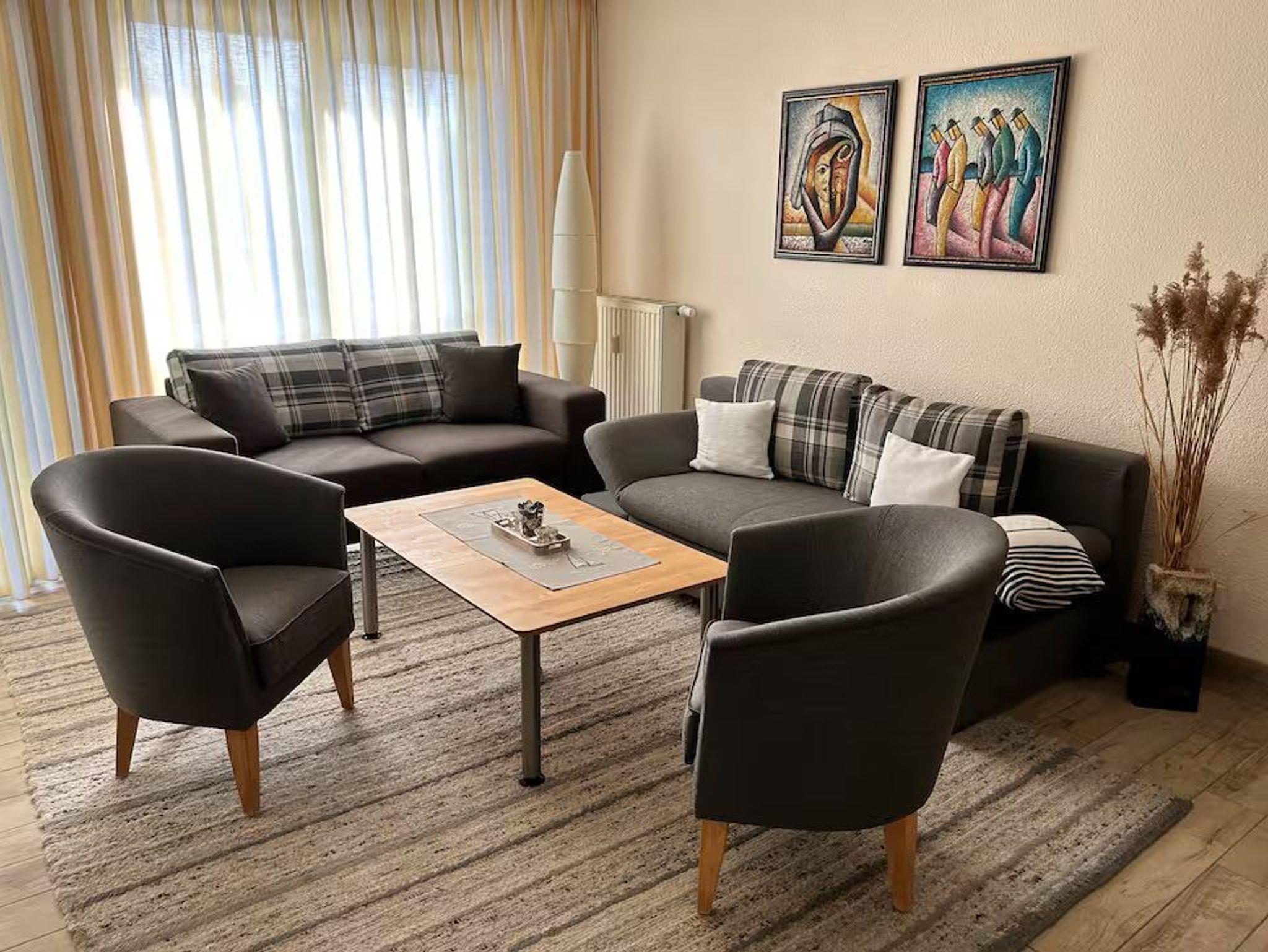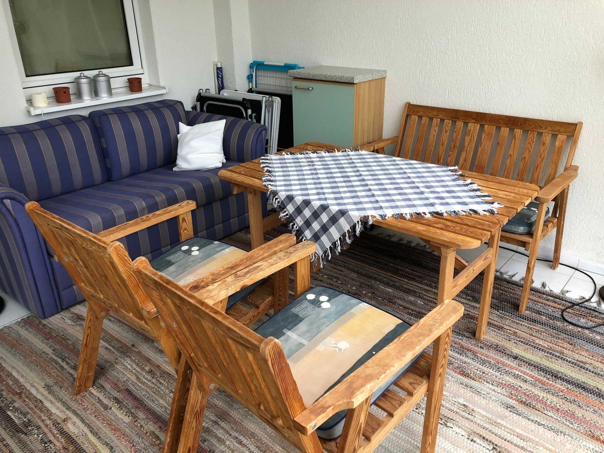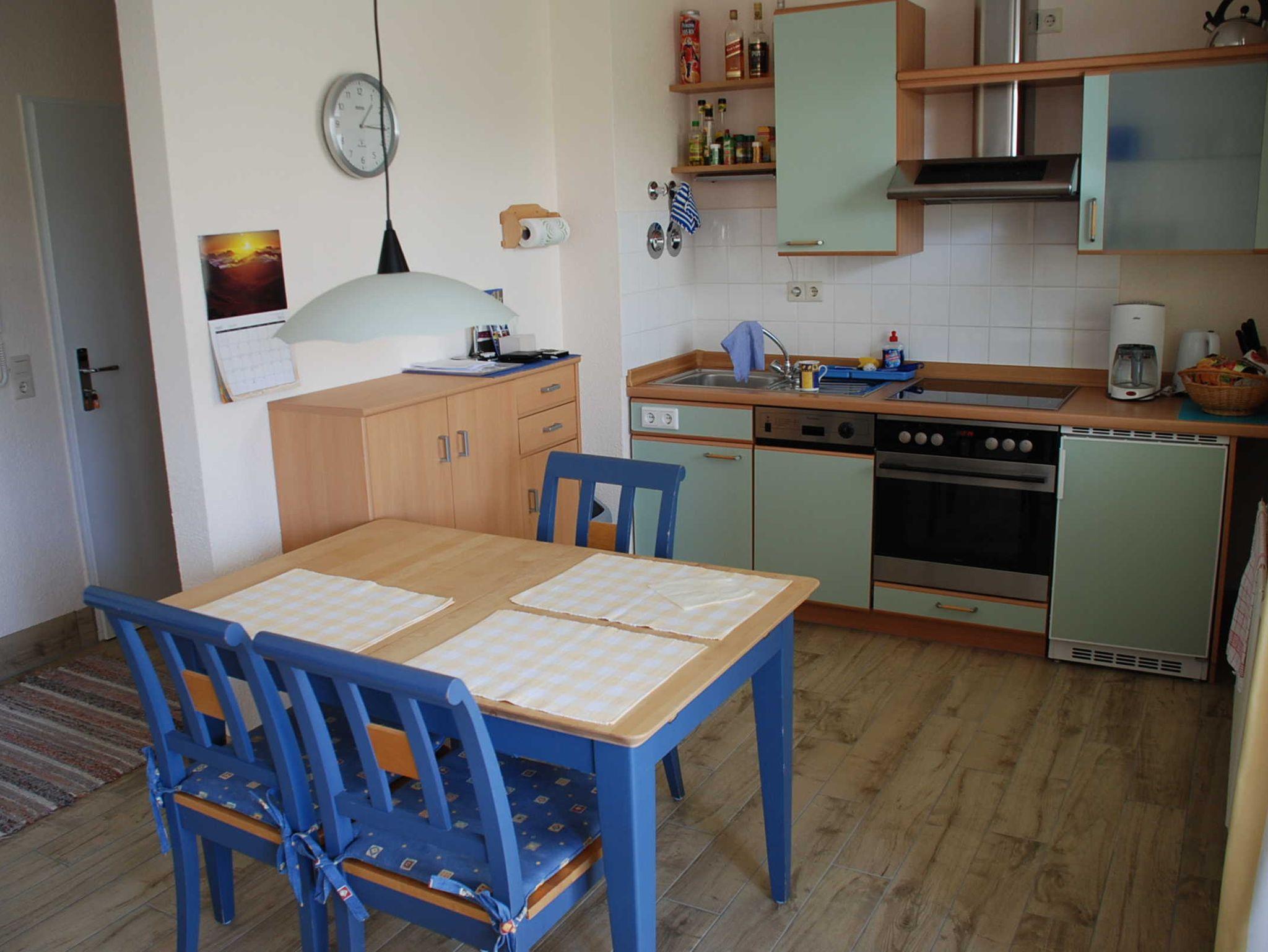 Die Wohnung Nr. 7 ist ca. 66 m² groß, befindet sich im Erdgeschoß und verfügt über einen Wintergarten. Die Wohnung ist aufgeteilt in ein Schlafzimmer mit Doppelbett (1,80 x 2,00) und Kleiderschrank, ein Wohnzimmer mit Sitzecke (Schlafsofa 1,40 x 2,00), TV, Esstisch und offener Küche - komplett eingerichtet mit Geschirr, Kühlschrank, Geschirrspüler, Herd mit 4 Ceranfeldern. Das Bad ist mit WC und Badewanne ausgestattet.