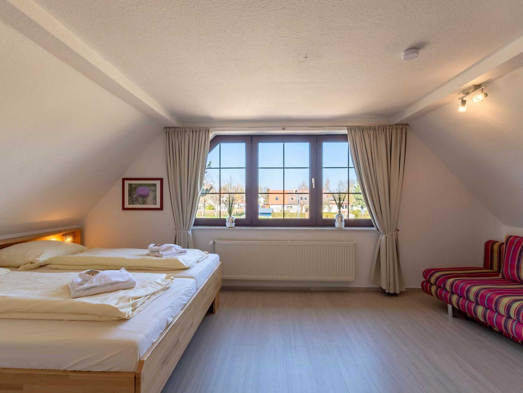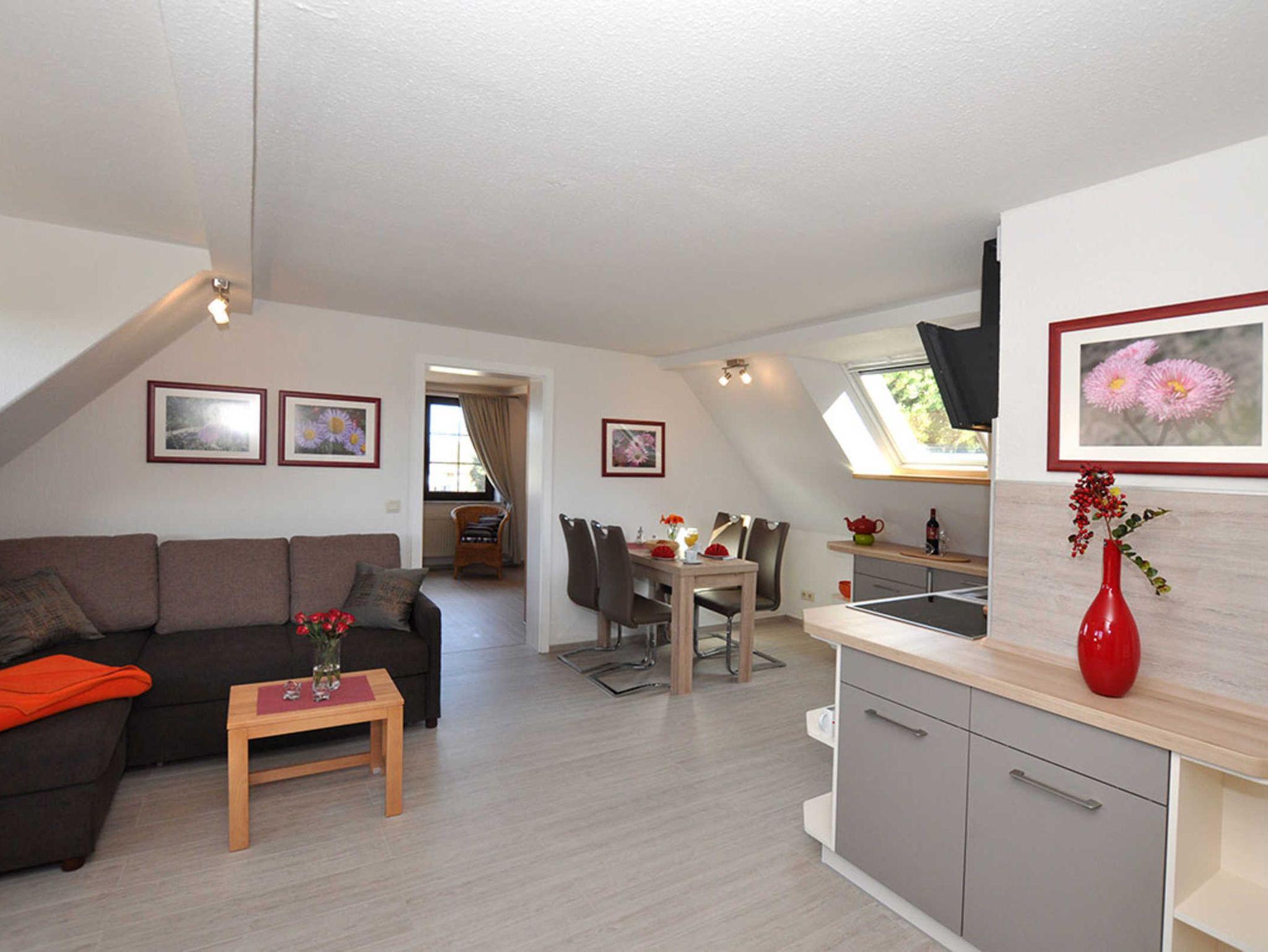 Diese schöne 2-Raum Ferienwohnung für bis zu 4 Personen ist ca. 58 m² groß und befindet sich in der linken Haushälfte in der erste Etage. Sie wurde komplett neu renoviert und ist hochwertig eingerichtet.