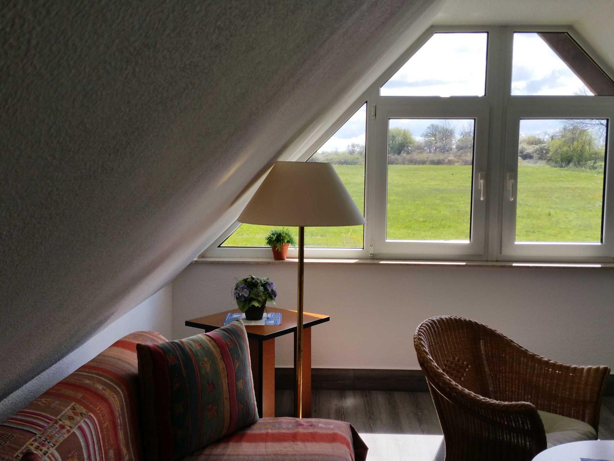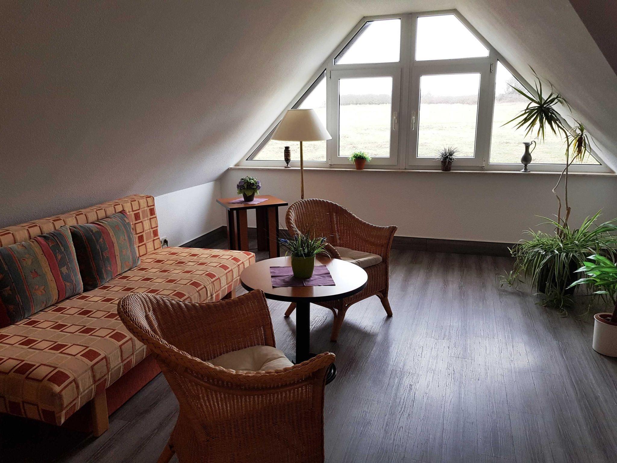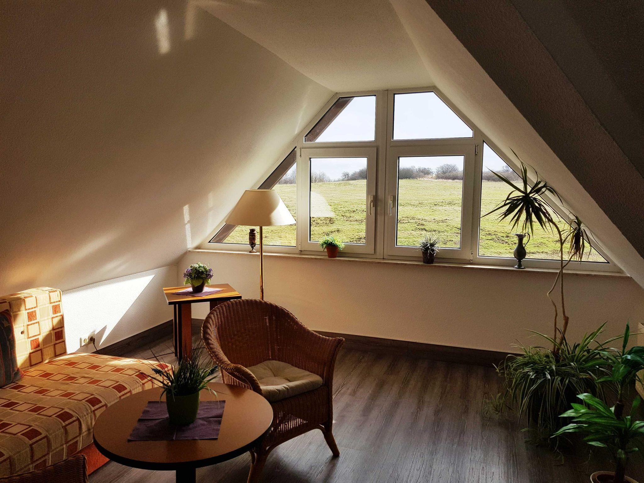 Das Strandhaus Lobbe ist eine reetgedeckte Ferienanlage. Sie liegt idyllisch mit unverbautem Blick auf die schöne Natur der Insel mit ihren typischen landschaftlichen Gegebenheiten. Es sind nur wenige Meter zum Ostseestrand. Das Appartement im 2. Stock ist für 2 bis 4 Personen ideal geeignet. Die Wohnung besteht aus einem großem Wohnzimmer mit einer Ausziehcouch für zwei Personen, einer Essecke und einer Küchenzeile mit diversen Kleingeräten. Weiterhin verfügt die Wohnung über eine Du/ WC und ein Schlafzimmer mit Doppelbett. Fahrräder können im Kellerbereich abgestellt werden.