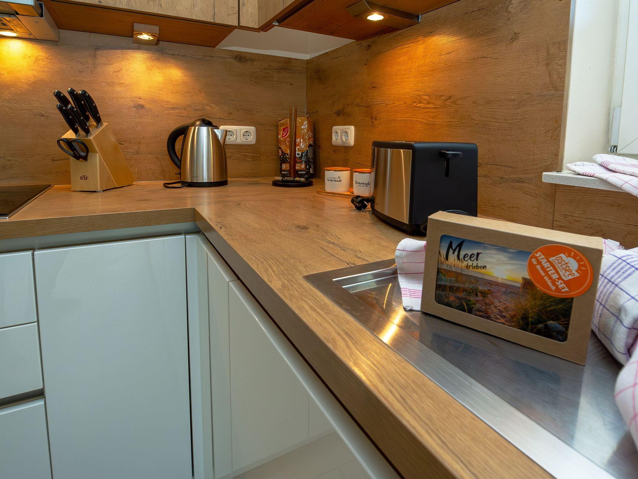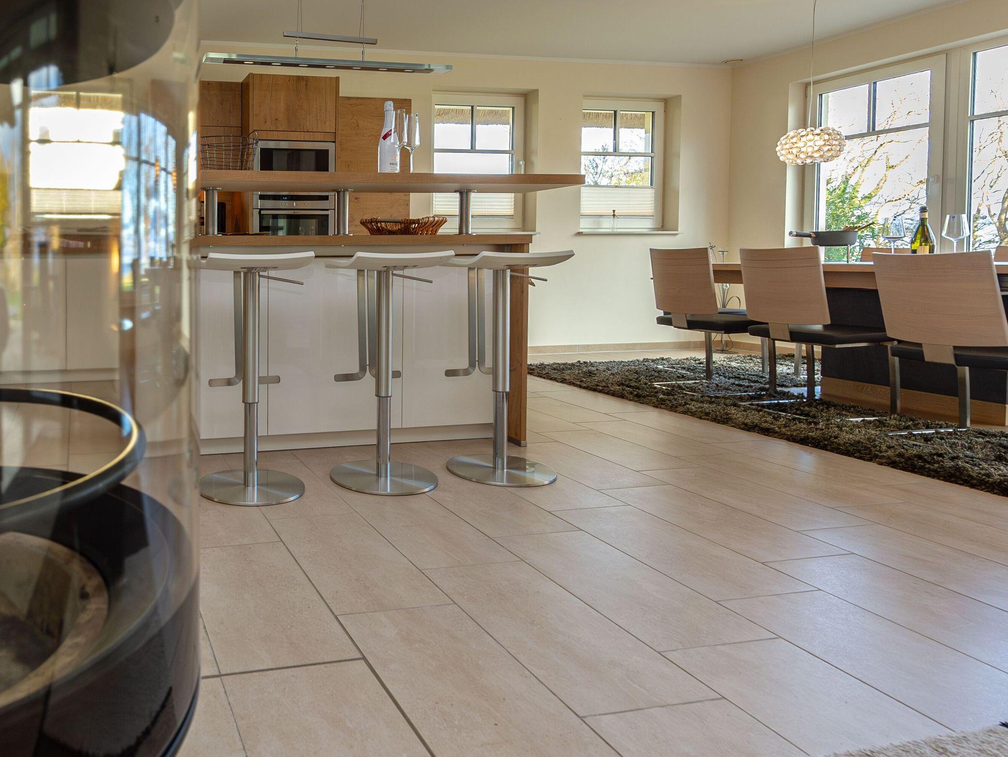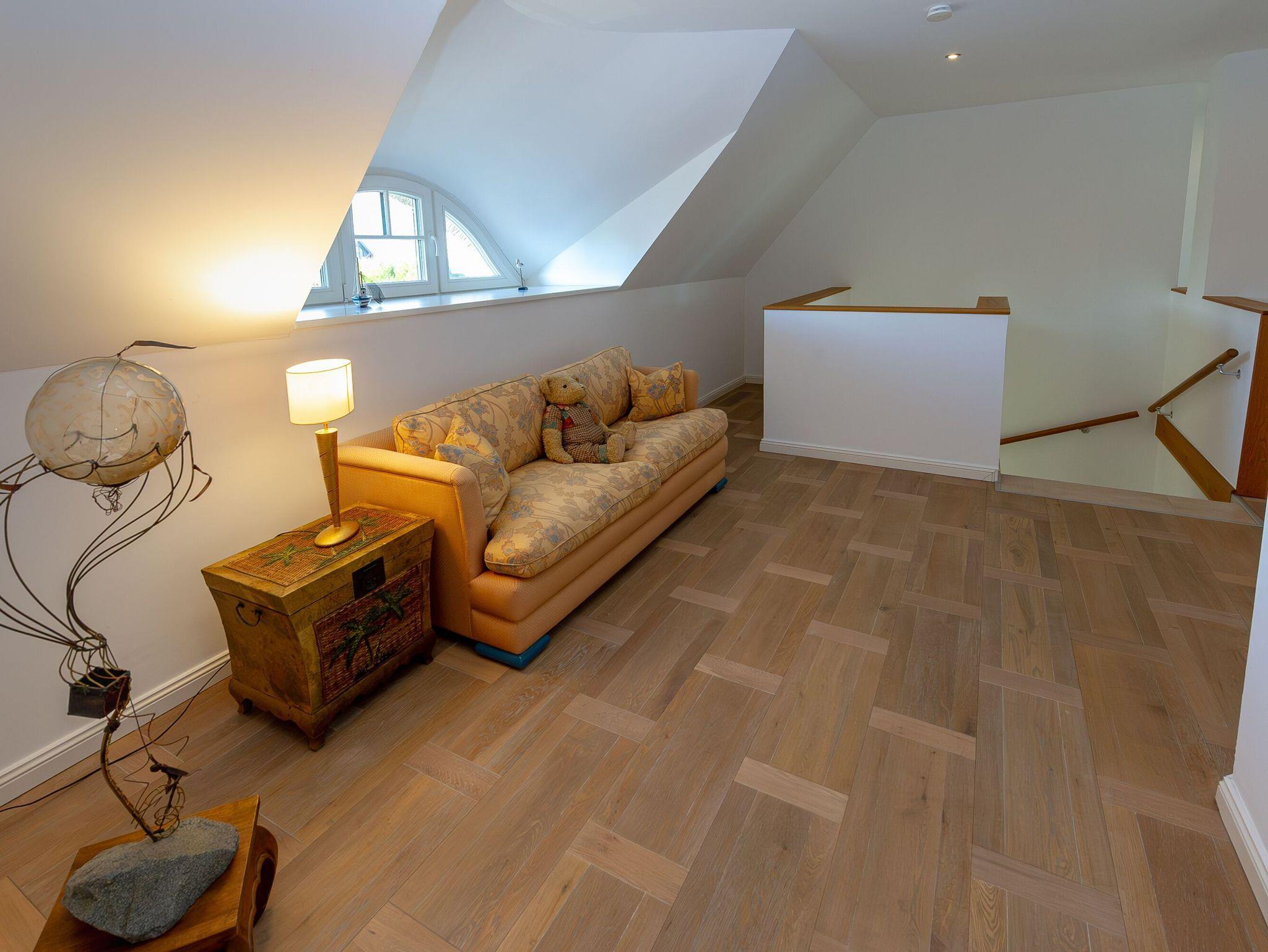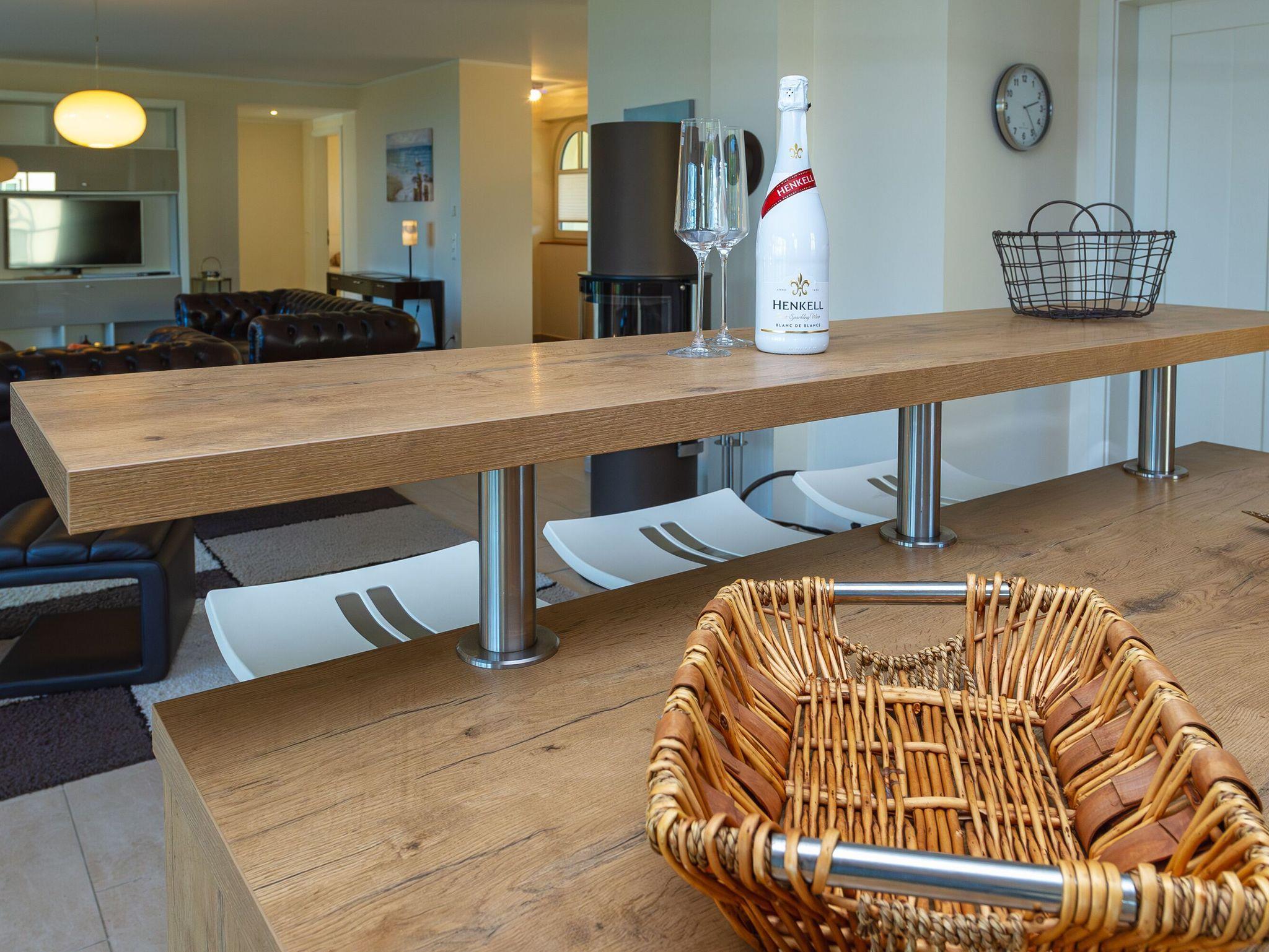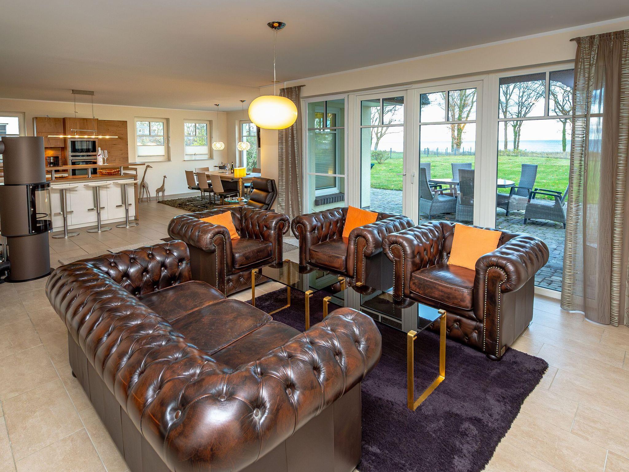 Für die 2013 gebaute und mit dem typischen Reetdach und Friesenwall versehene Villa wurden durchweg exquisite Materialien verwendet, z.B. schwedisches Eichenparkett und italienische Keramikfliesen. Eine Fußbodenheizung sorgt rund ums Jahr für angenehme Wohlfühl-Temperaturen. Überwiegend bodentiefe Fensterfronten ermöglichen einen traumhaften Meerblick. Riesige 258 qm Wohnfläche, verteilt auf zwei Etagen, bieten bis zu 8 Personen mehr als genug Platz. Gleich zwei Kamine (1x Holz, 1x Elektro), eine private Sauna und das hochwertige Interieur von Rolf Benz, Hülsta und anderen bekannten Marken sprechen für sich.