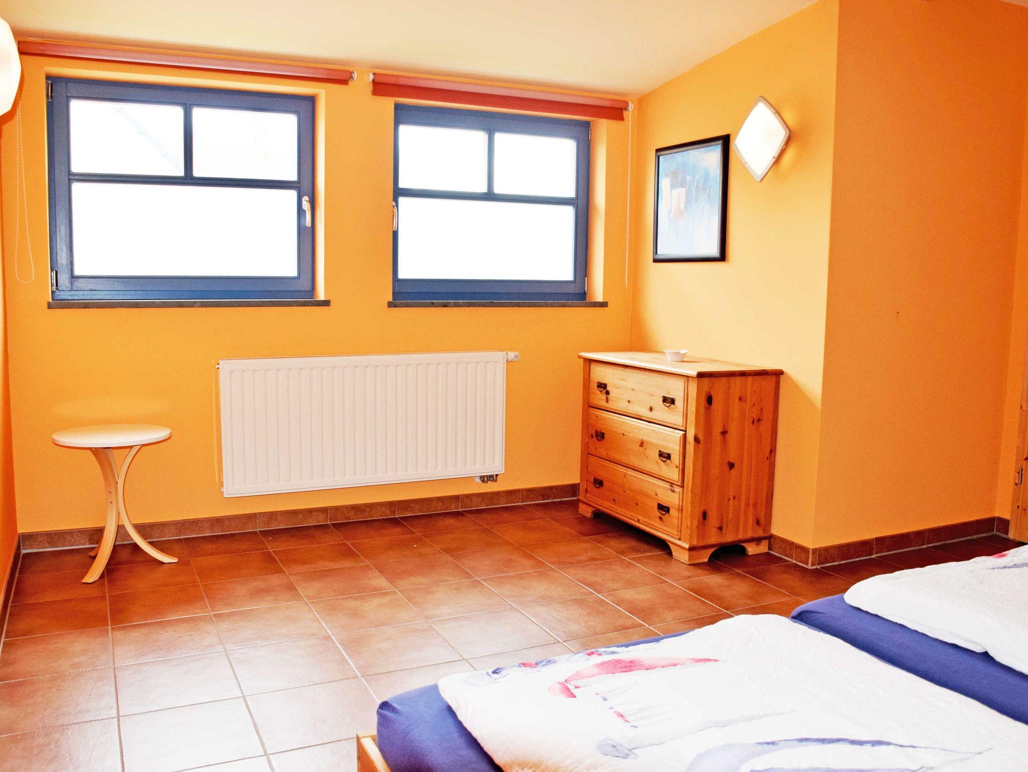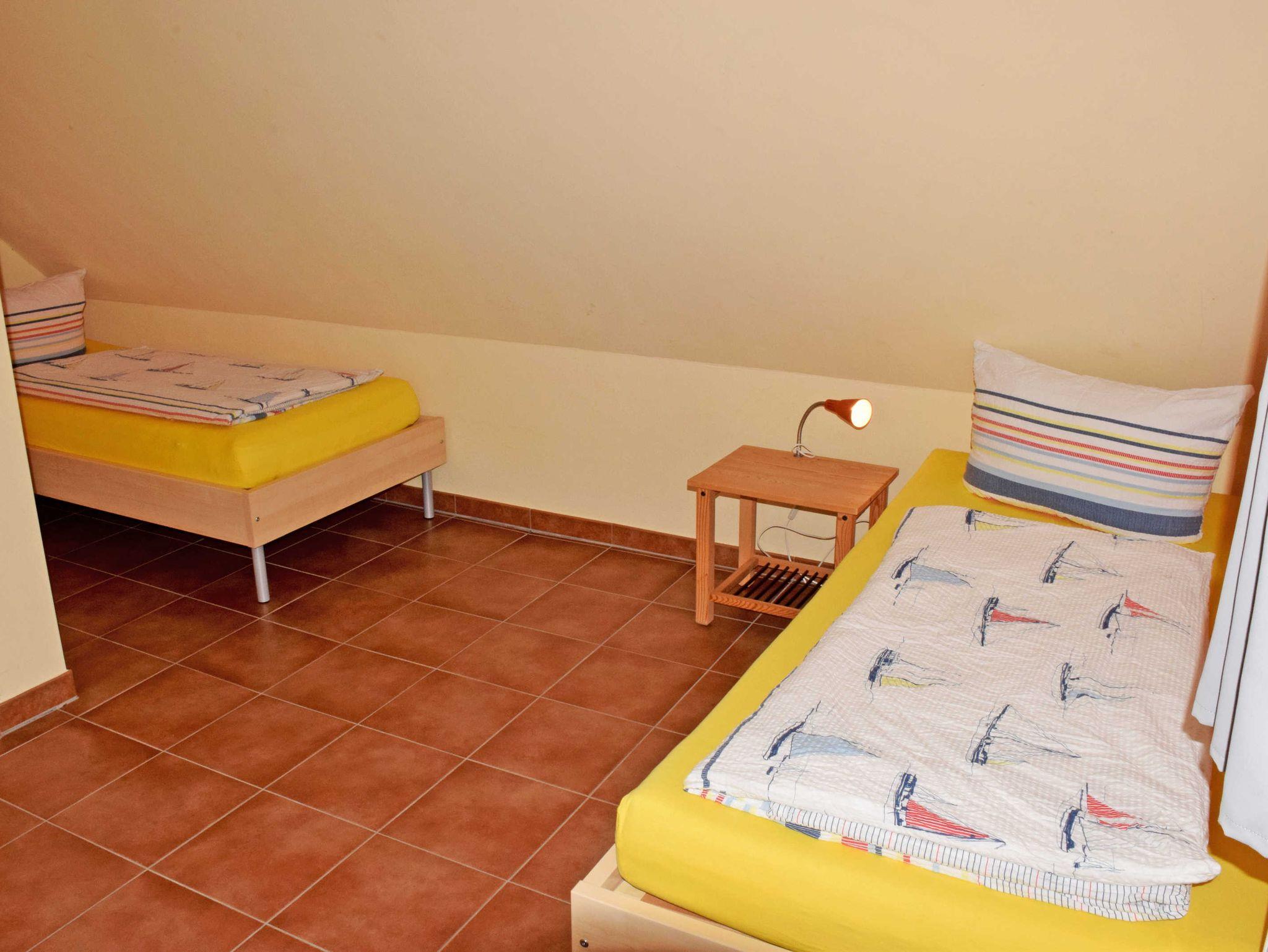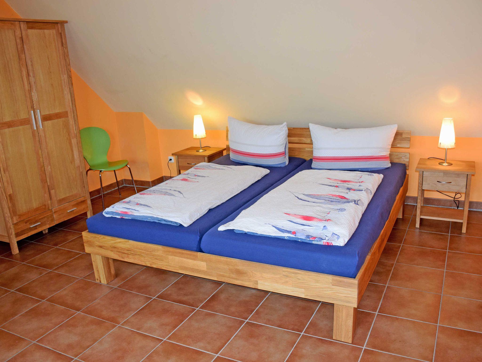 Das erste Schlafzimmer im Obergeschoss verfügt über ein bequemes Doppelbett mit Nachttischen und Leselampen. Das zweite Schlafzimmer im Obergeschoss bietet zwei Einzelbetten mit Nachttischen und Leselampen. In diesem Schlafzimmer ist eine Aufbettung möglich. Ein Kinderbettchen sowie ein Hochstuhl stehen Ihnen auf Anfrage bereit.