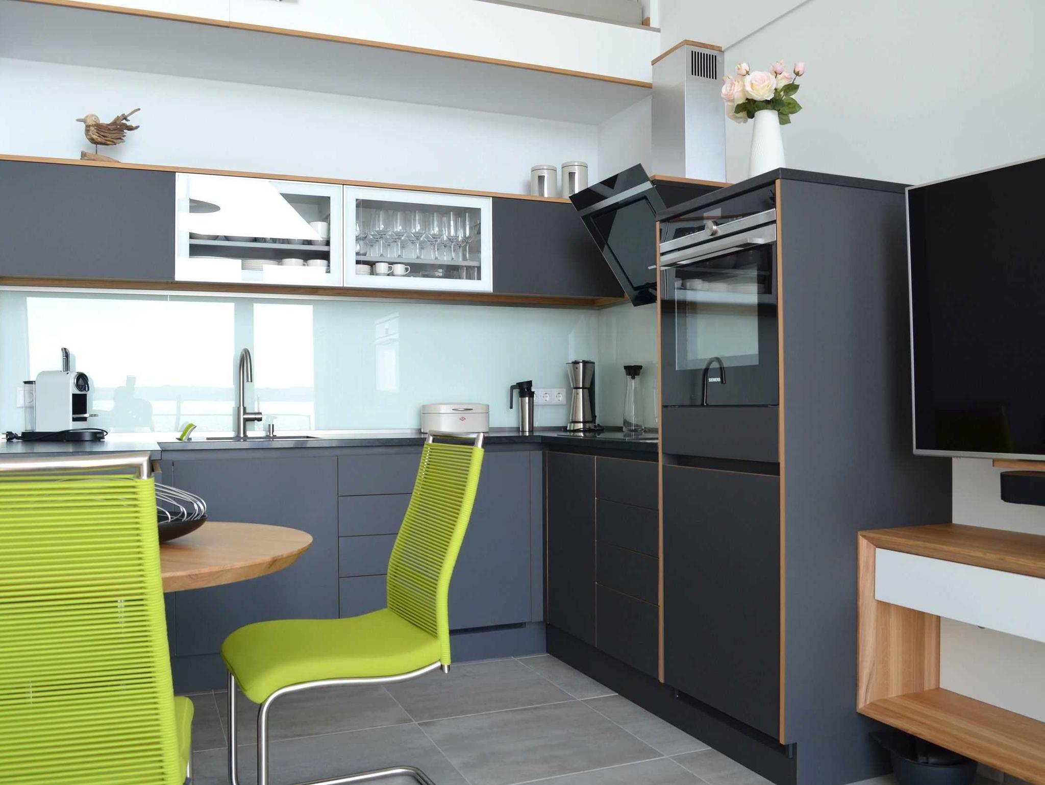 Der modern und hochwertig eingerichtete Wohnbereich bietet eine gemütliche Couchgarnitur und Smart TV. Mit Ihrem Zugang kann Netflix genutzt werden. Desweiteren steht Ihnen im Wohnbereich, beiden Schlafzimmern und der Galerie jeweils eine Alexa zur Verfügung. Die offene Wohnküche mit Essbereich ist mit einem 4-Felder Induktionsherd, Backofen mit Mikrowellenfunktion, Kühlschrank, Spülmaschine, Kaffeemaschine, Nespresso Kapsel Maschine und reichlich Küchenutenslilien bestens ausgestattet. Eine Waschmaschine mit Trocknerfunktion steht ebenfalls in der Küche bereit.
