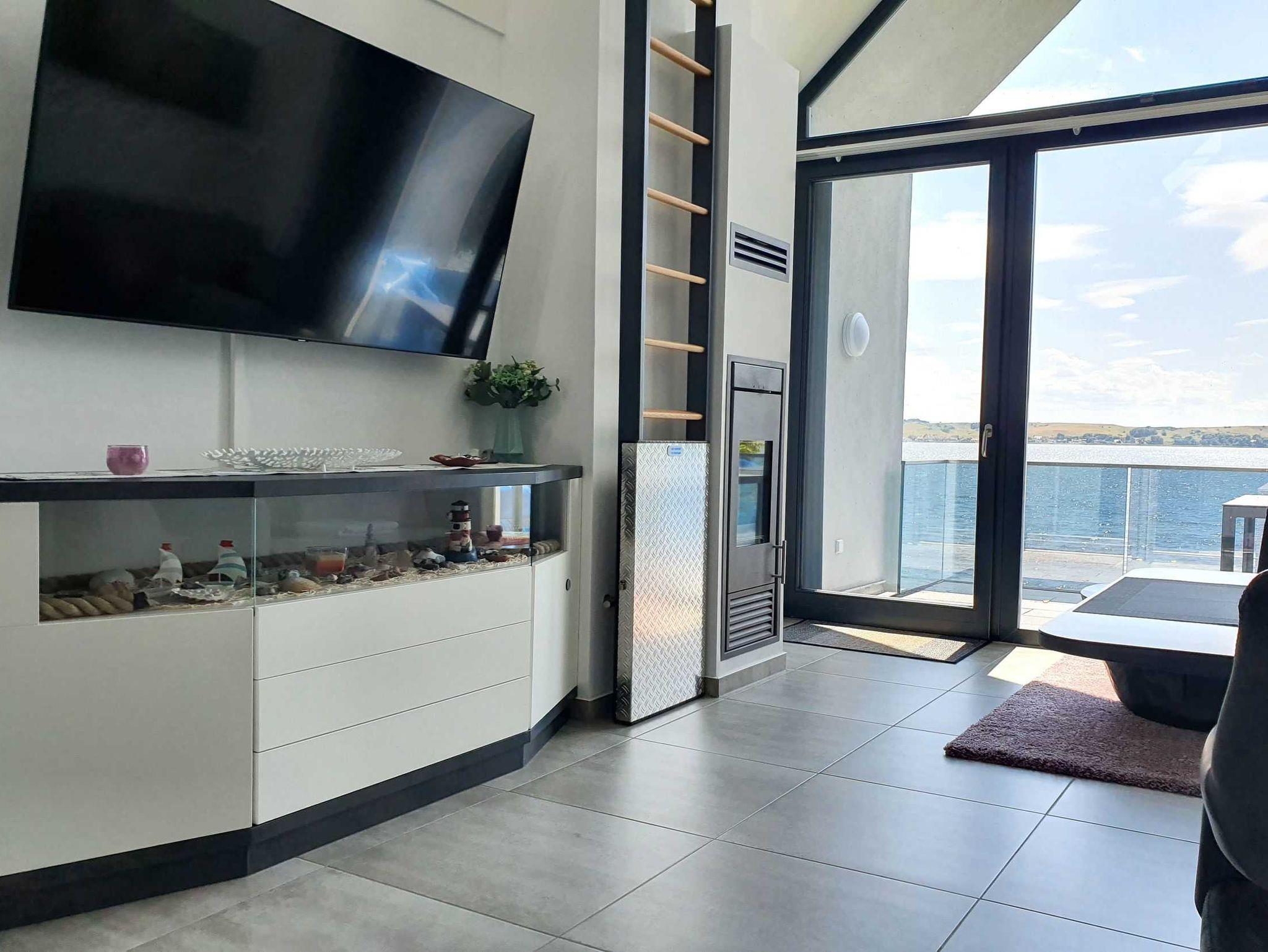 Das Apartment Fernweh in Alt Reddevitz bietet Luxus, Sauna, Balkon und direkten Wasserblick auf der Halbinsel Mönchgut.