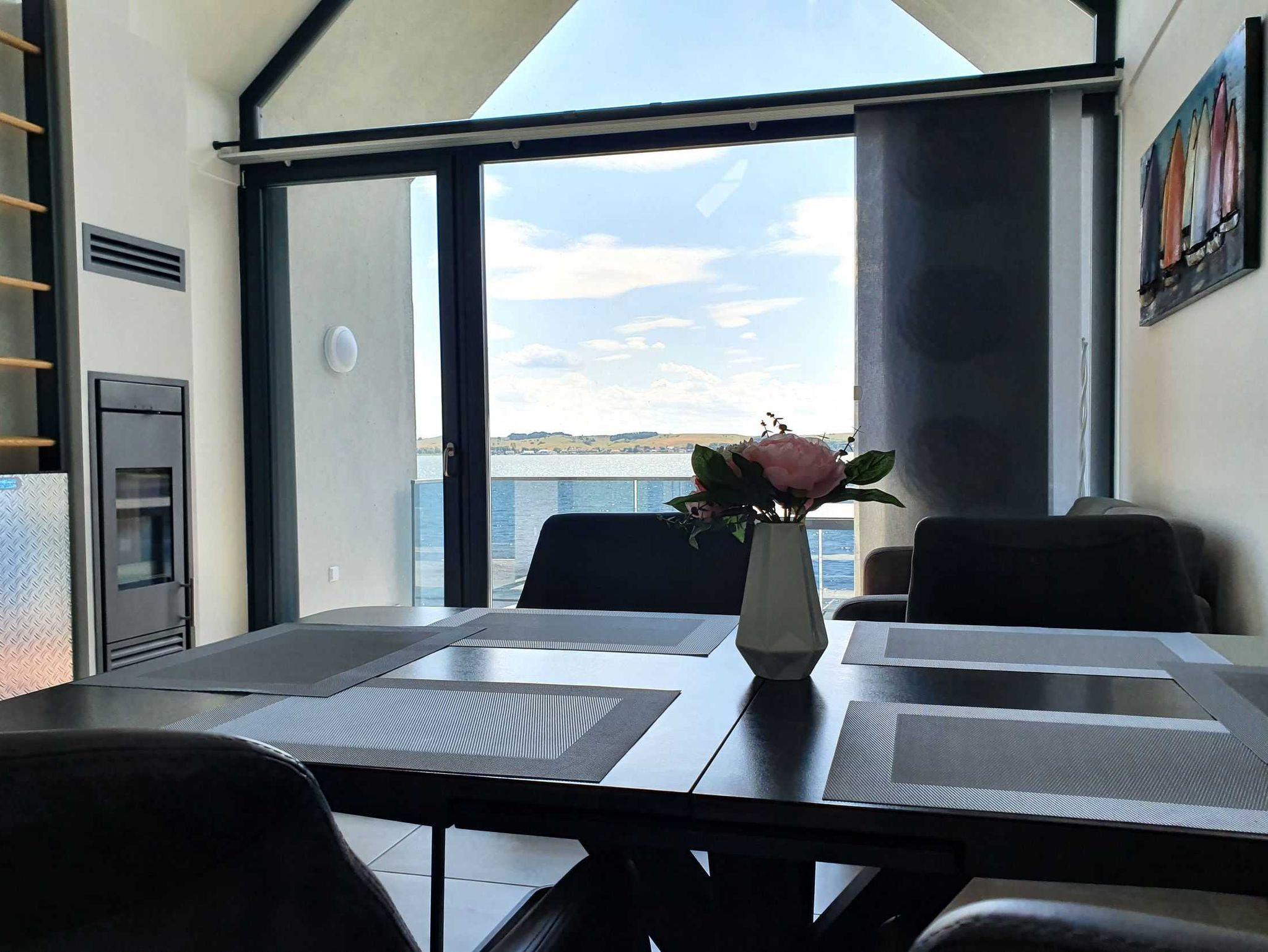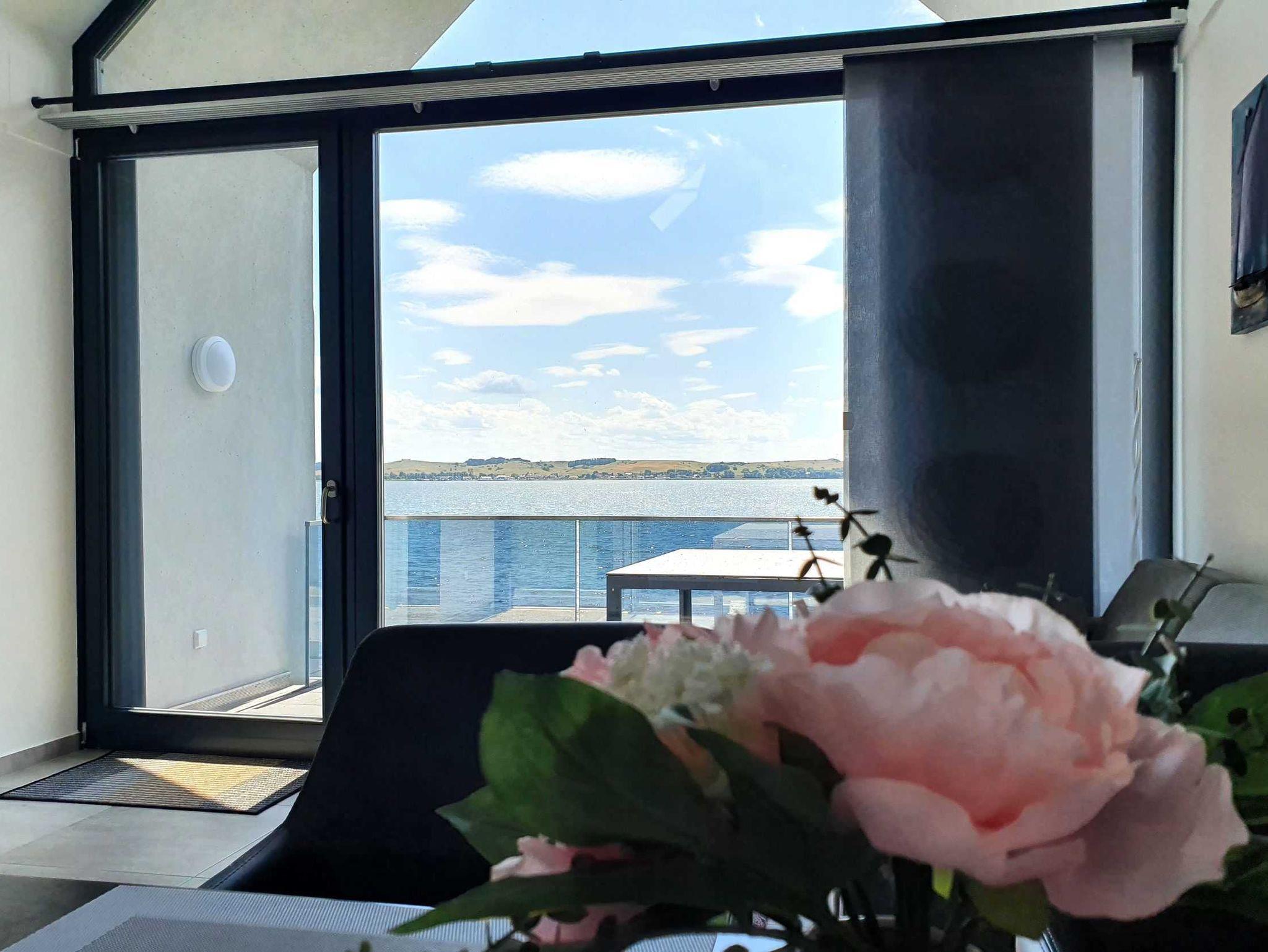 Der Ausblick vom Wohnbereich und des Balkons ist sagenhaft! Die bodentiefe Fensterfront ermöglicht Ihnen einen direkten Wasserblick.