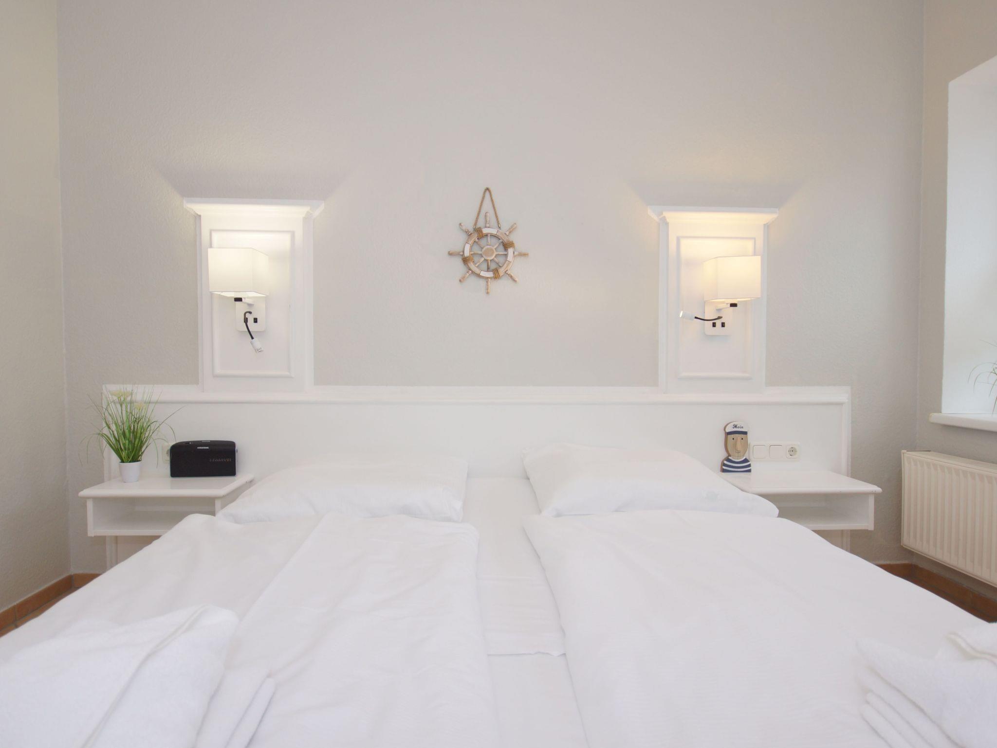 Die modern und liebevoll eingerichtete Wohnung 6 im Haus Seeblick verfügt über einen separaten Schlafbereich, einen hellen Wohnbereich mit offener Küchenzeile, sowie ein Badezimmer mit Dusche und WC. Sie umfasst ca. 37qm und bietet Ihnen Platz für max. 2 Erwachsene + 1 Kind bis 17 Jahre. Der komfortable Wohnbereich mit einer Schlafcouch (Aufbettungsmöglichkeit 1,40m x 1,90m) + Couchtisch, einer Stehlampe sowie einer Kommode mit Flachbild-TV bietet Ihnen einen gemütlichen Ort zum Ausklingen der erlebnisreichen Tage auf der Halbinsel Mönchgut. Von hier gelangen Sie auf den bestuhlten Balkon mit Sonnenschirm Richtung Süden und Seeblick. Angrenzend befindet sich eine offene, voll ausgestattete Küchenzeile mit Spülmaschine, Kühlschrank mit Eisfach, Dunstabzugshaube, Wasserkocher, Kaffeemaschine, Nespresso Maschine, Toaster, Induktionsfeld, Mikrowelle und Essplatz. Direkt nebenan befindet sich das geräumige Schlafzimmer mit Doppelbett (1,80m x 2,00m), Insektenschutzgitter und Kleiderschrank. Das innenliegende und freundliche Badezimmer bietet Ihnen eine Dusche, ein WC, ein Fön, ein Kosmetikspiegel und ein Waschplatz mit dazugehörigem Spiegel. Für unsere kleinen Gäste steht ein Hochstuhl sowie ein Kinderreisebett (ohne Bett Inlett/inkl. Matratze) zur Verfügung. Auch ein 4-Beiner ist mit seinem eigenen Schlafplatz gegen eine Gebühr ein gern gesehener Gast. Eine Fahrrad-Unterstellmöglichkeit steht Ihnen und allen Gästen des Hauses zur gemeinschaftlichen Nutzung kostenfrei zur Verfügung. Ihr PKW-Stellplatz befindet sich knapp 100m vom Haus entfernt und ist für Sie inklusive. Die Erstausstattung eines Wäschepaketes (komplette Bettwäsche, 1 Duschhandtuch, 2 kleine Handtücher) können Sie bis 14 Tage vor Anreise gegen einen Aufpreis dazu buchen oder durch eigene ergänzen. Ab 2 gebuchten Paketen erhalten Sie einmalig 1 Geschirrhandtuch und 1 Duschvorleger hinzu.