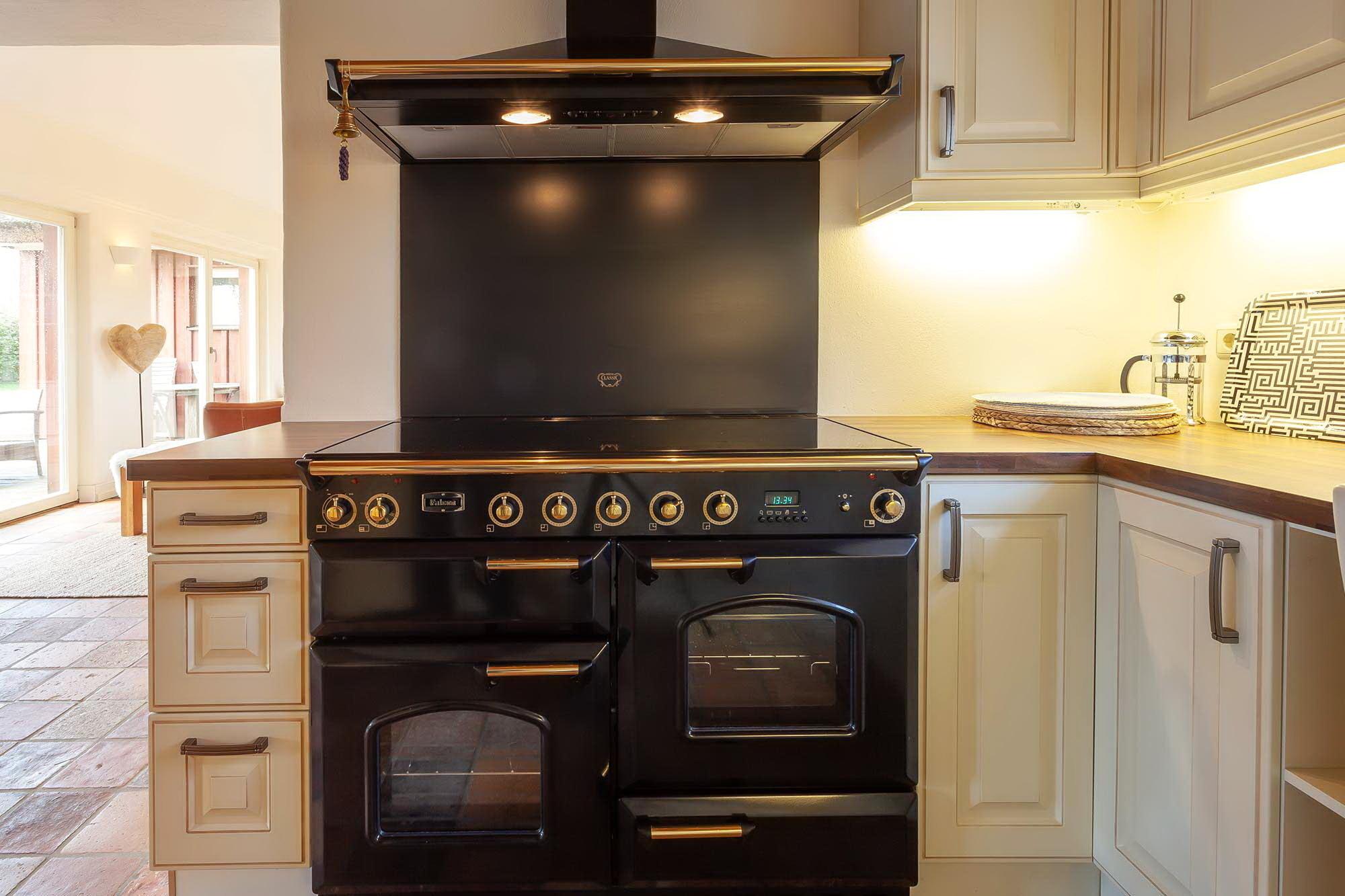 Das Ferienhaus "Das Reet" mit rund 108 qm Wohnfläche und 1405 qm Grundstücksfläche, verfügt über ein großzügigen Wohn-und Essbereich mit offenen Kamin. Das Highlight der komplett ausgestatteten Küche sind der „Falcon Range Cooker“ mit Induktion und der Side by Side Kühlschrank. Das Haus besticht mit einen weiträumigen Ensuite-Bad, separaten WC und Bidet, sowie einer finnischen Sauna mit Blick ins Grüne. Das Ensuite-Bad bietet einen direkten Zugang zur Aussendusche, die Ihnen nach dem Saunieren zu Ihrer Verfügung steht.