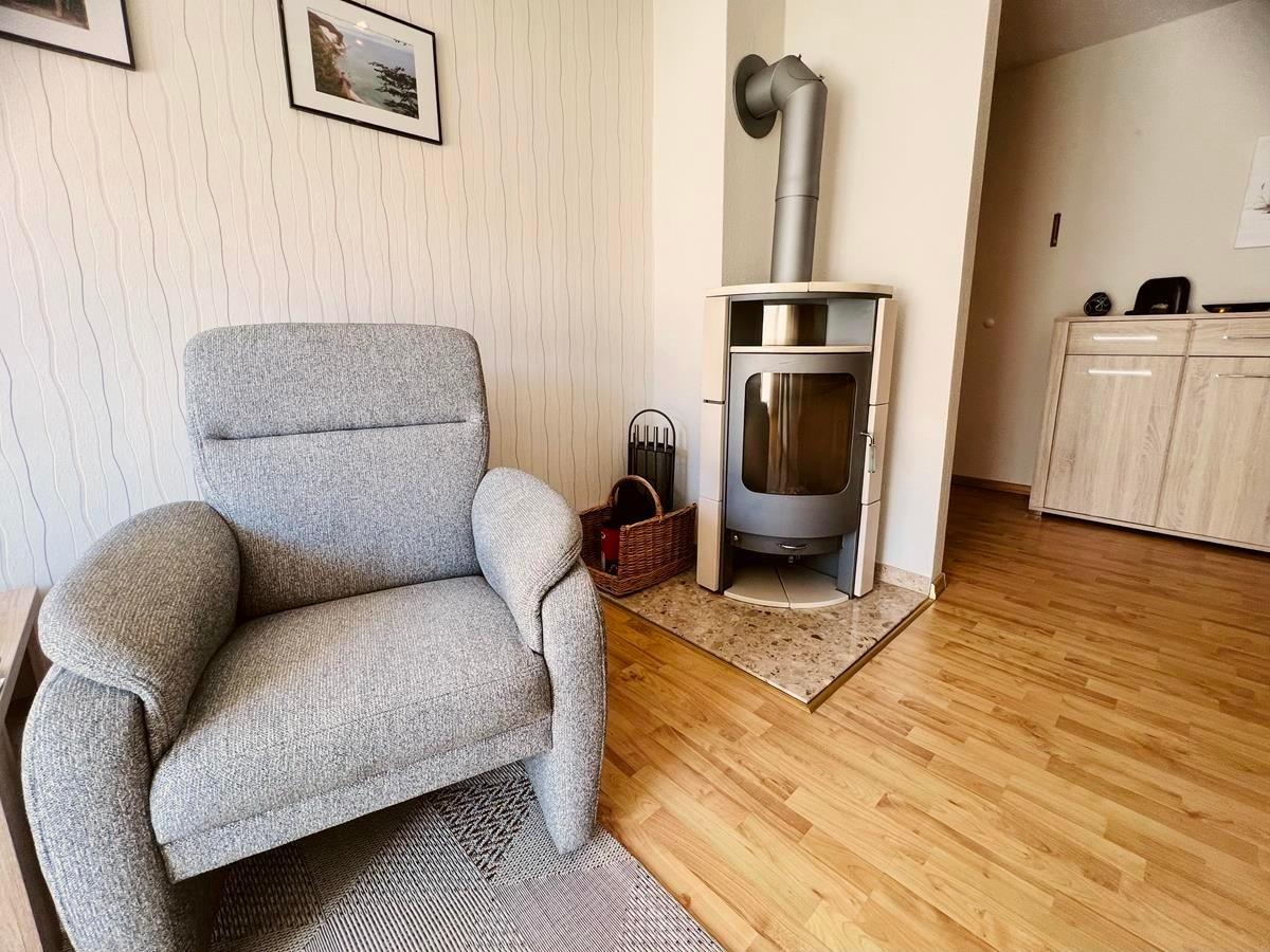 Ein Highlight ist sicherlich der gemütliche Holzofen im Wohnzimmer. Der eine ganz besondere Wärme und Gemütlichkeit ausstrahlt.