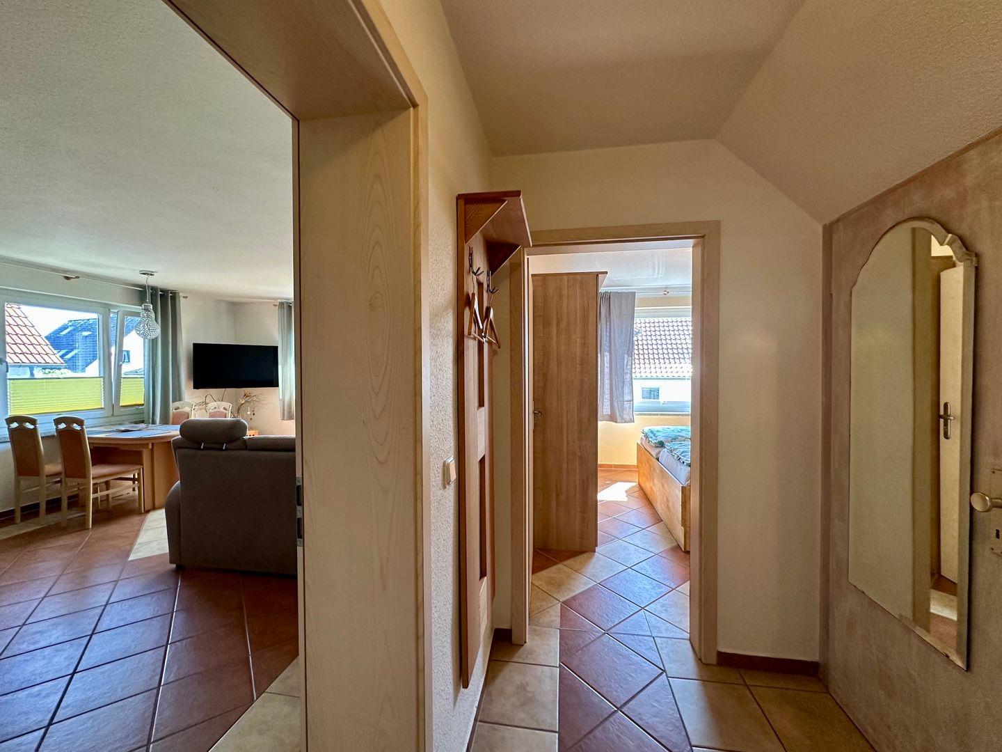 Auch diese Wohnung ist komplett gefl iest und hundefreundlich. WLAN und ein eigener Parkplatz sind inklusive.