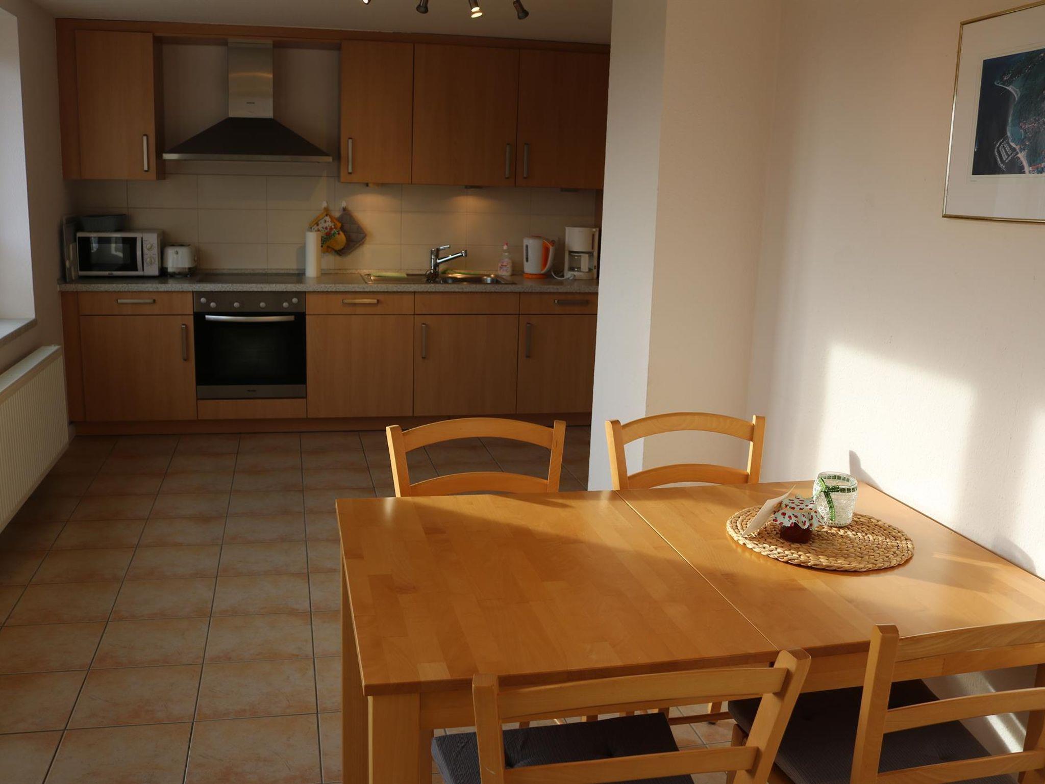 Die Ferienwohnung 1 befindet sich im Erdgeschoss des ehemaligen Bauernhauses unseres Resthofes. Sie ist 95 m² groß, barrierearm und verfügt über ein Wohnzimmer, zwei Schlafzimmer mit jeweils zwei Betten, eine voll ausgestattete Küche mit Essbereich und ein geräumiges Badzimmer mit höhenverstellbarem Waschbecken, einer ebenerdigen (befahrbaren) Dusche und WC. Es gibt eine Terrasse mit Sitzplätzen für vier Personen. Die Wohnung verfügt über Satelliten-TV, DVD-Player, Stereoanlage mit Radio/CD und WLAN. In der Küche sind ein E-Herd mit Backofen und Cerankochfeld, Geschirrspüler, Mikrowelle und ein Kühlschrank mit separatem Gefrierfach vorhanden.